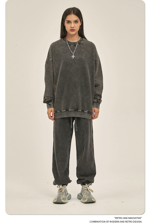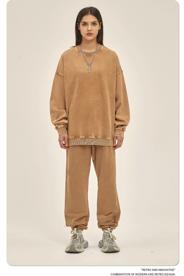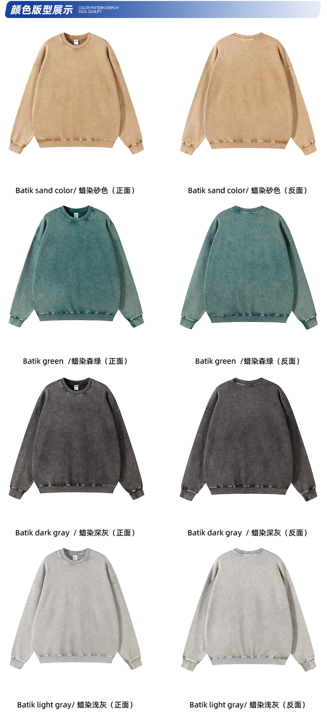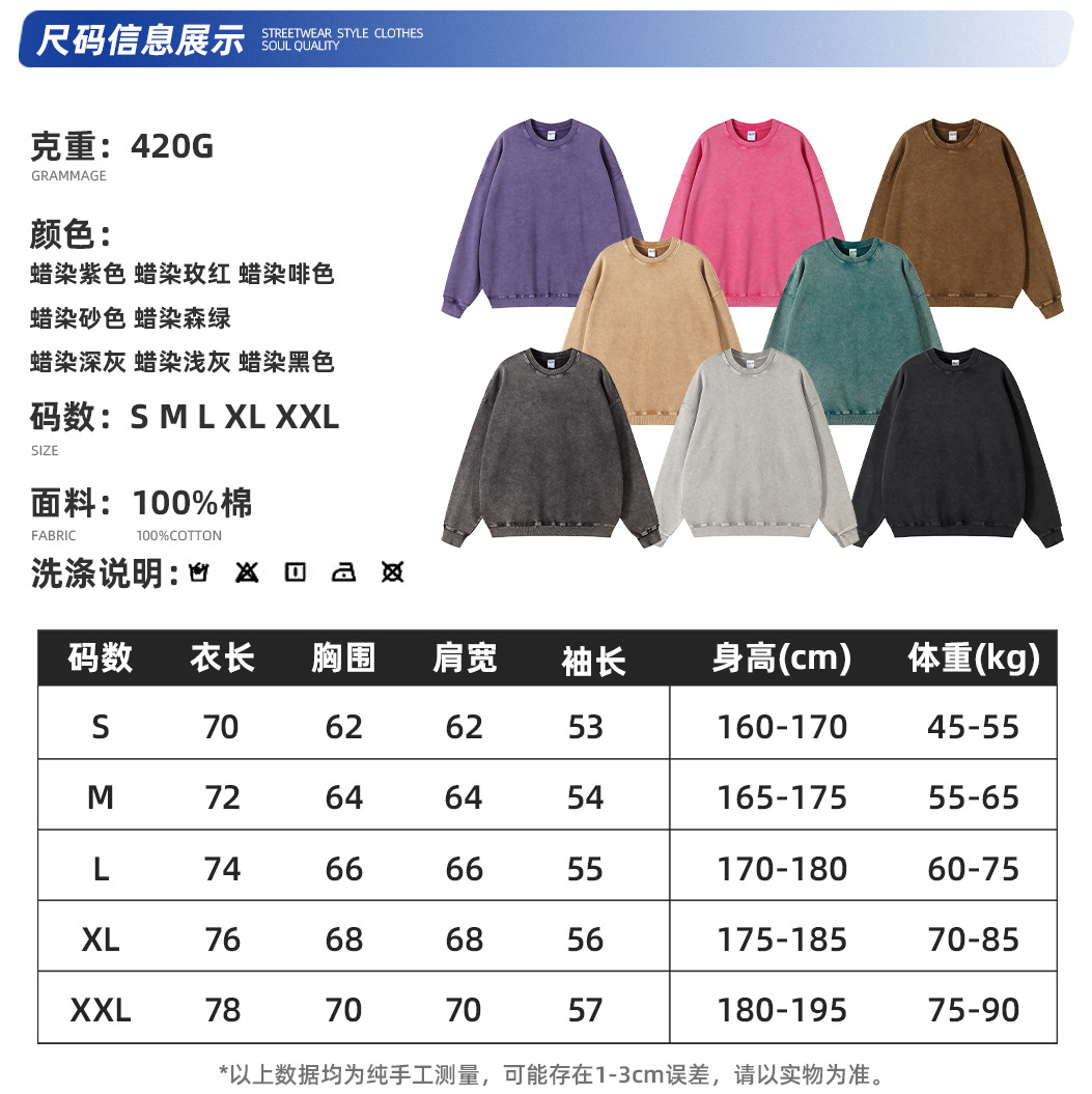 ARTIE 남성복 바틱 헤비 420g 크루넥 땀 남성 패션 브랜드 단색 워싱 올드 빈티지 남성 땀스토어 가기
