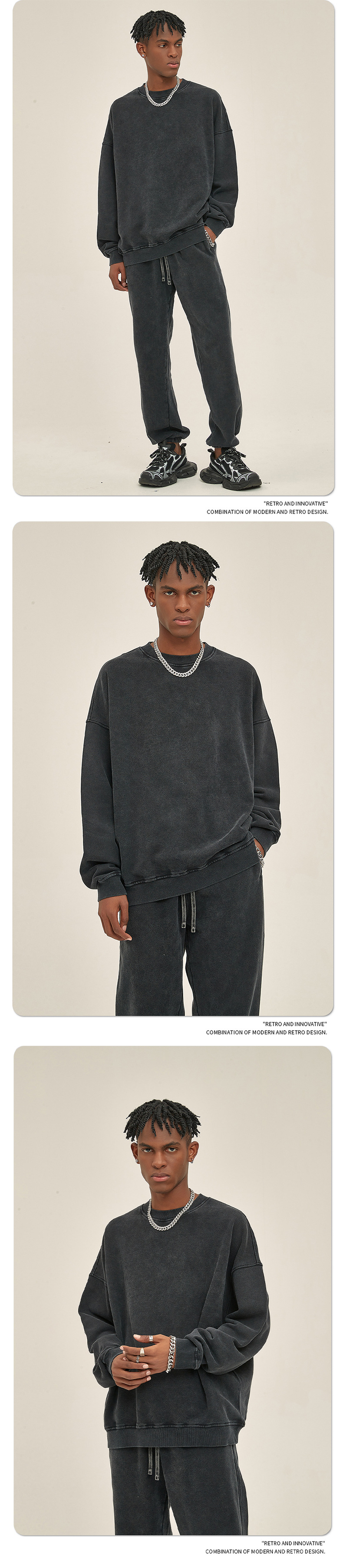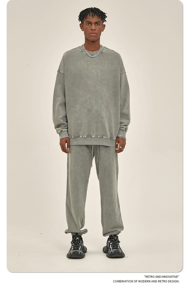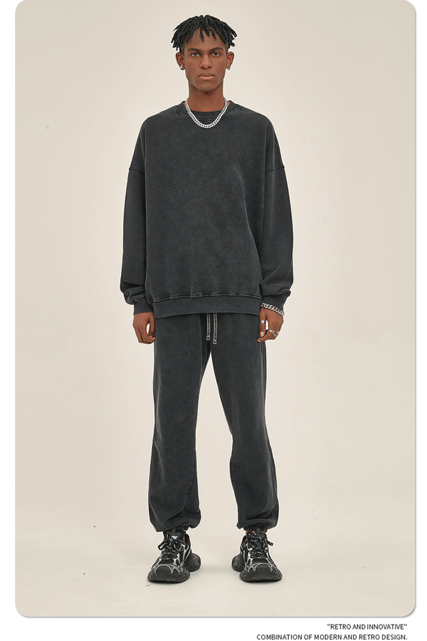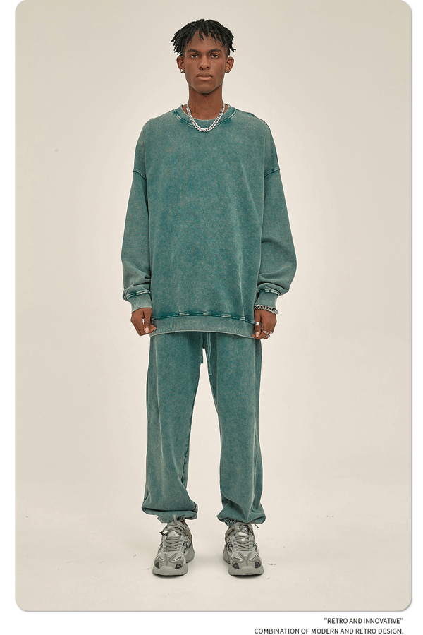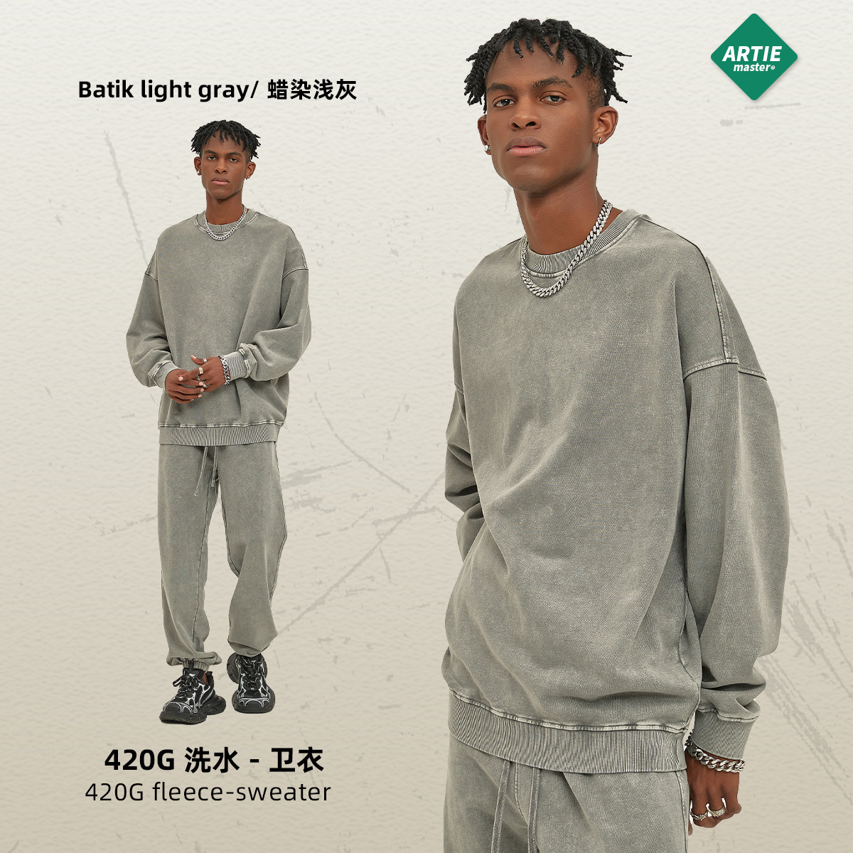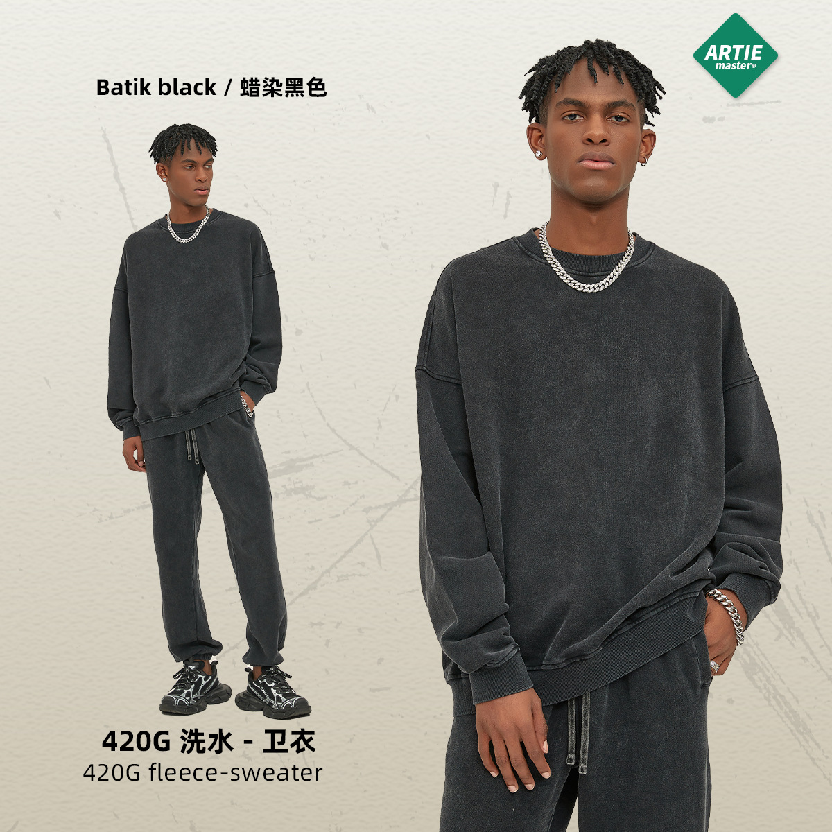 ARTIE 남성복 바틱 헤비 420g 크루넥 땀 남성 패션 브랜드 단색 워싱 올드 빈티지 남성 땀