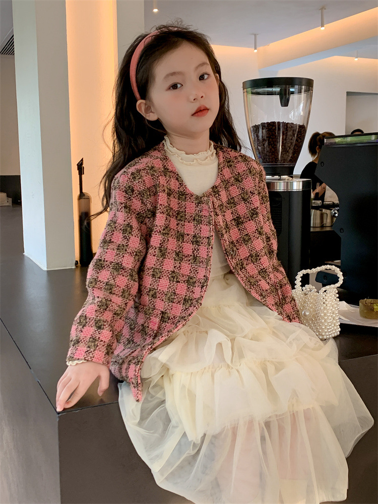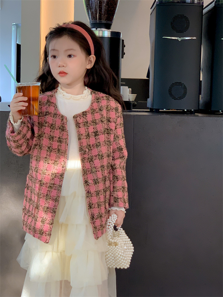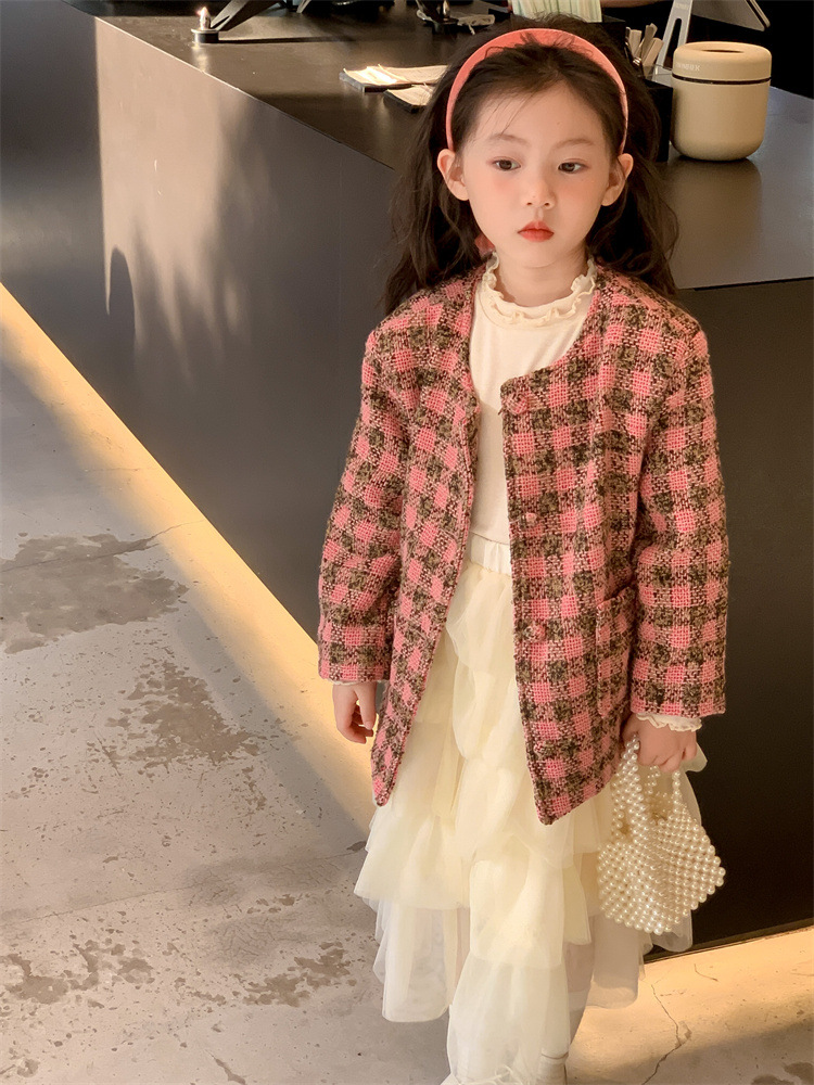 여아 코트 가을 2023 새로운 서양 스타일 아기 한국 스타일 어린이 격자 무늬 가을 긴 소매 가을 격자 무늬 코트스토어 가기