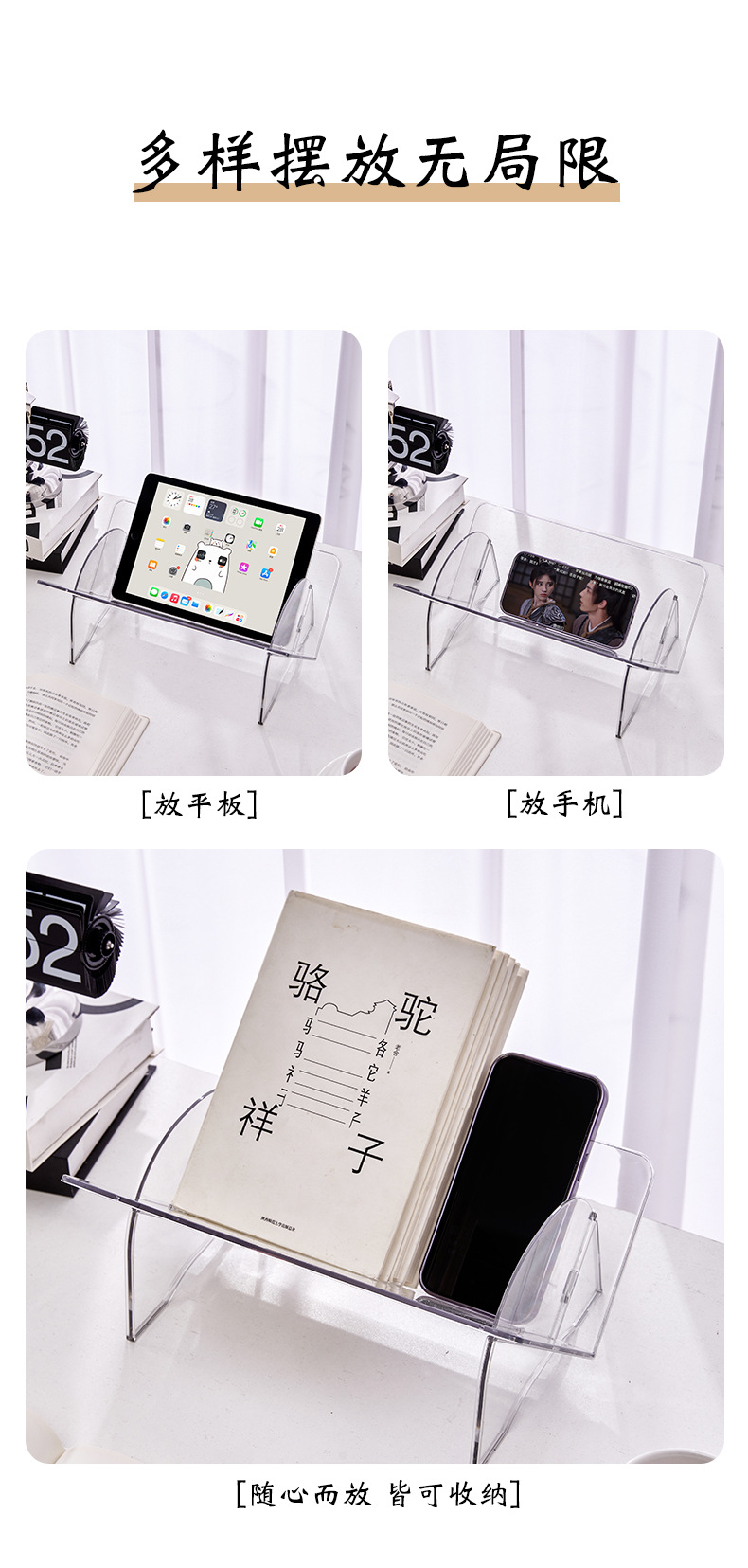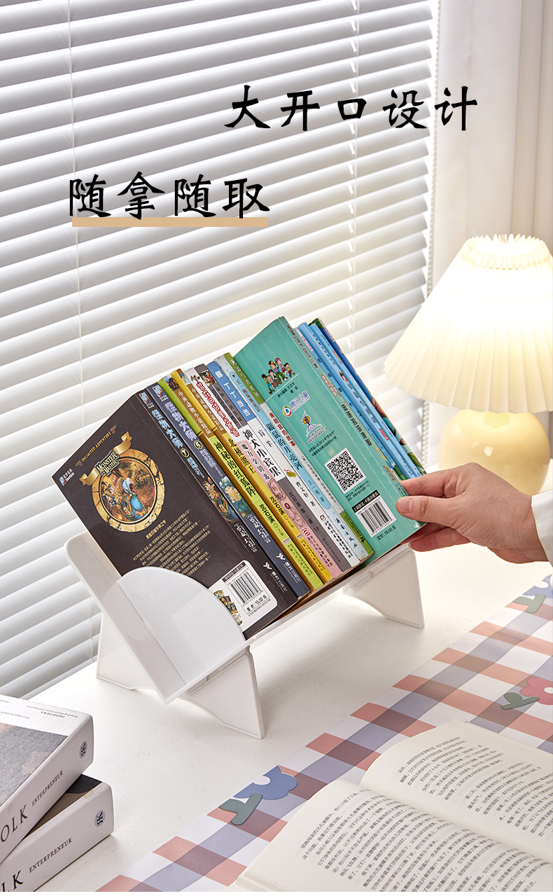 학생과 어린이를위한 투명 아크릴 데스크탑 책장 그림책 읽기 선반 책상 경사 보관 책 스탠드