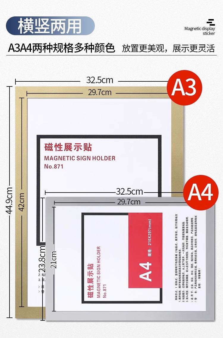 마그네틱 디스플레이 페이스트 A4 마그네틱 A3 벽걸이 포토 프레임 증명서 보관 사업 면허증 보호 커버 소프트 마그네틱 페이스트스토어 가기