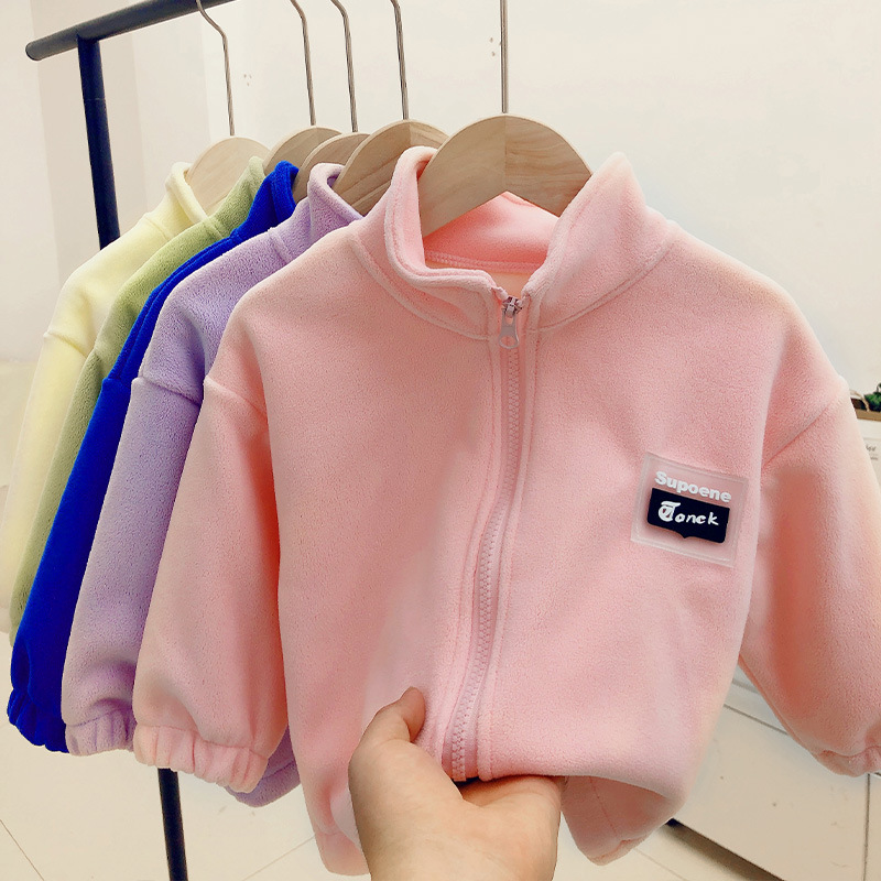 어린이 올리 벨벳 재킷 남아 기모 따뜻한 가을과 겨울 의류 아기 여아 두꺼운 양면 벨벳 캐주얼 탑