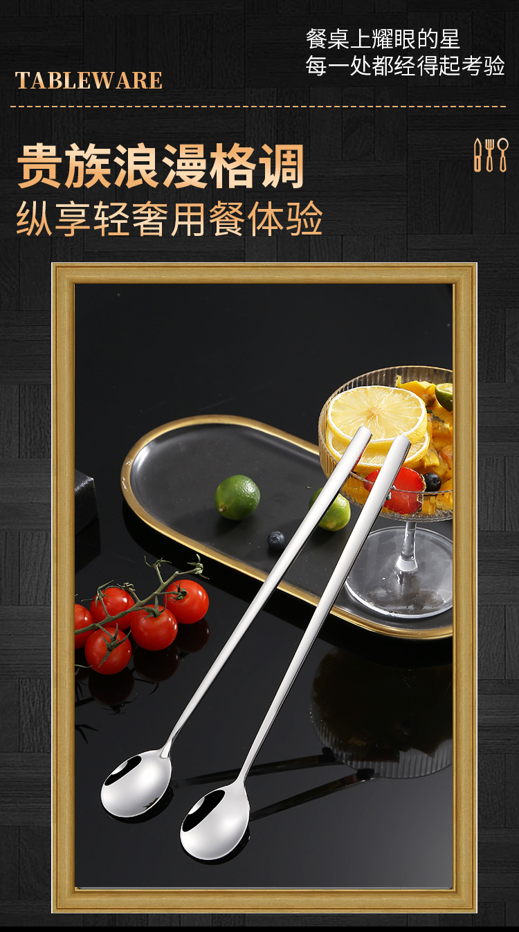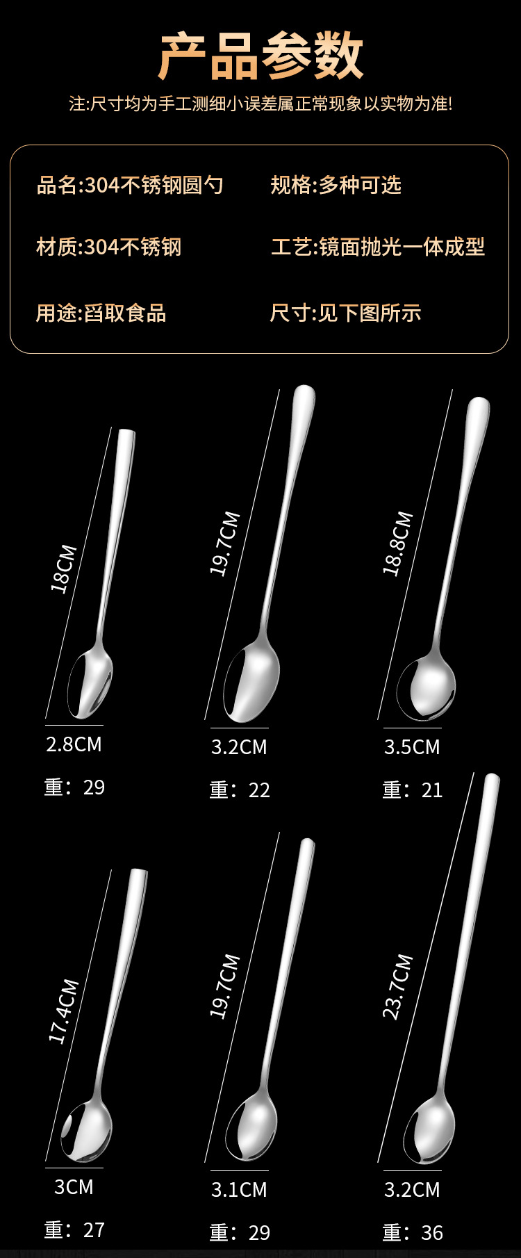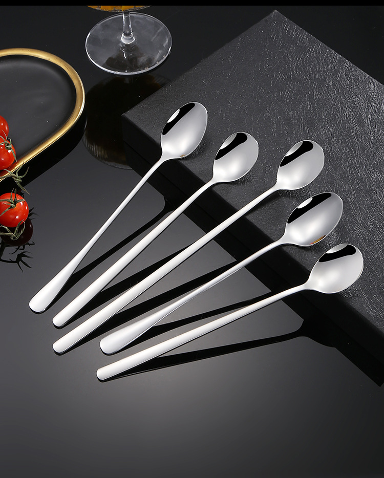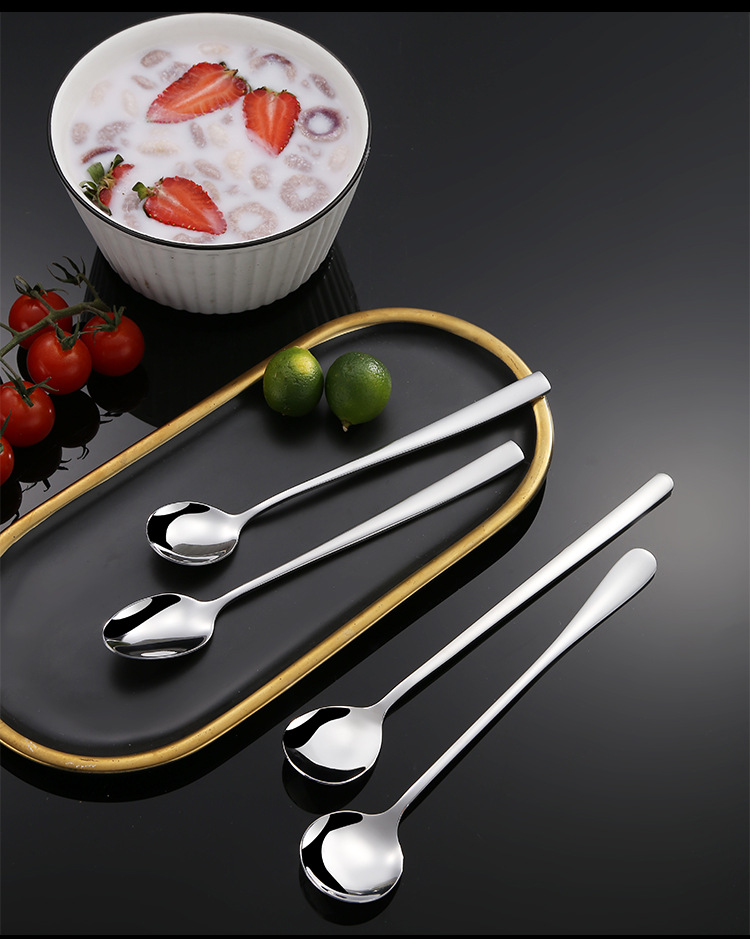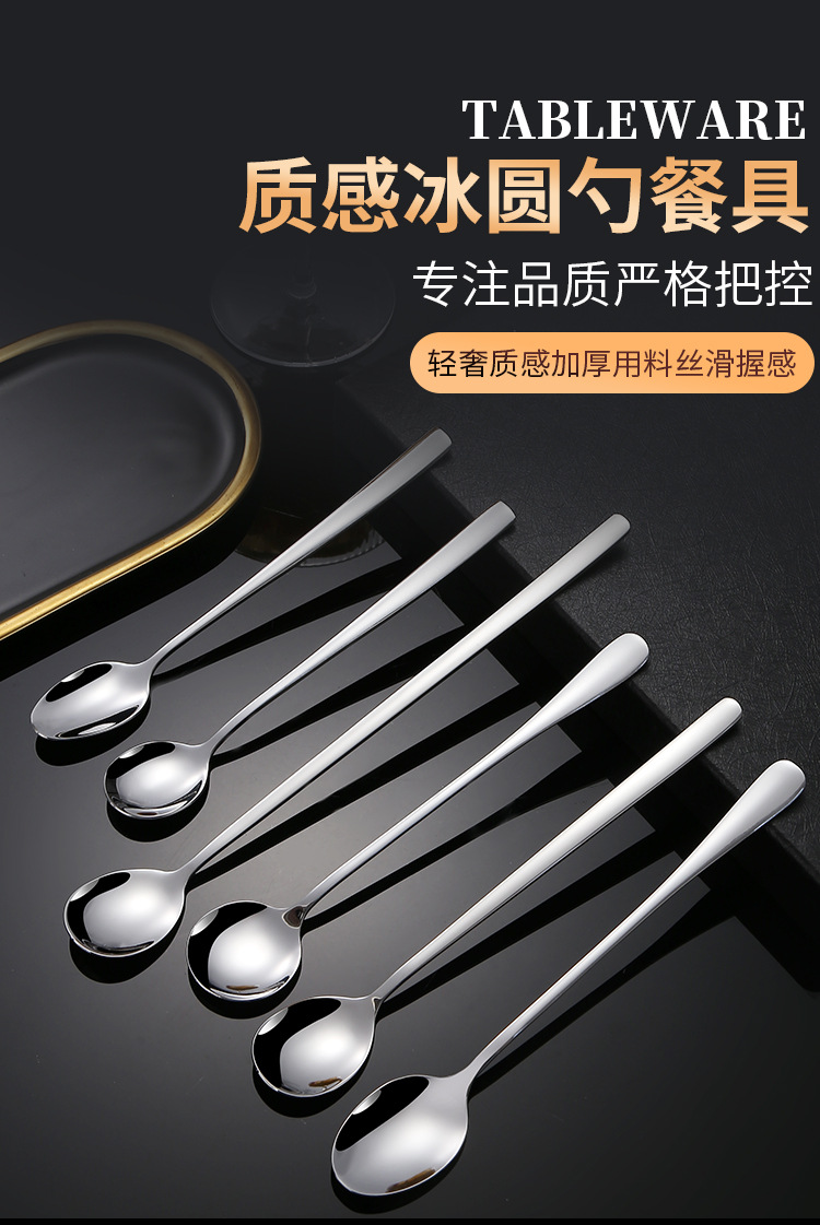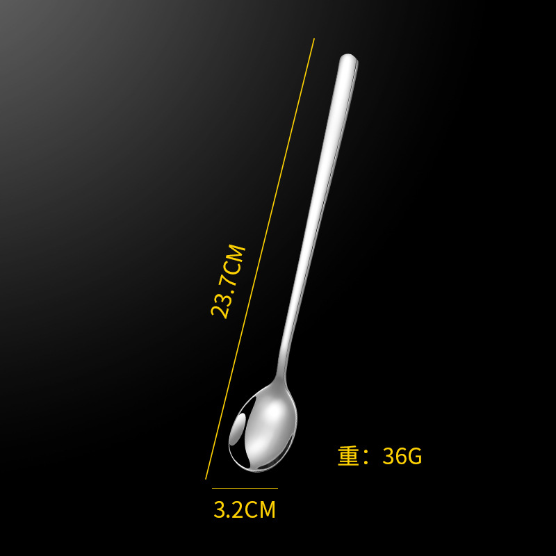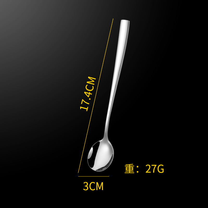 긴 손잡이 아이스 스푼 304 스테인리스 식기 한국식 스푼 고급스러운 아이스 라운드 스푼 서양식 디저트 믹싱 스푼 두꺼운스토어 가기