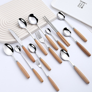 木柄餐具不锈钢刀叉勺日式创意西餐刀叉套装家用筷子叉子勺子批发