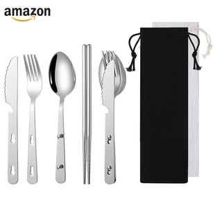 亚马逊304不锈钢便携餐具套装折叠刀叉勺筷子户外旅行露营收纳袋