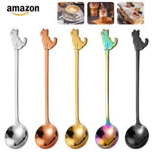 创意猫勺304不锈钢咖啡勺卡通可爱小勺子调羹甜品勺搅拌蜂蜜勺子