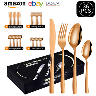 亚马逊跨境方柄刀叉勺套装西餐牛排刀叉勺子36/40件套不锈钢餐具