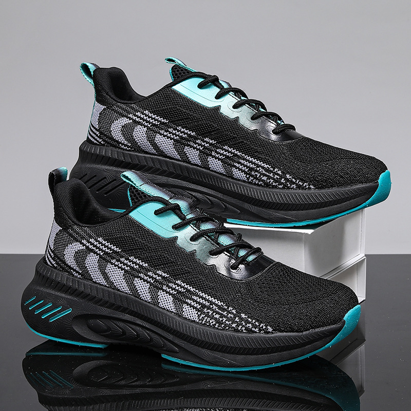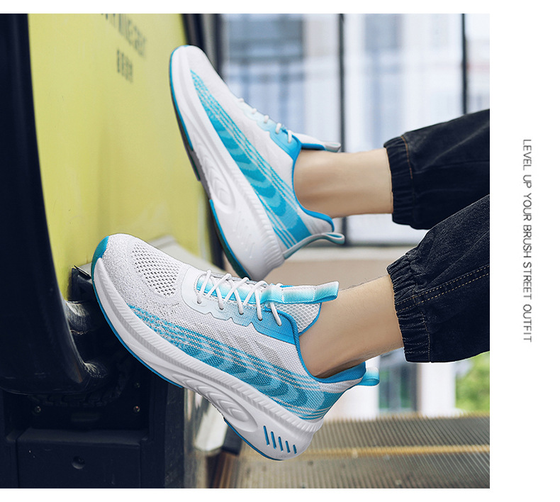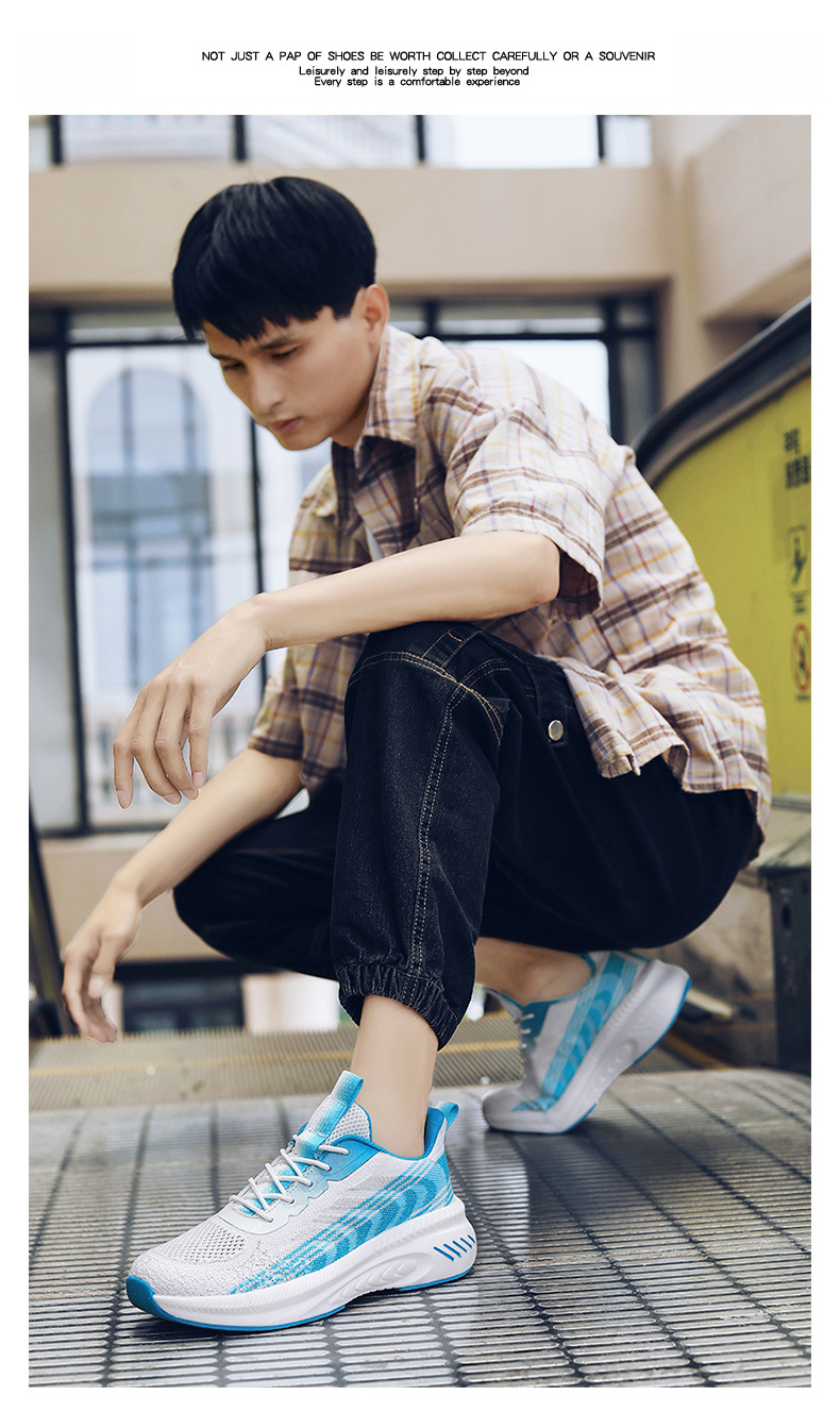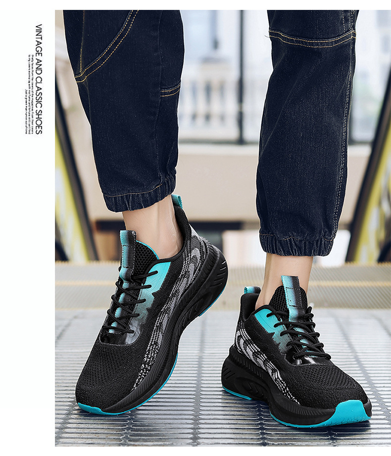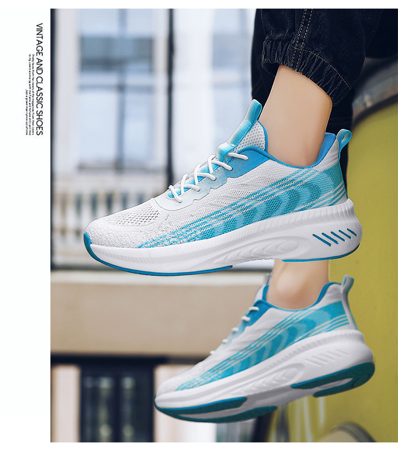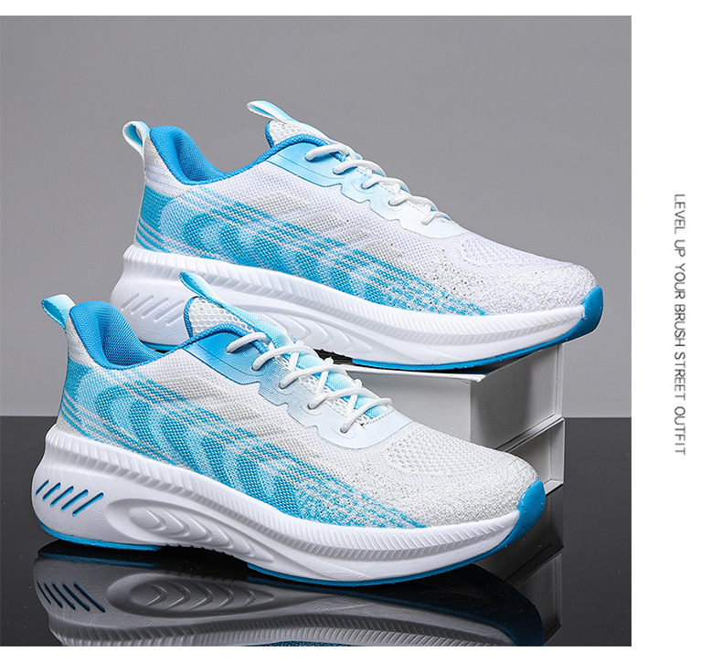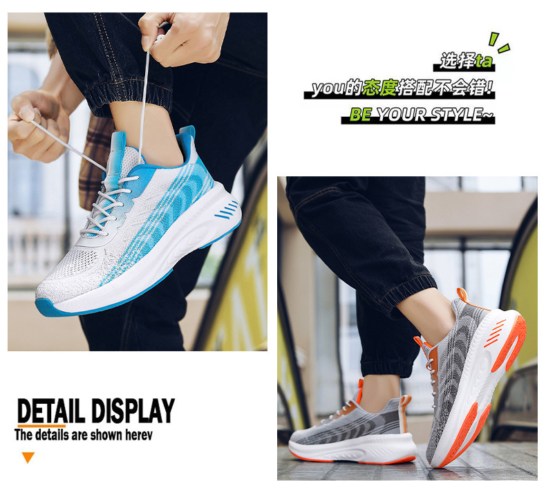 새로운 스타일 메쉬 신발 커플 2023 봄과 여름 조수 비행 짠 신발 통기성 두꺼운 밑창 증가 모든 일치 메쉬 운동화스토어 가기