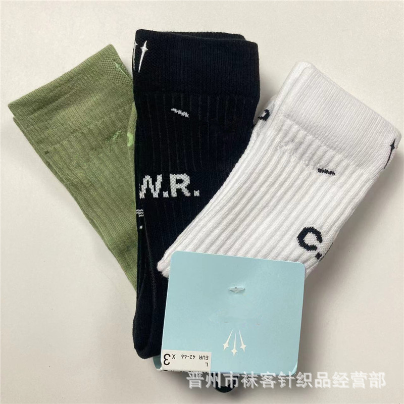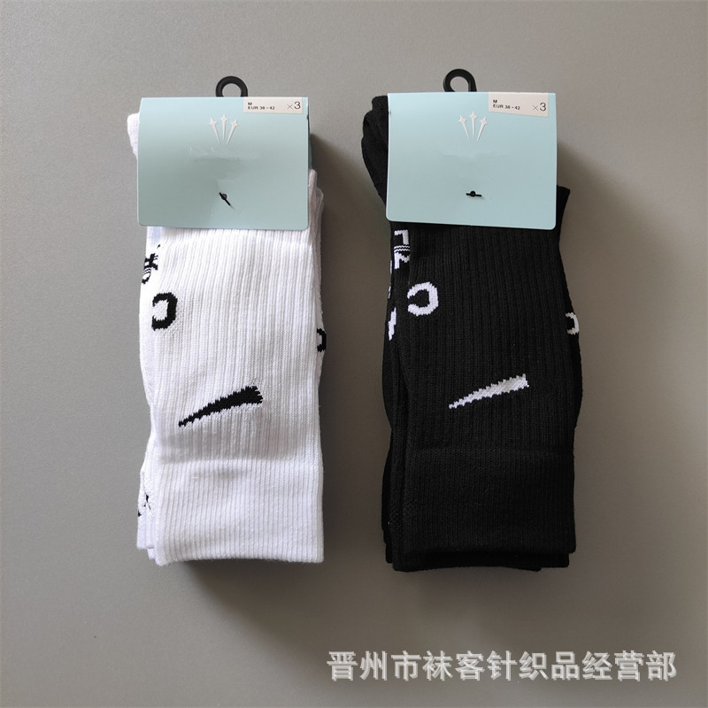 새로운 자수 조인트 3 쌍 스포츠 양말 수건 바닥 높은 배럴 흑백 농구 양말 남성용 러닝 스틱스 면스토어 가기