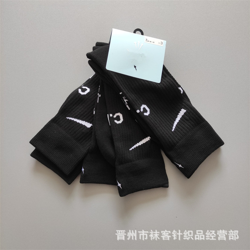 새로운 자수 조인트 3 쌍 스포츠 양말 수건 바닥 높은 배럴 흑백 농구 양말 남성용 러닝 스틱스 면