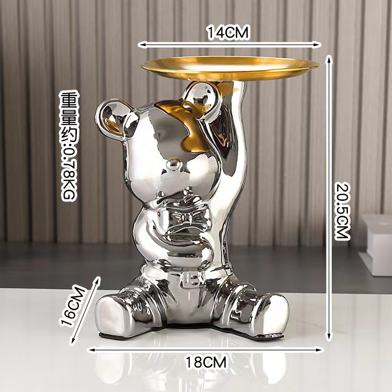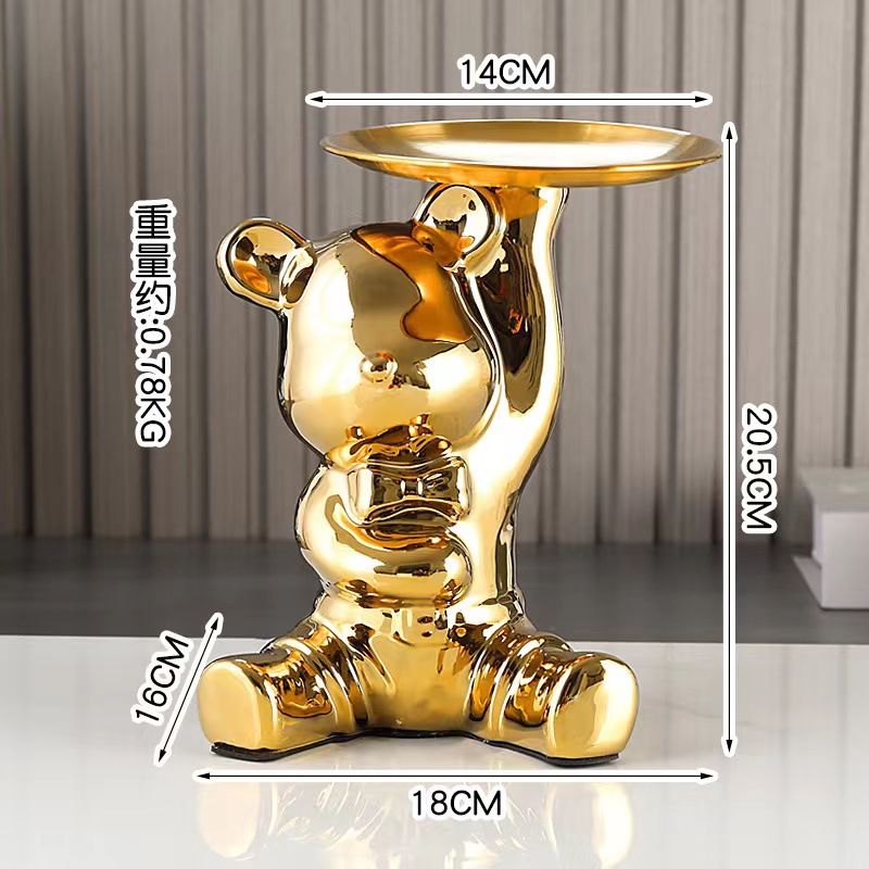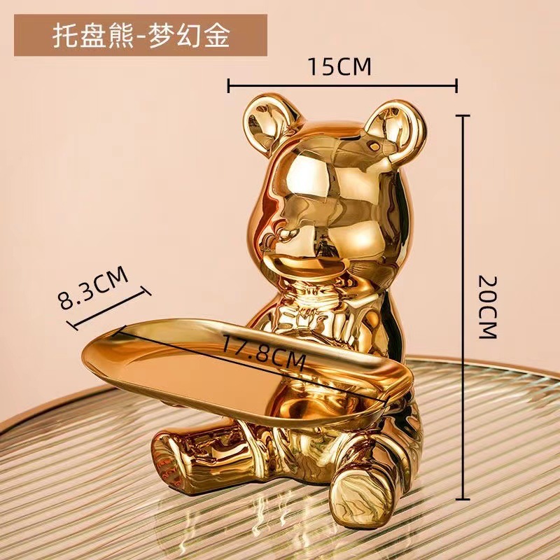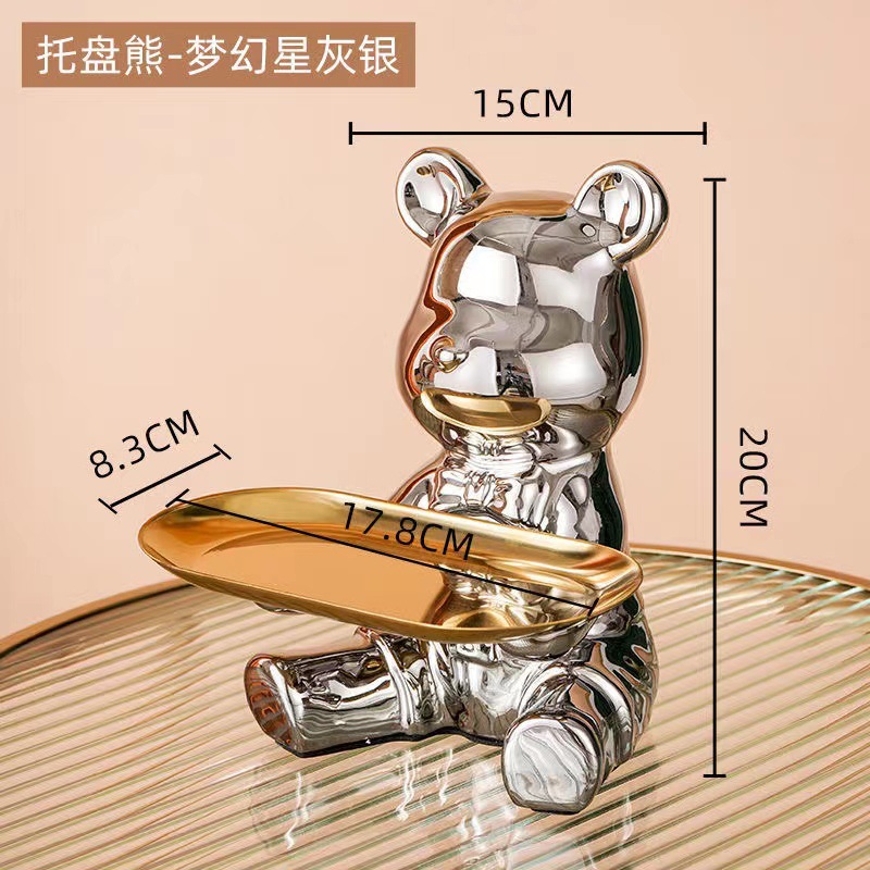 세라믹 폭력곰 트레이 현관 열쇠 보관 장식품 거실 수납 데스크탑 정리함
