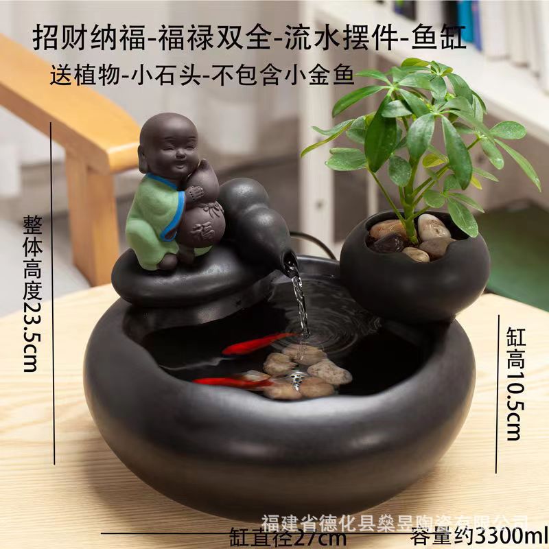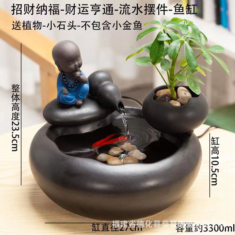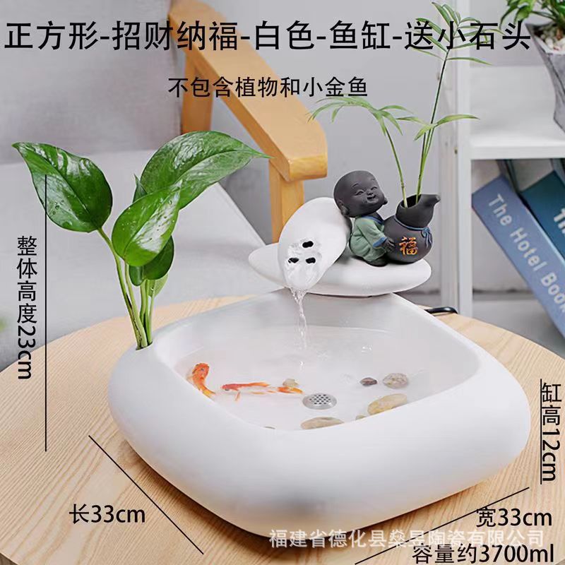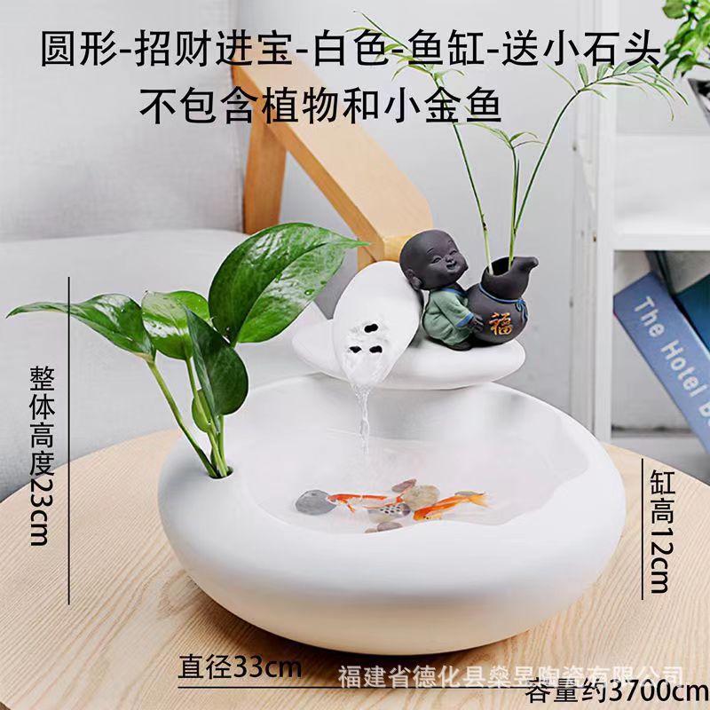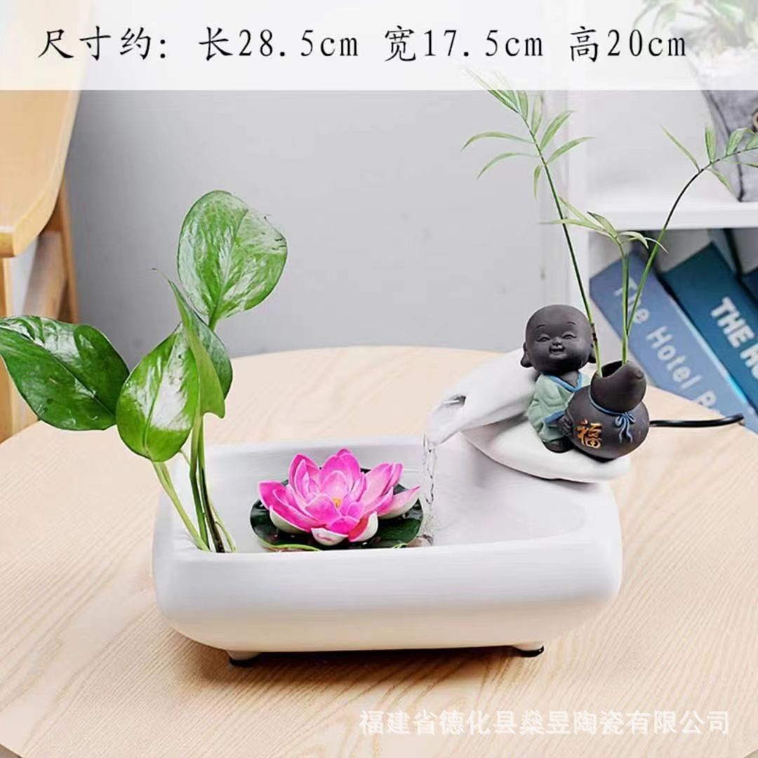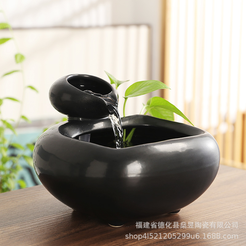 세라믹 흐르는 물 어항 자동 물 순환 탁상 사무실 장식 커피 테이블 분수 물 풍경 작은 장식품 열기