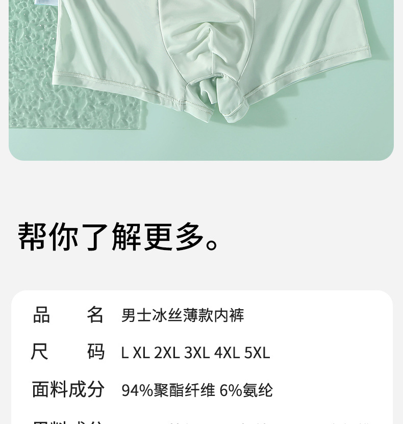 남성용 아이스 실크 에어컨 바지 5A 학년 항균 아이스 실크 원활한 통기성 남성용 복서 바지