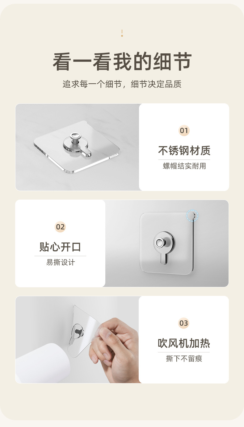 • [4 팩]⭐투명 대형 후크 5 개 추가