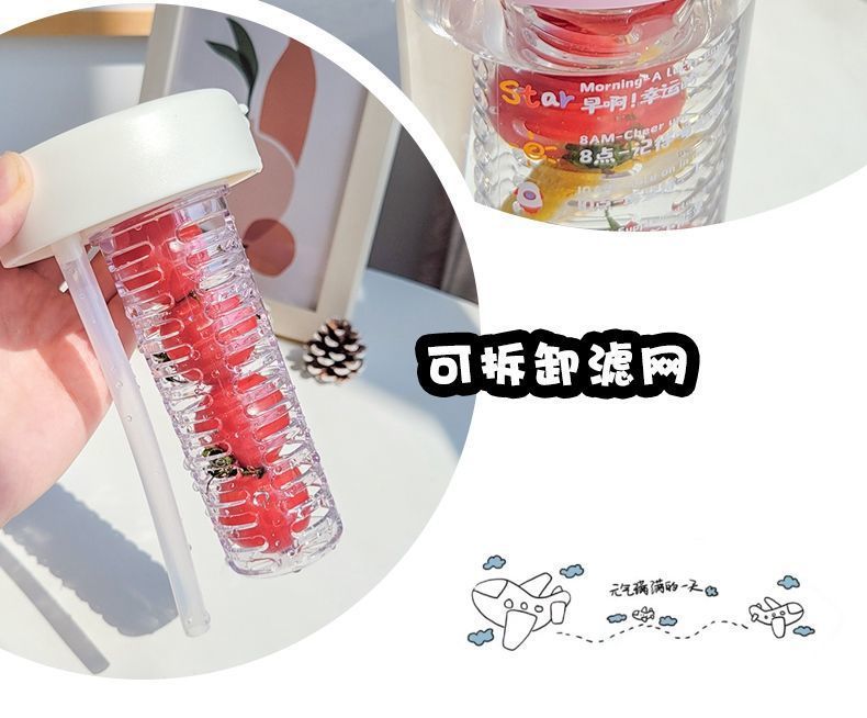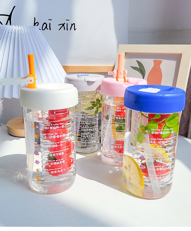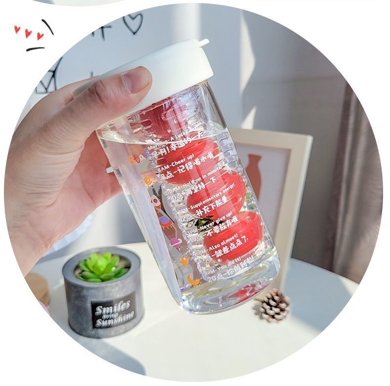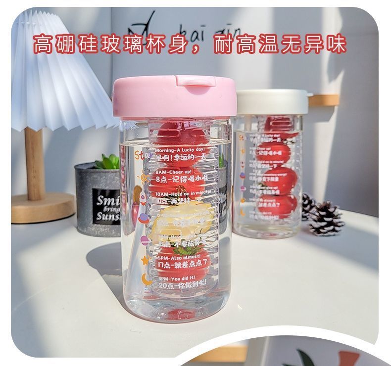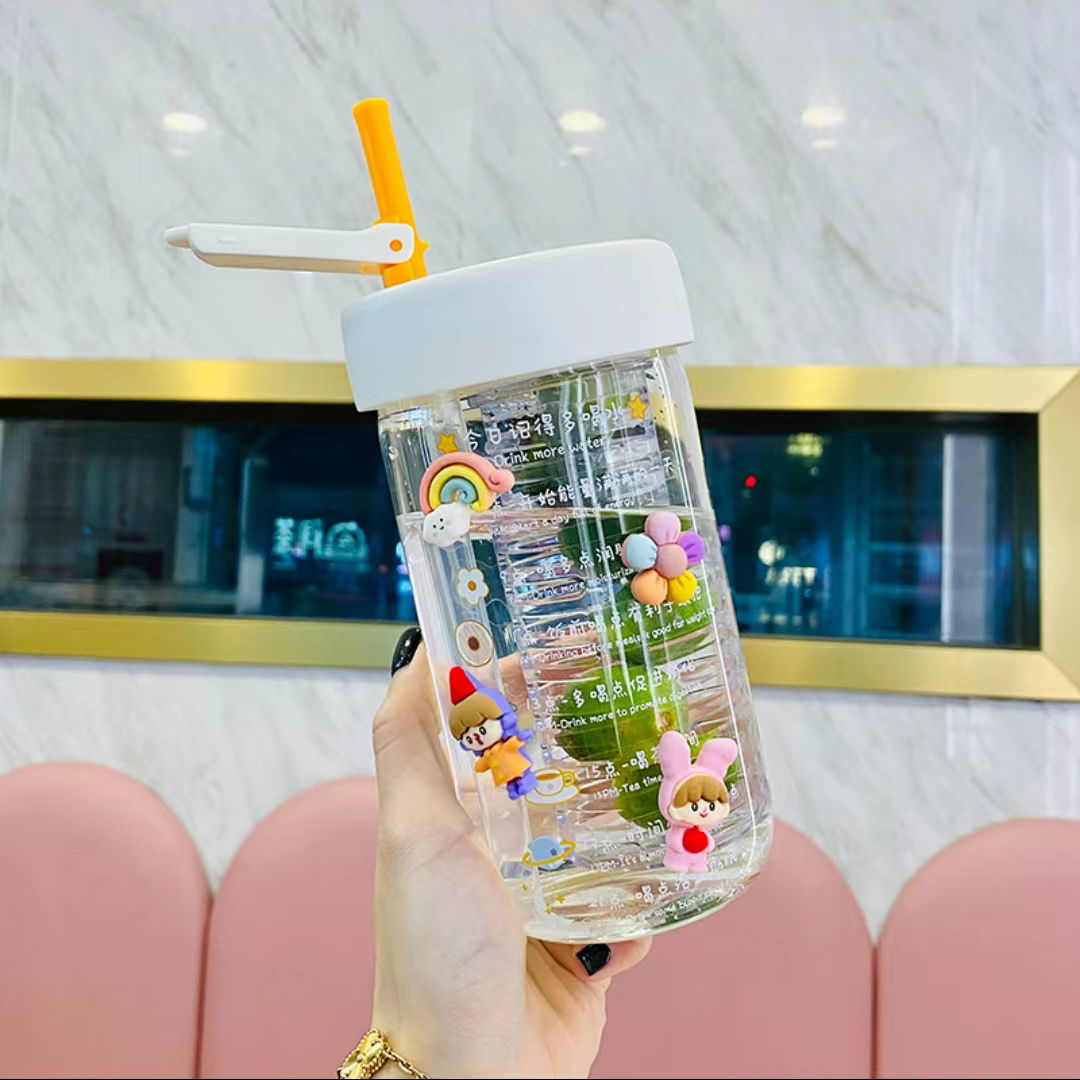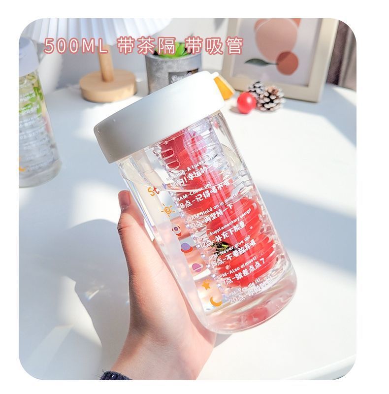 물 컵 여자의 새로운 높은 색깔 가치 유리 꽃 찻잔 고온 저항 차 물 분리 거품 컵 빨대 컵 투명 컵