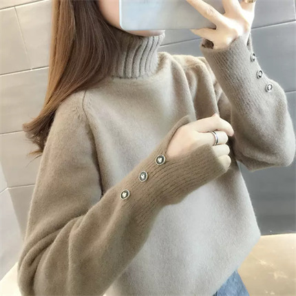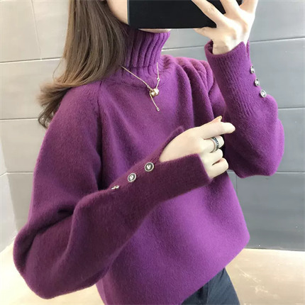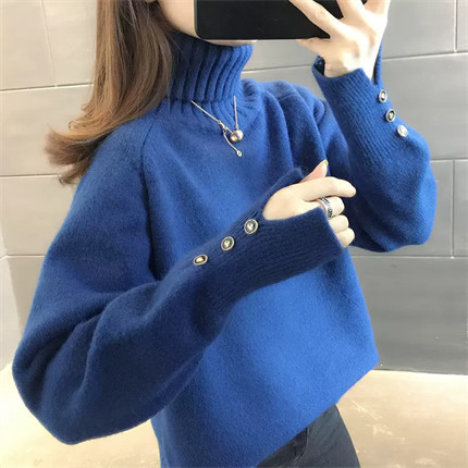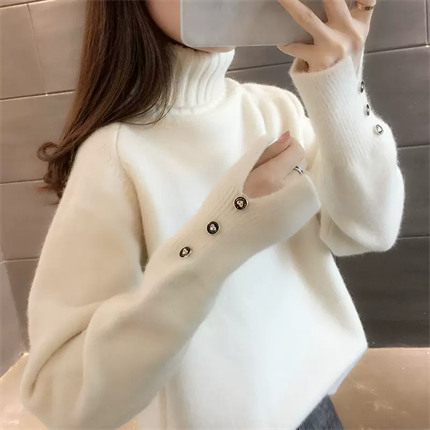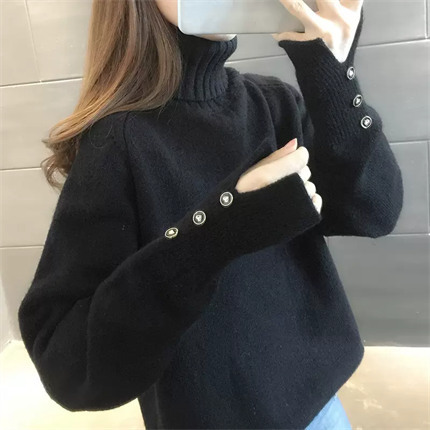 2023 새로운 스타일 외관 두꺼운 터틀넥 스웨터 인테리어 니트 베이스 셔츠 여성의 가을과 겨울 느슨한 긴팔 웨스턴 스타일스토어 가기