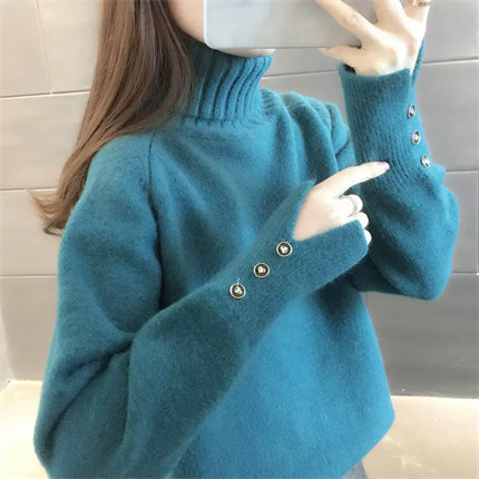 2023 새로운 스타일 외관 두꺼운 터틀넥 스웨터 인테리어 니트 베이스 셔츠 여성의 가을과 겨울 느슨한 긴팔 웨스턴 스타일