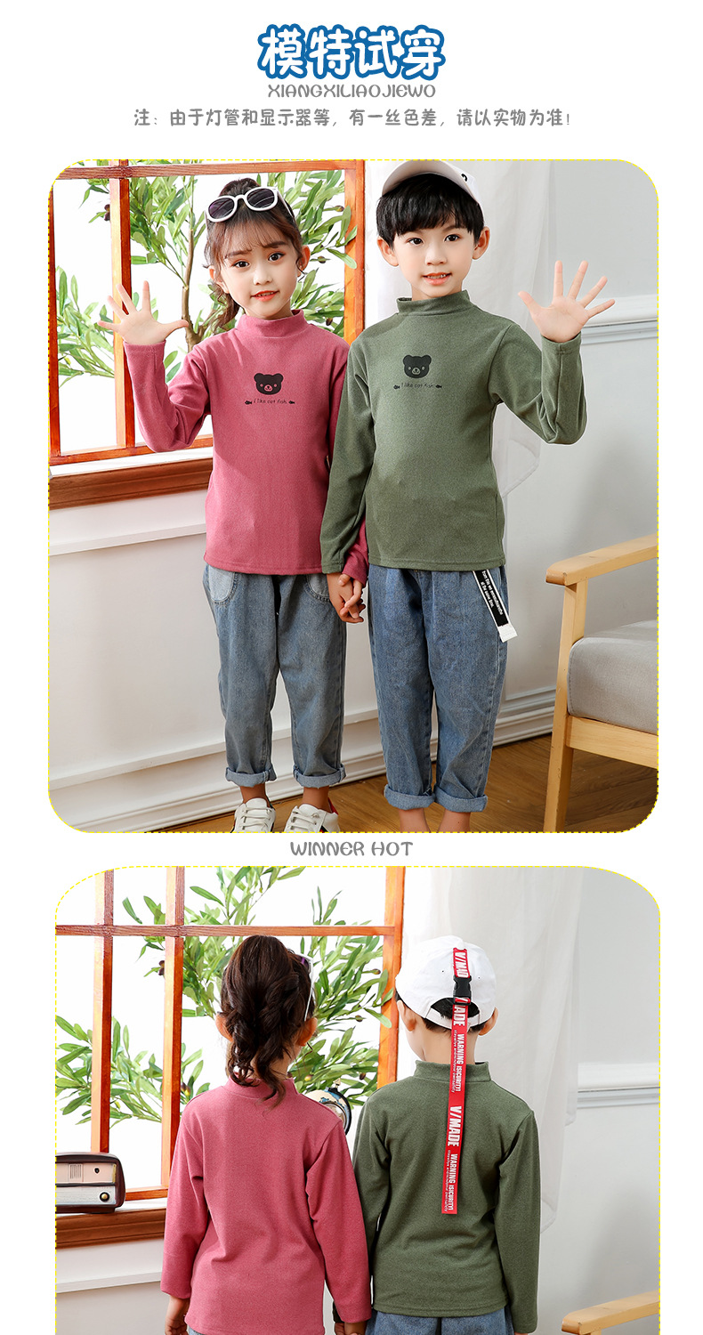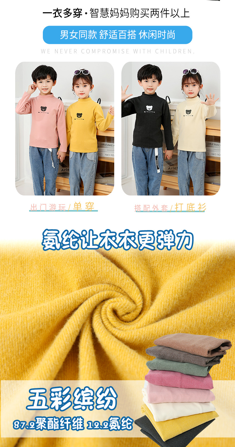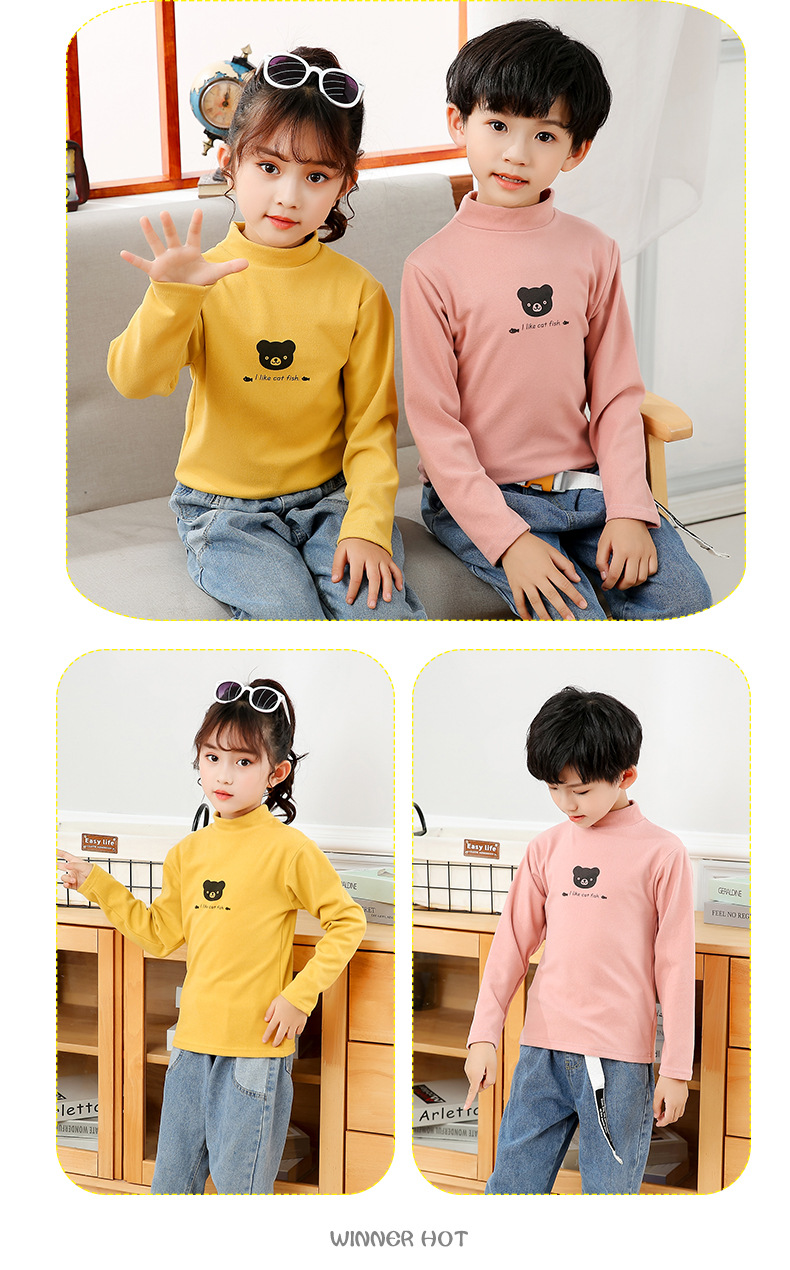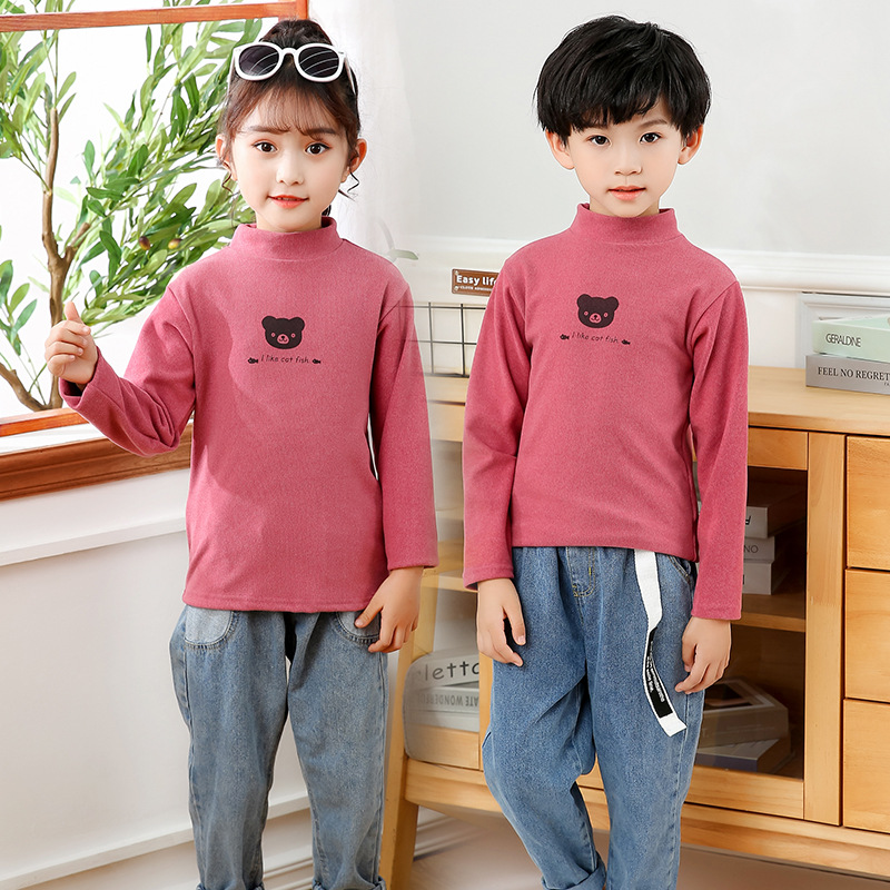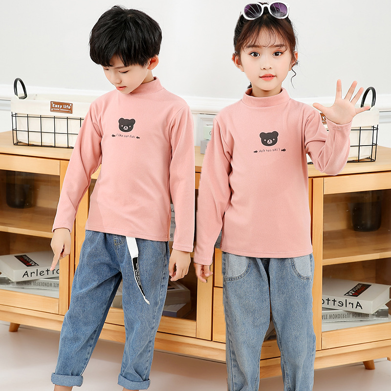 어린이 하의 셔츠 가을과 겨울 하프 하이 칼라 소년과 소녀를위한 싱글 피스 탑 따뜻한 미드 칼라 긴팔 티셔츠 하의