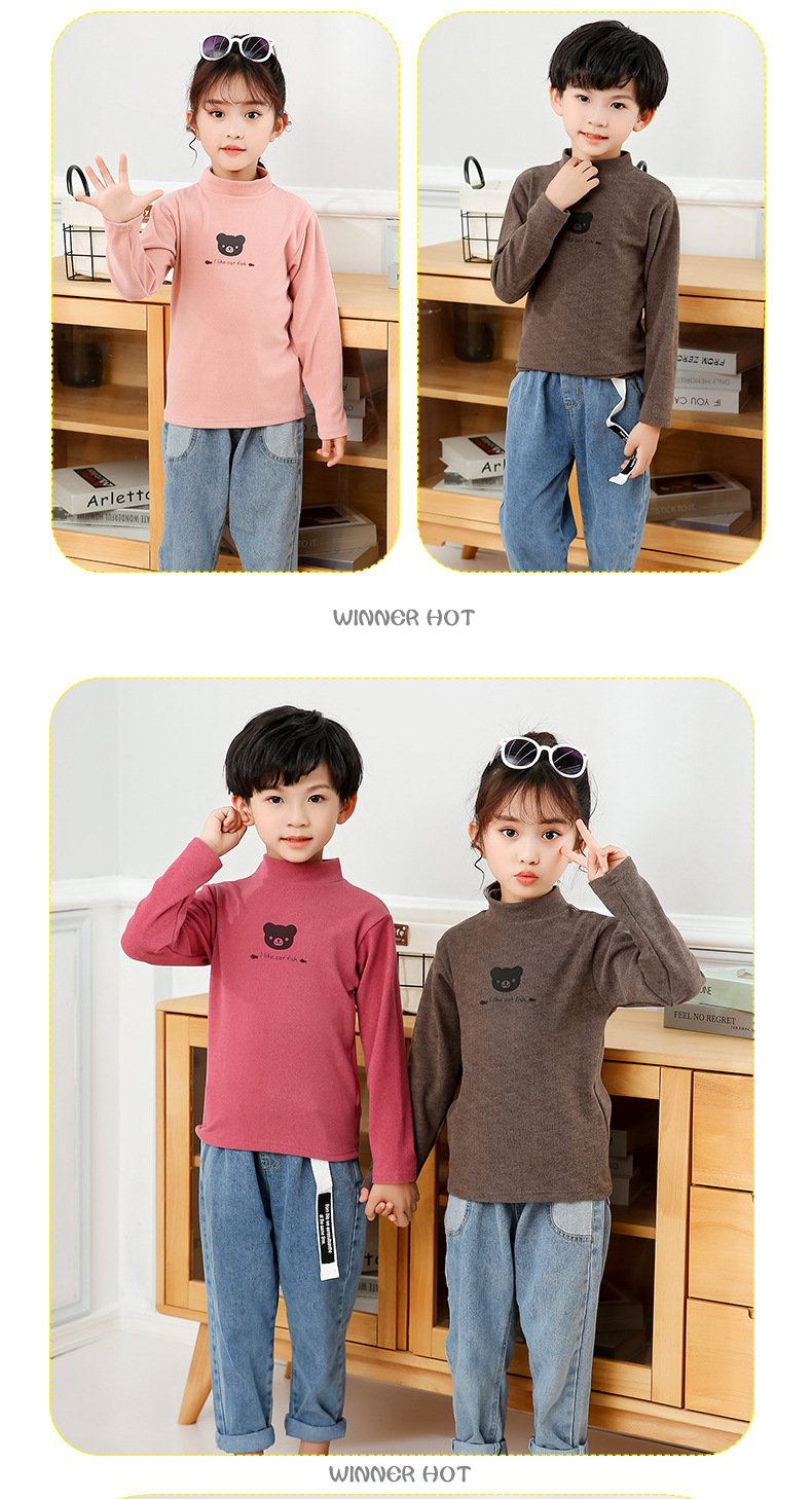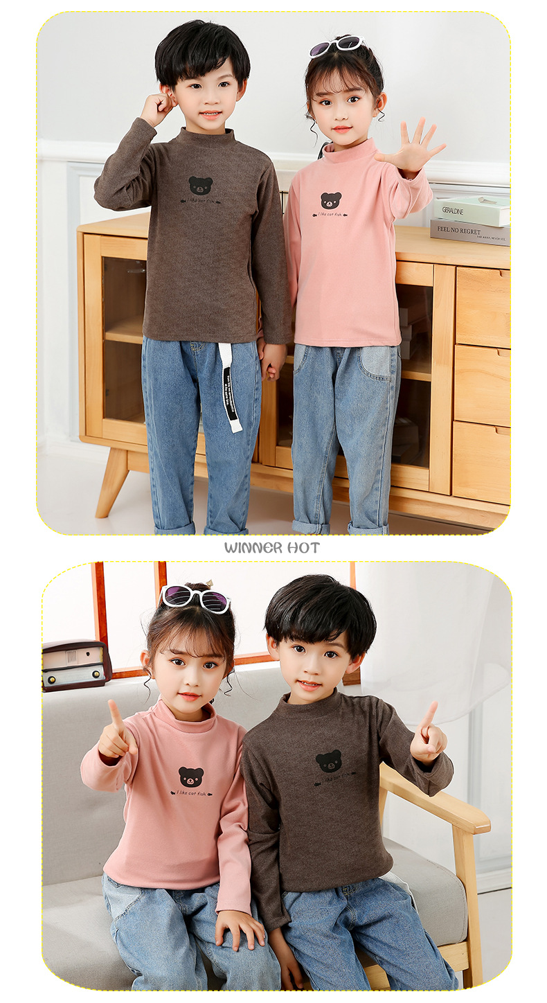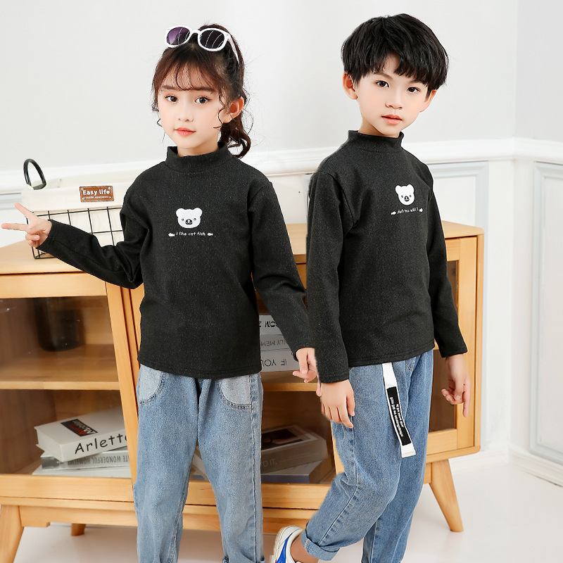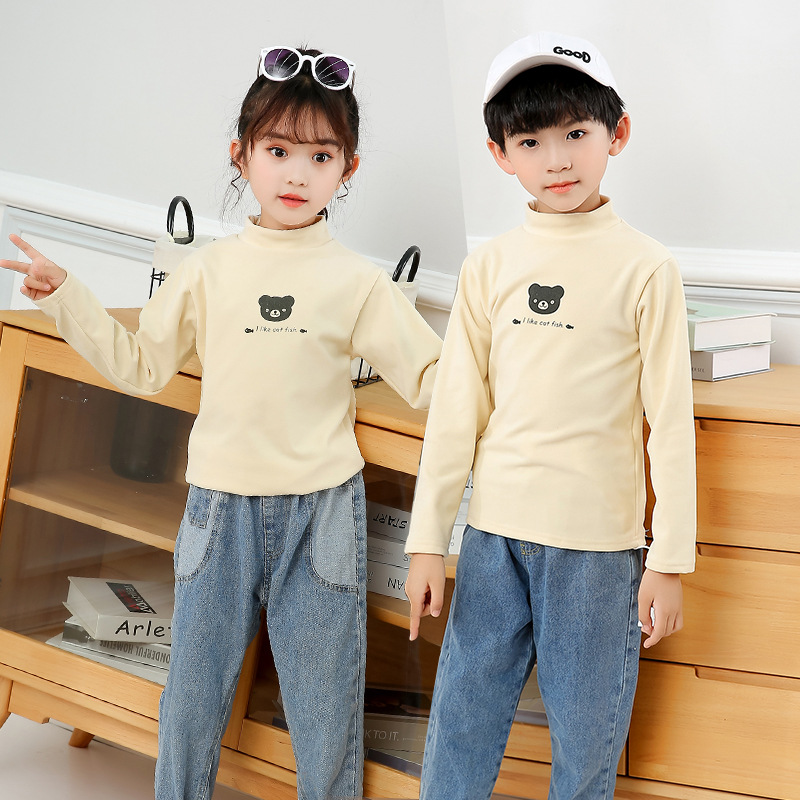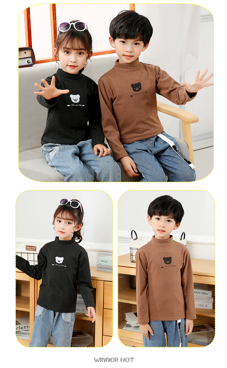 어린이 하의 셔츠 가을과 겨울 하프 하이 칼라 소년과 소녀를위한 싱글 피스 탑 따뜻한 미드 칼라 긴팔 티셔츠 하의