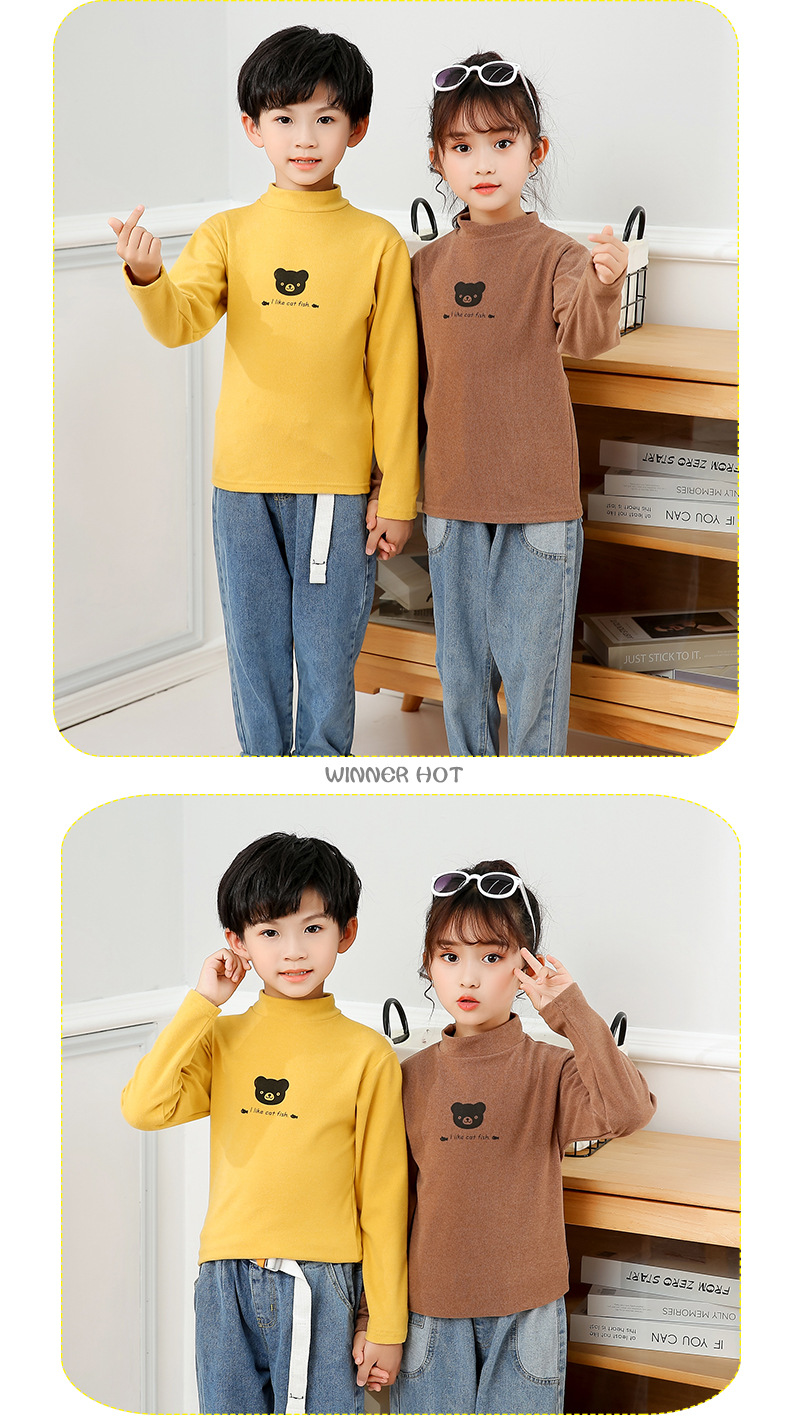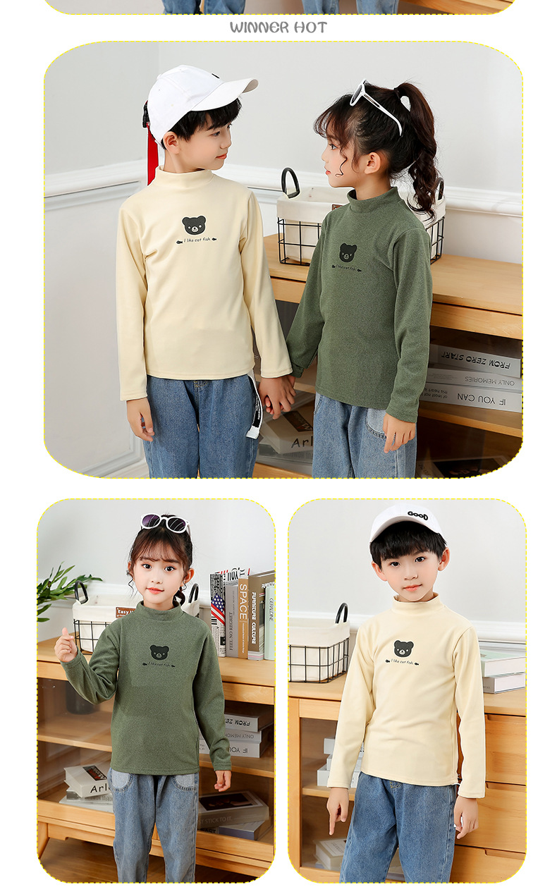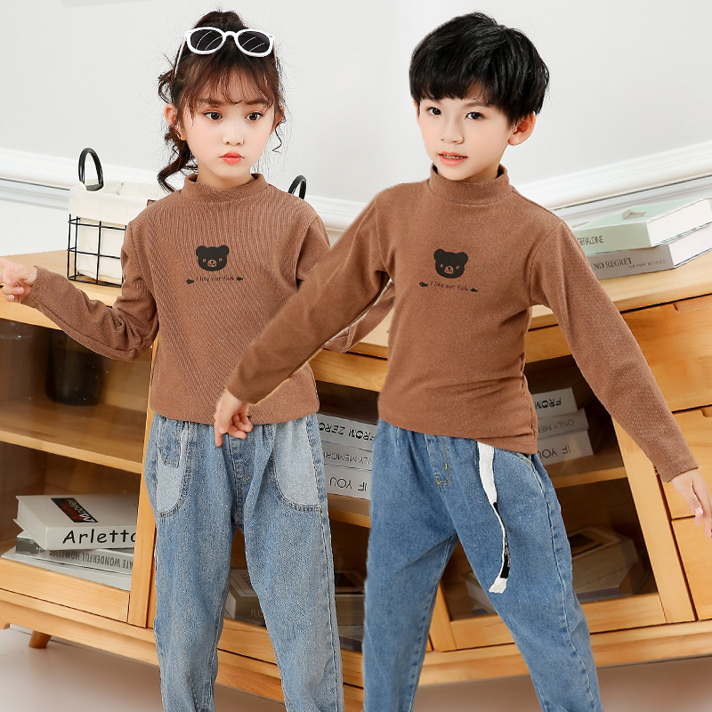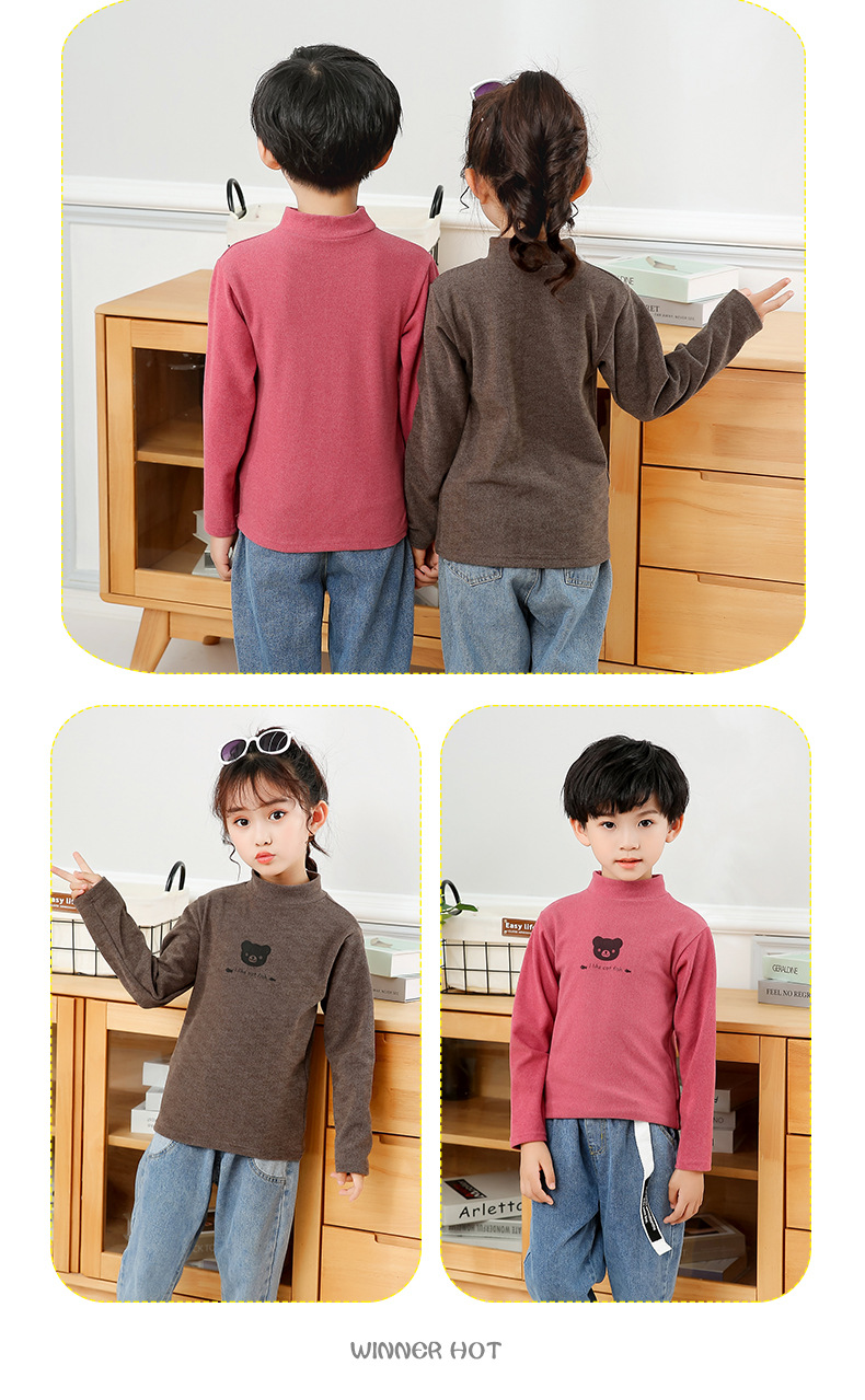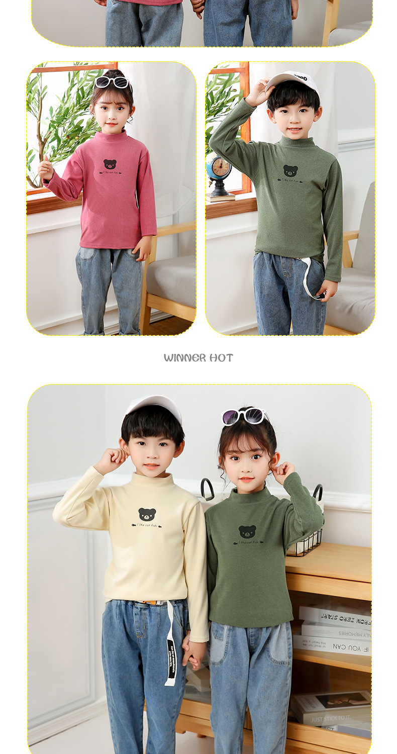 어린이 하의 셔츠 가을과 겨울 하프 하이 칼라 소년과 소녀를위한 싱글 피스 탑 따뜻한 미드 칼라 긴팔 티셔츠 하의