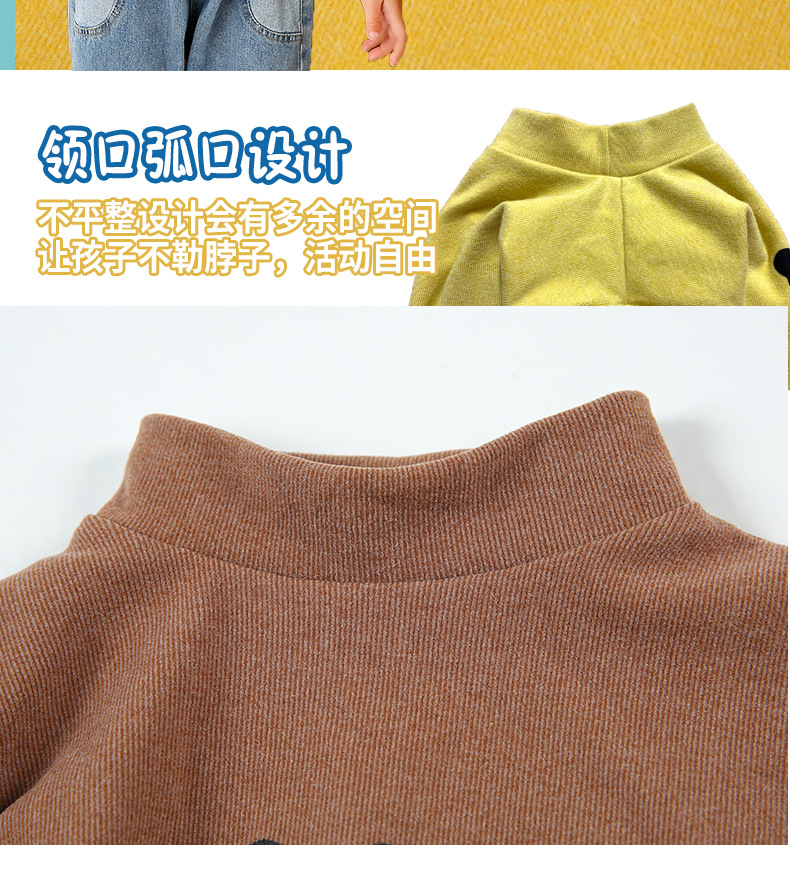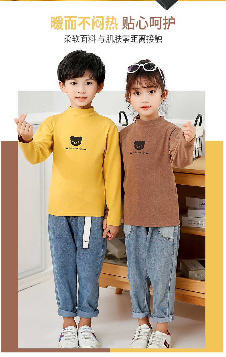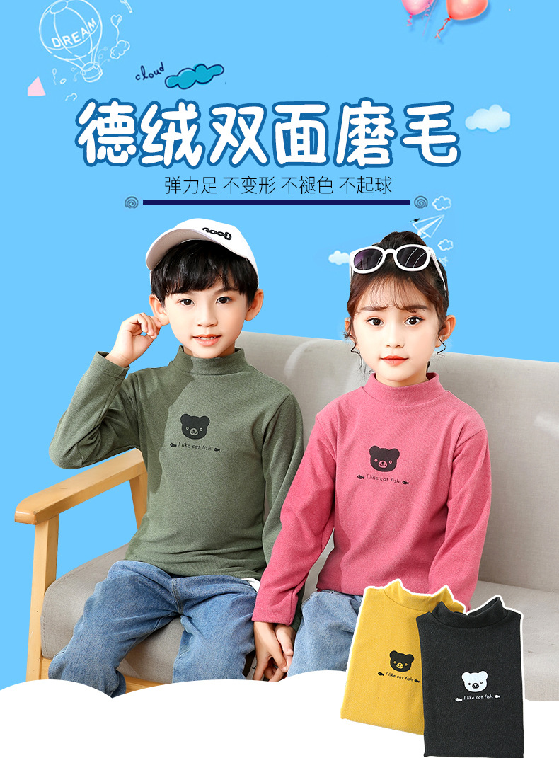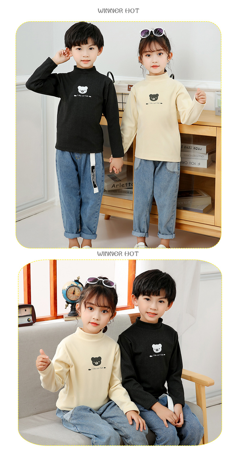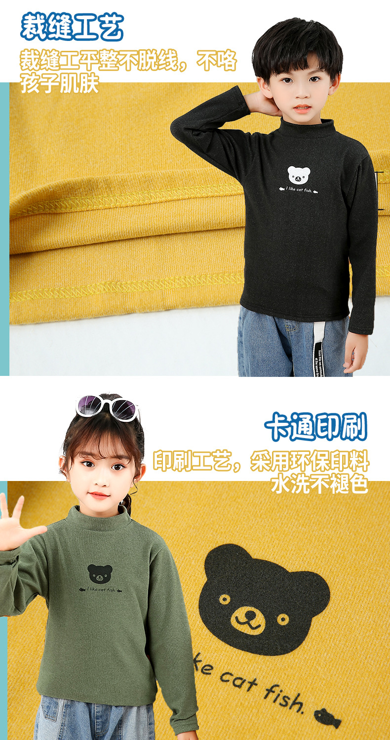 어린이 하의 셔츠 가을과 겨울 하프 하이 칼라 소년과 소녀를위한 싱글 피스 탑 따뜻한 미드 칼라 긴팔 티셔츠 하의
