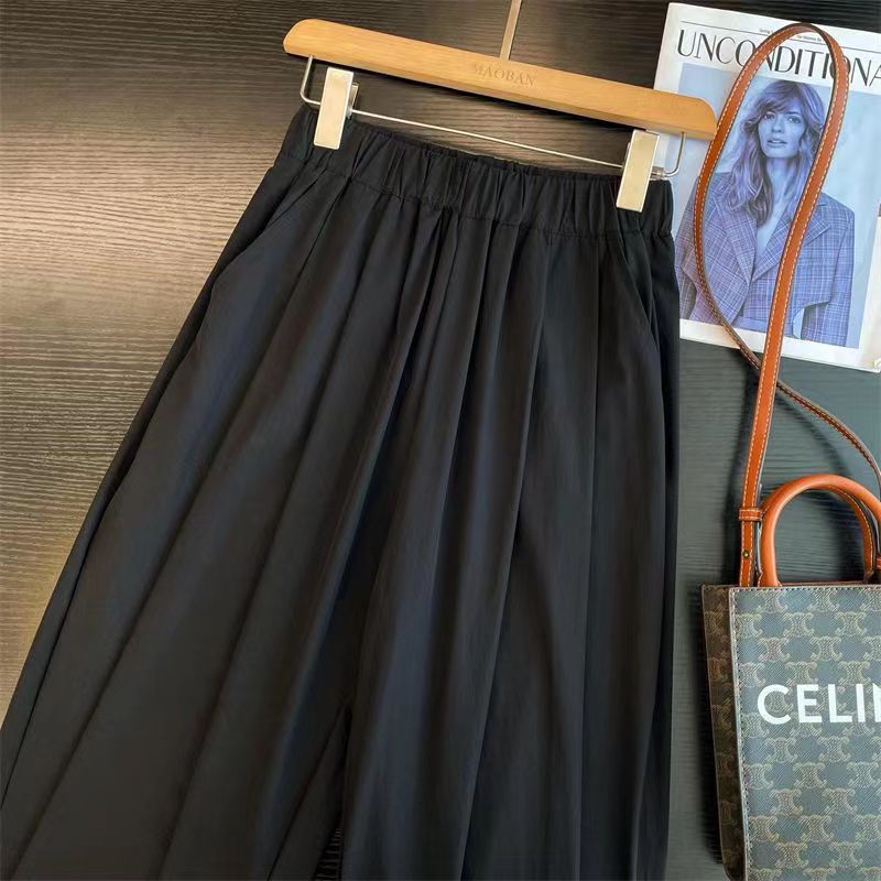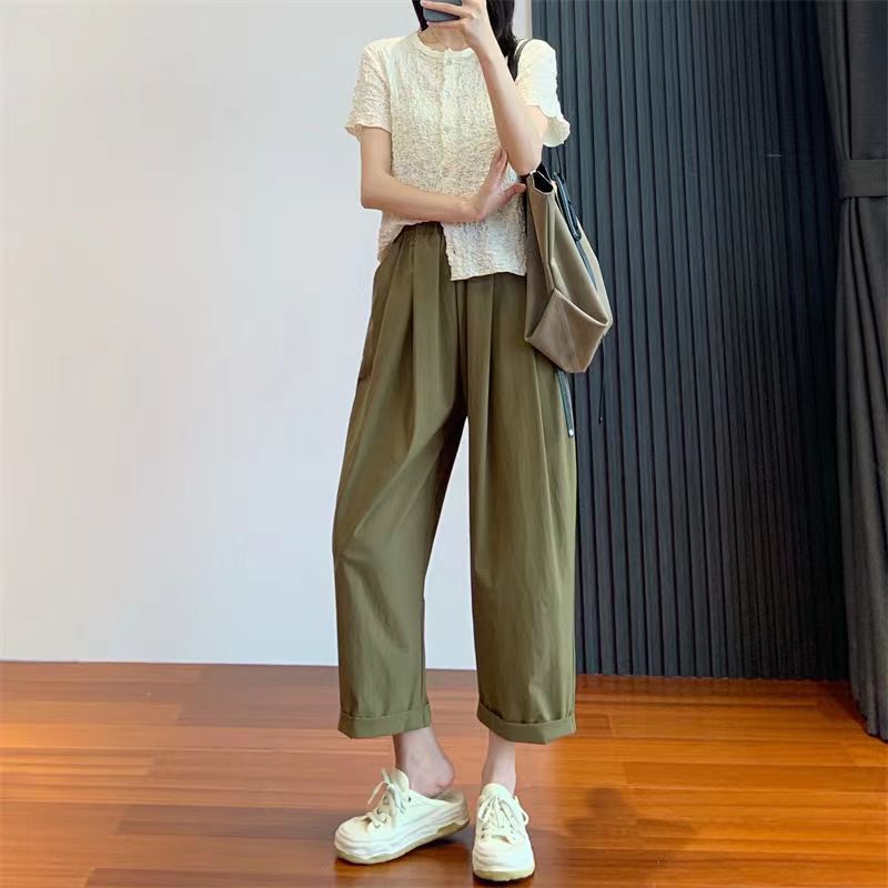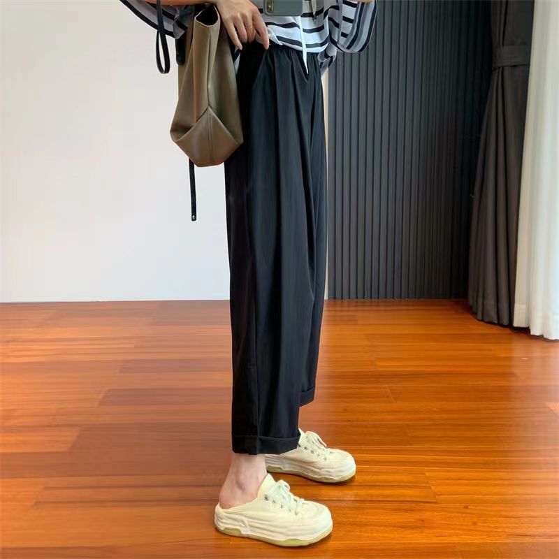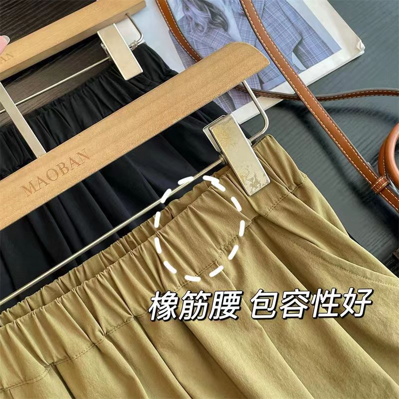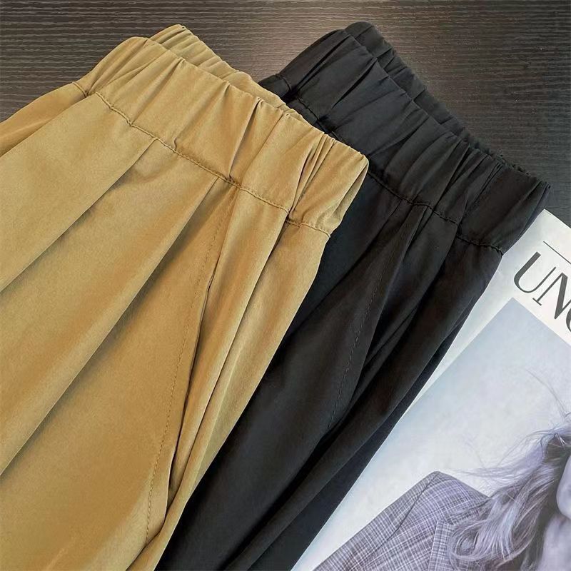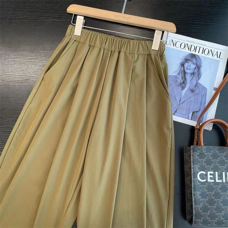 통통녀 플러스 사이즈 아이스 실크 경량 통기성 느슨한 슬리밍 Haren 바지 캐주얼 발목 길이 바지 여성의 여름 얇은 스트레이트 다리 바지