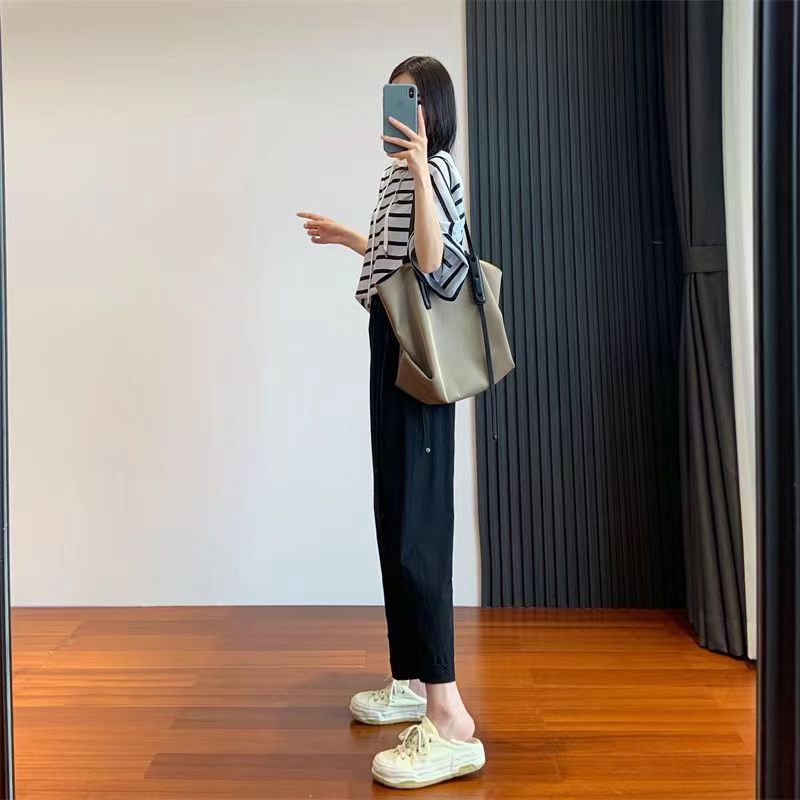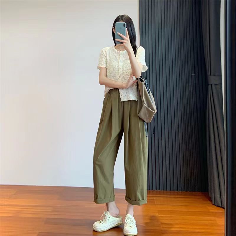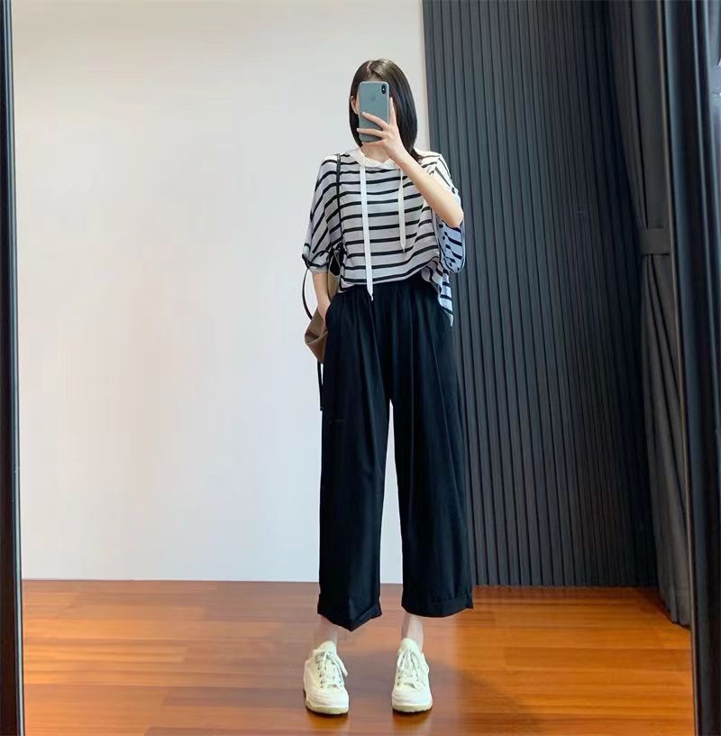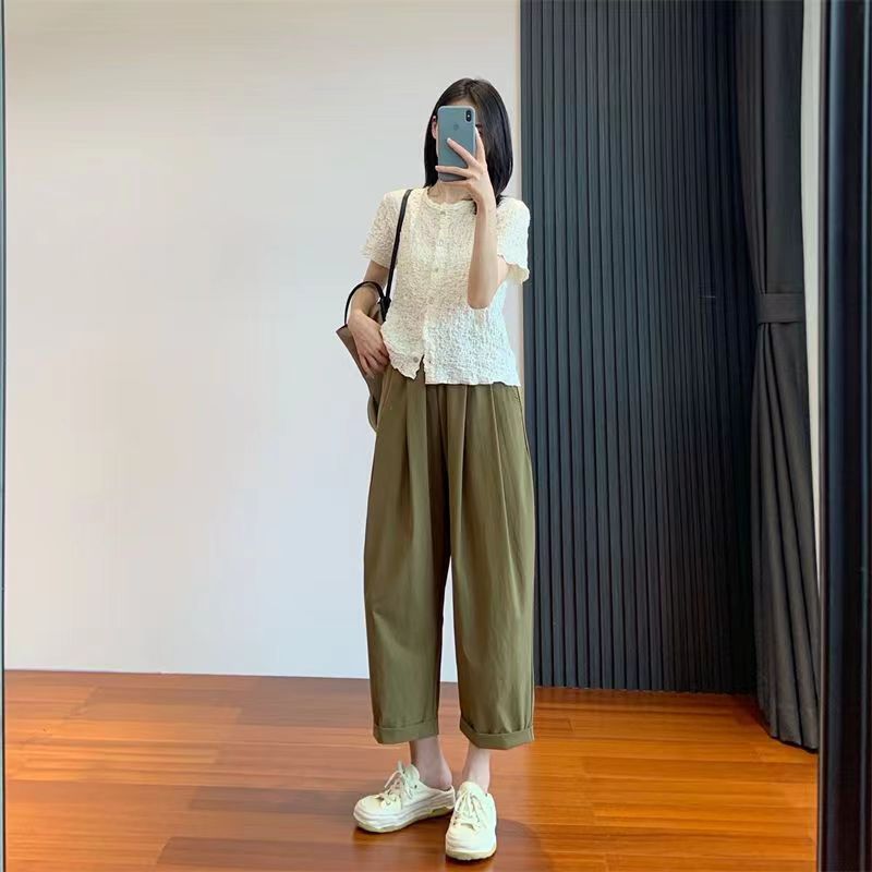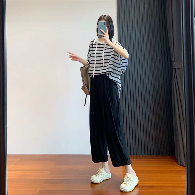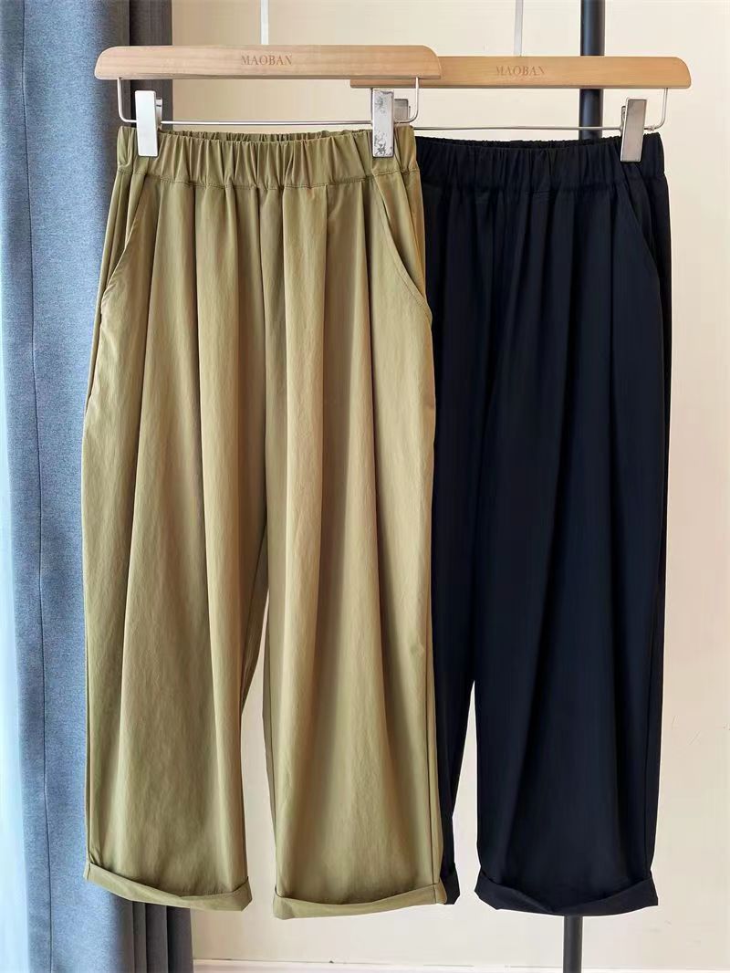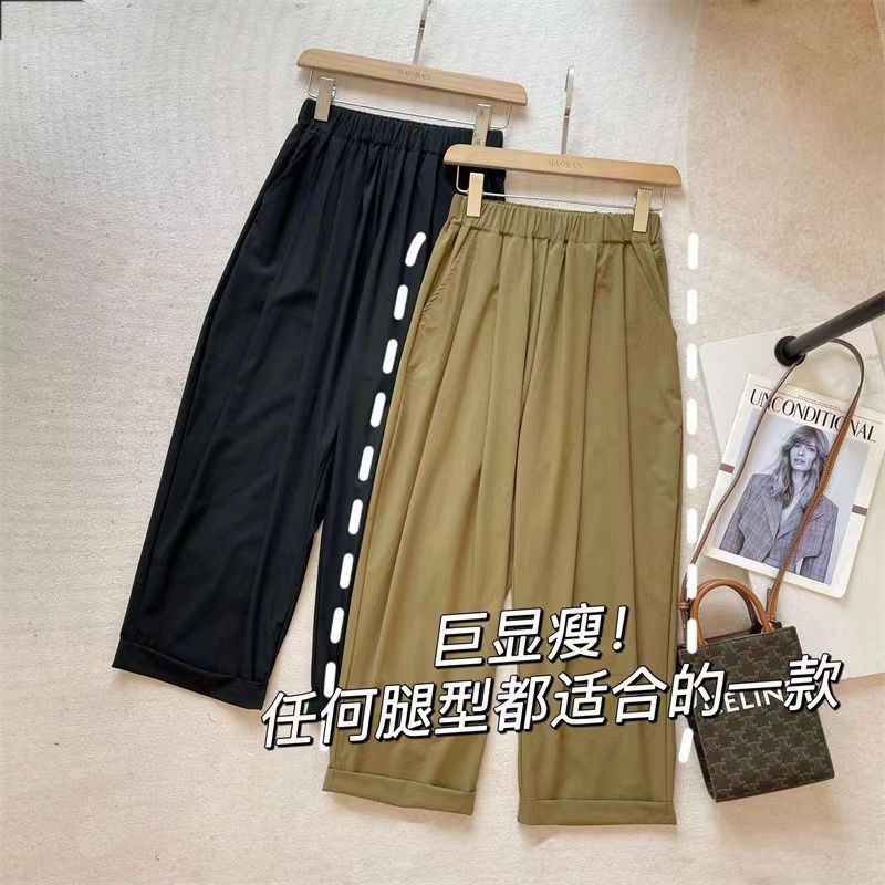 통통녀 플러스 사이즈 아이스 실크 경량 통기성 느슨한 슬리밍 Haren 바지 캐주얼 발목 길이 바지 여성의 여름 얇은 스트레이트 다리 바지스토어 가기