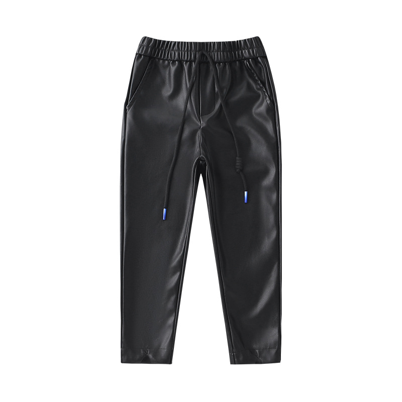 아동복 아동 바지 여아 가죽 바지 스킨 팬츠 2023 봄과 가을 신상품 PU 가죽 바지 한국식 미드 웨이스트 슬림핏 팬츠