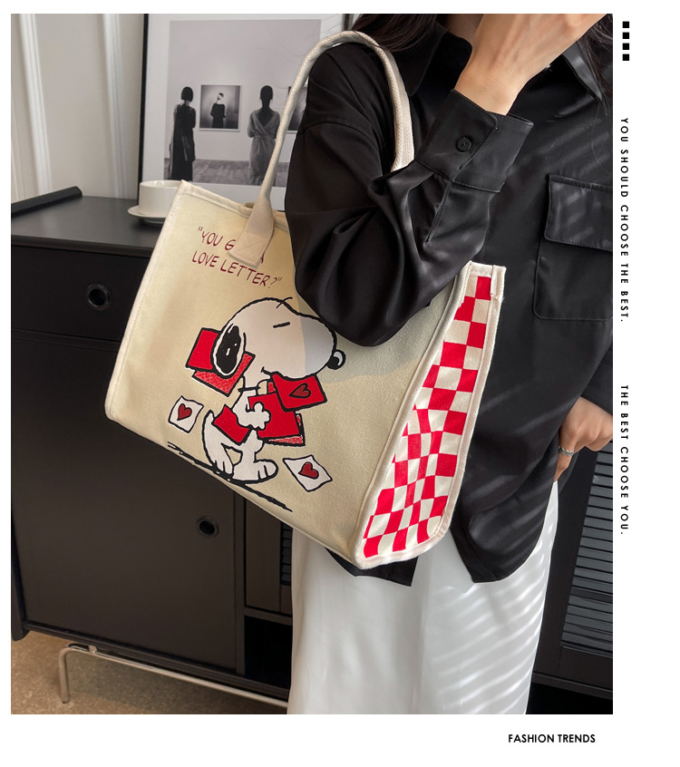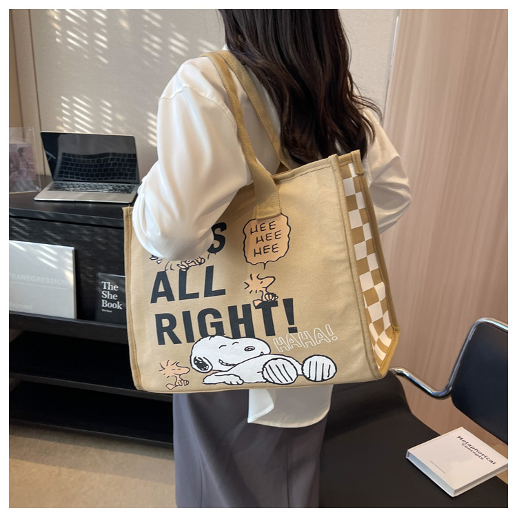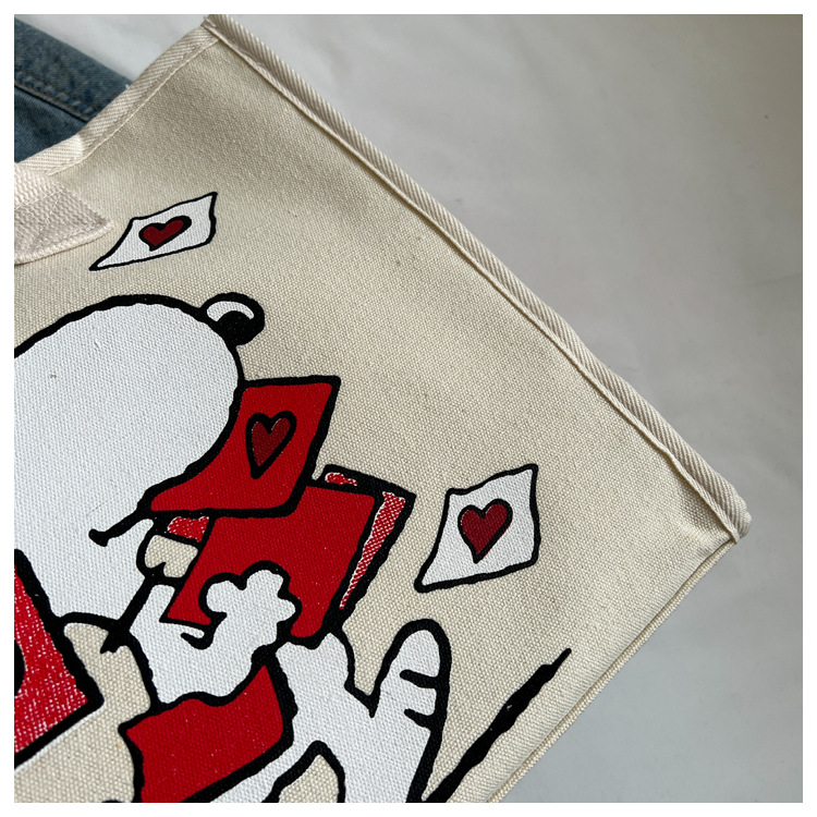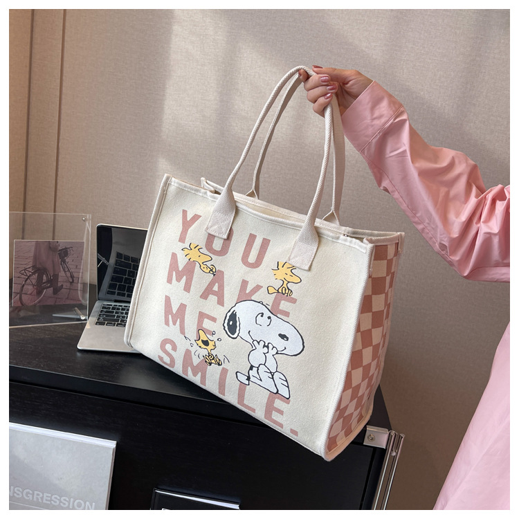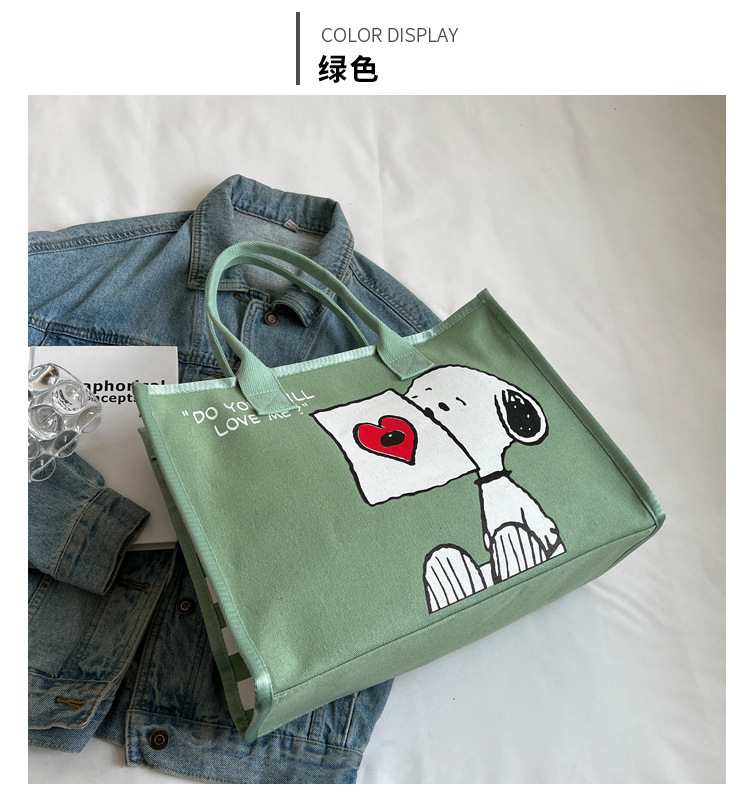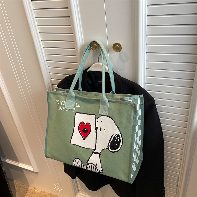 2024 봄 새 가방 페인트 강아지 밑으로 인쇄 된 휴대용 캔버스 가방 두꺼운 텍스트 어깨 가방 트렌디스토어 가기