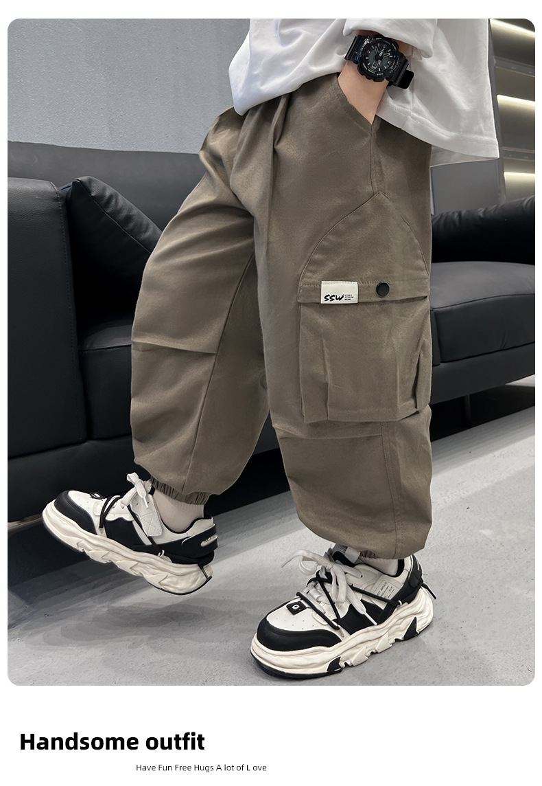 남아 가을 작업복 바지 2025 신상 큰 아이들 봄 가을 캐주얼 긴바지 어린이 가을 운동 보온 바지