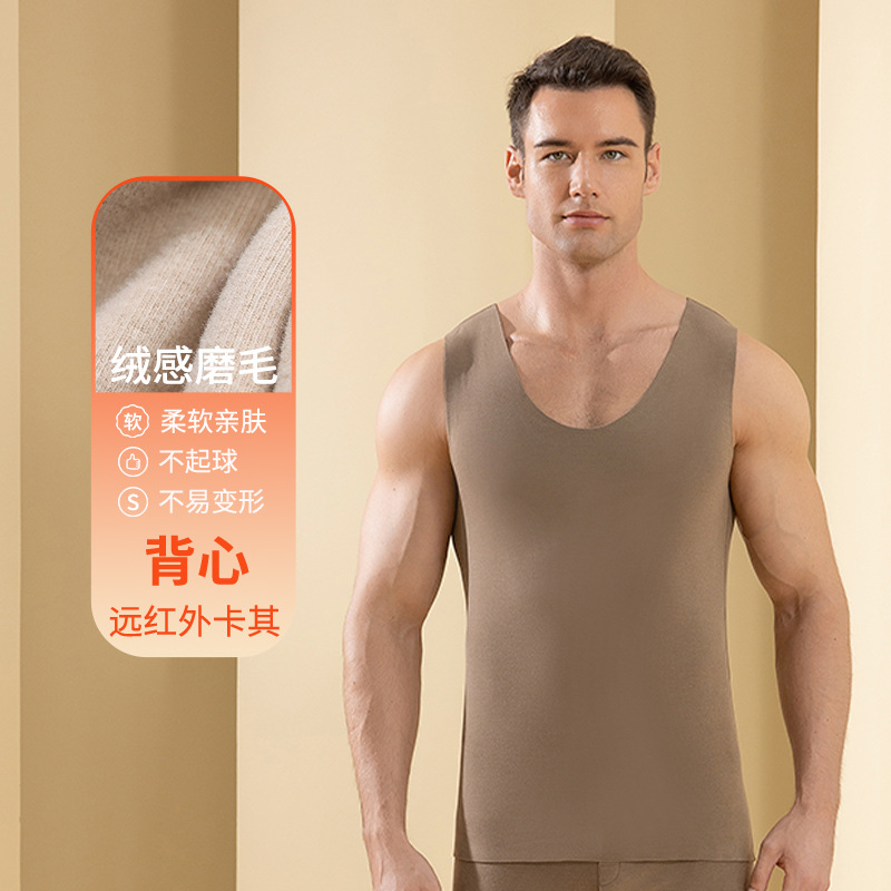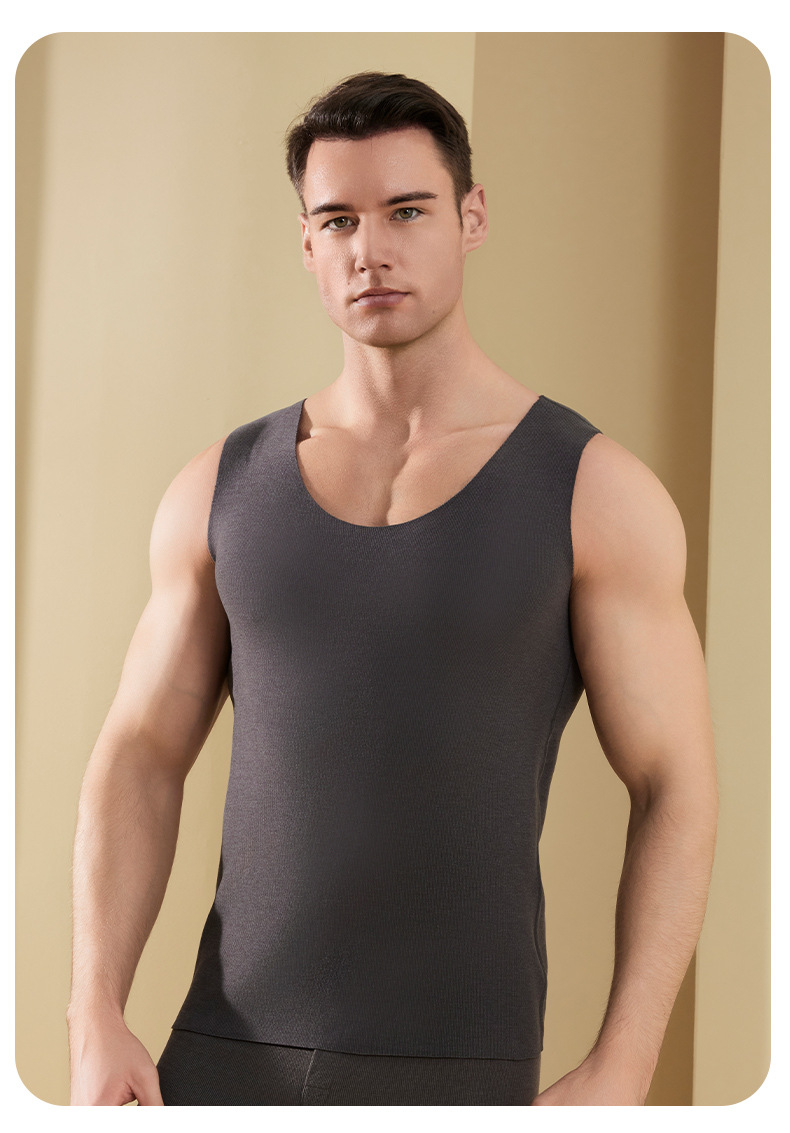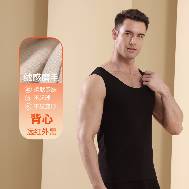 남자의 가을과 겨울 벨벳 열 조끼 항균 기모 두꺼운 난방 기본 속옷 양면 원활한 조끼