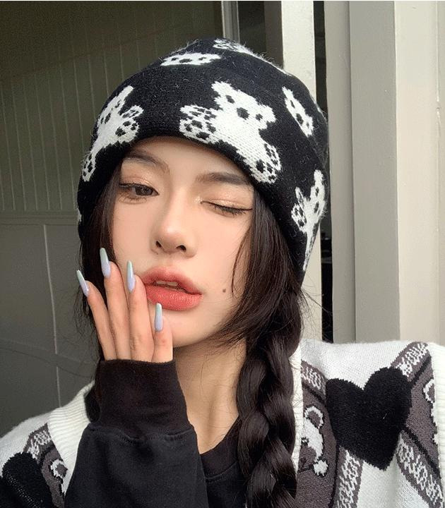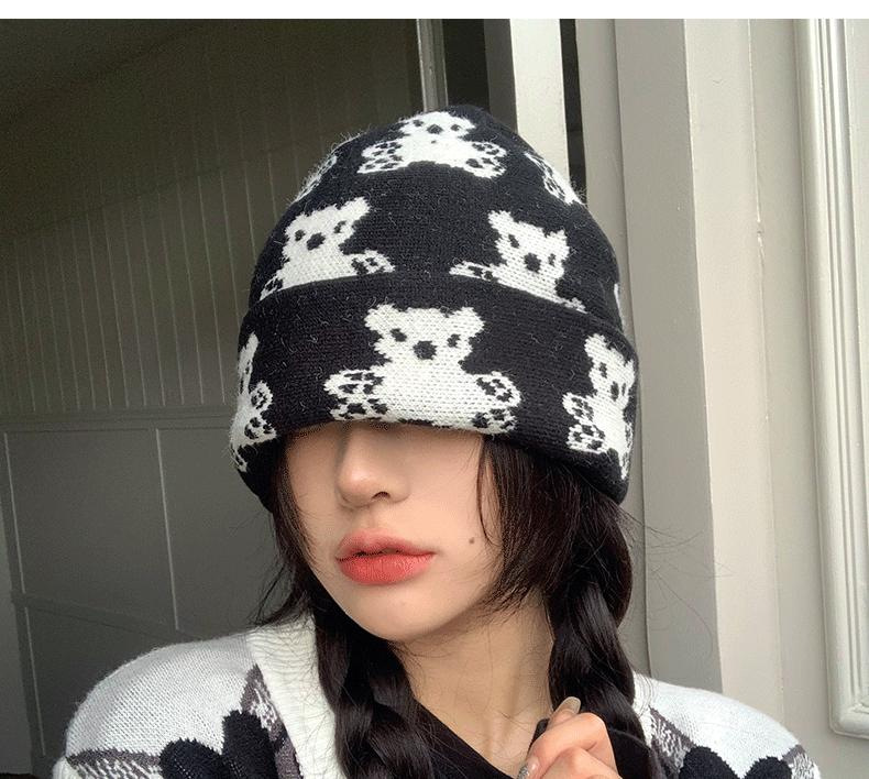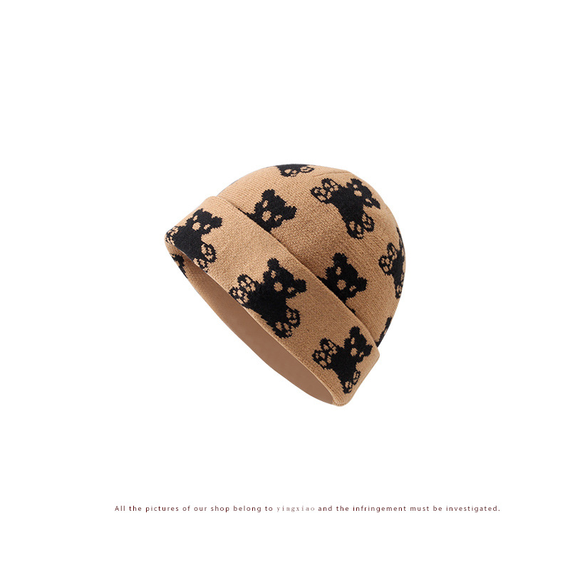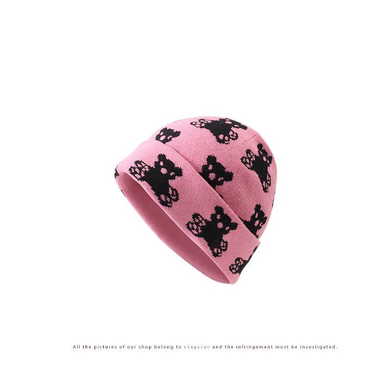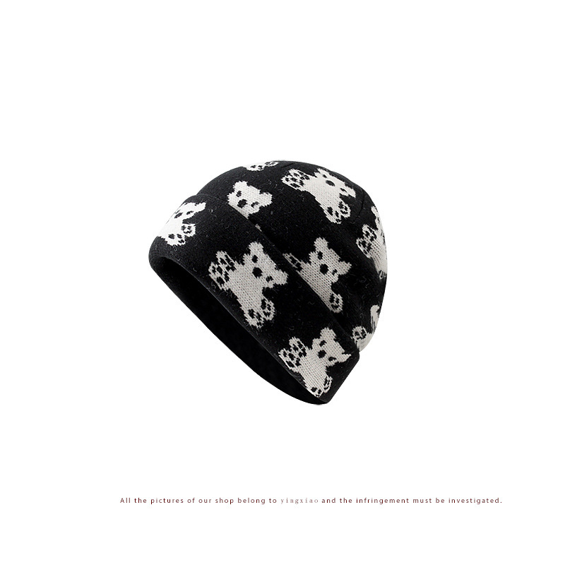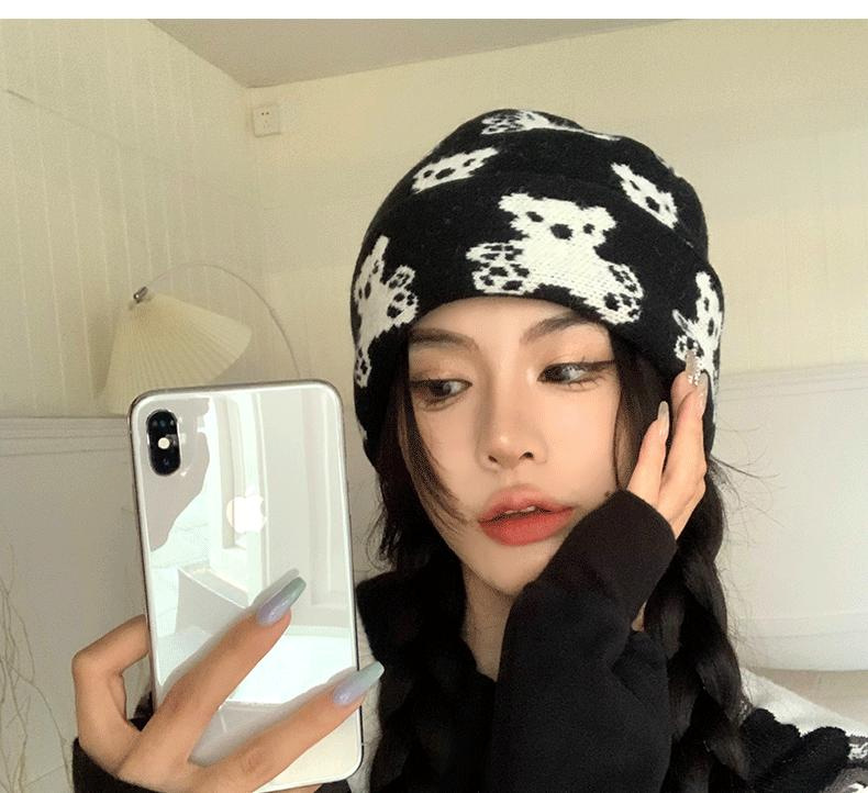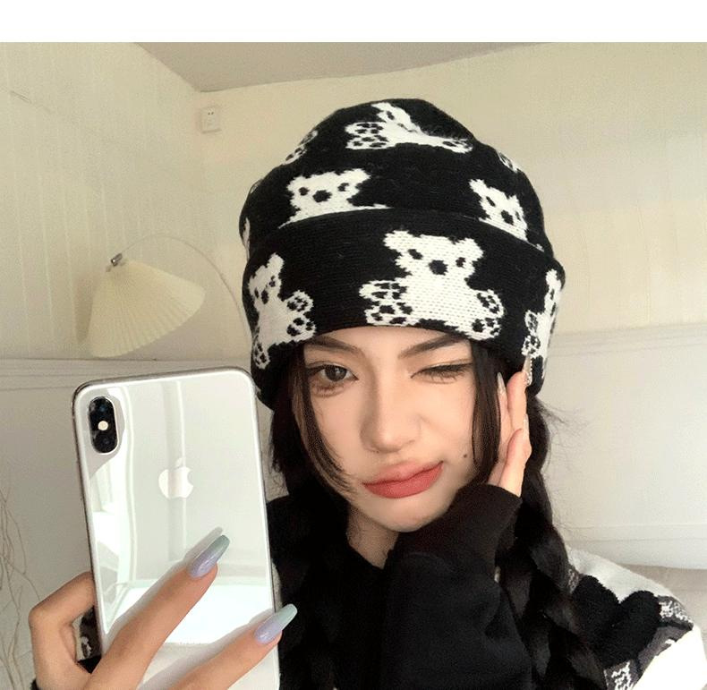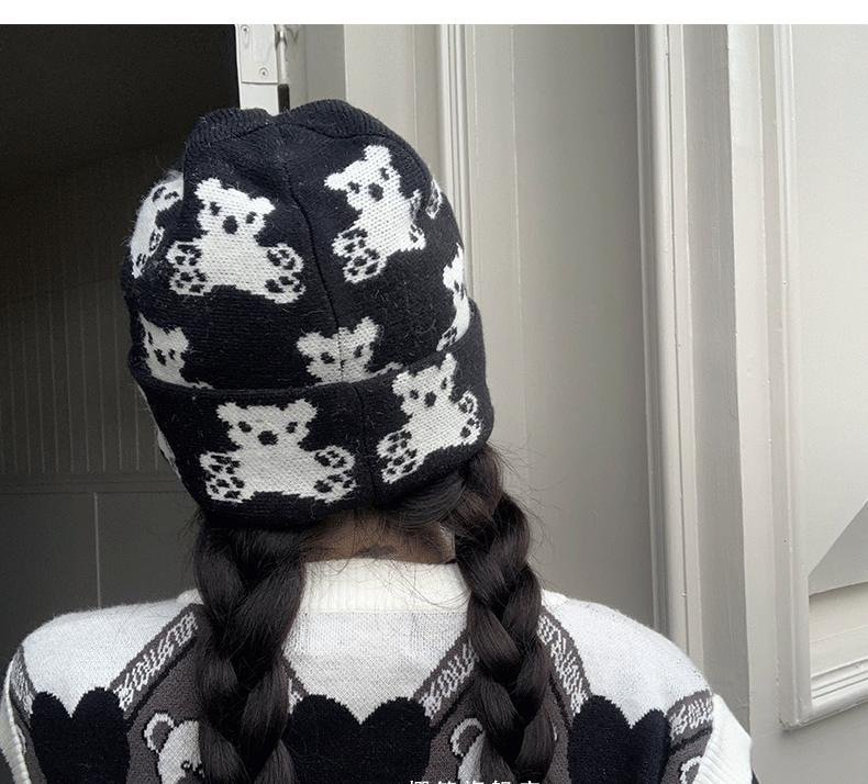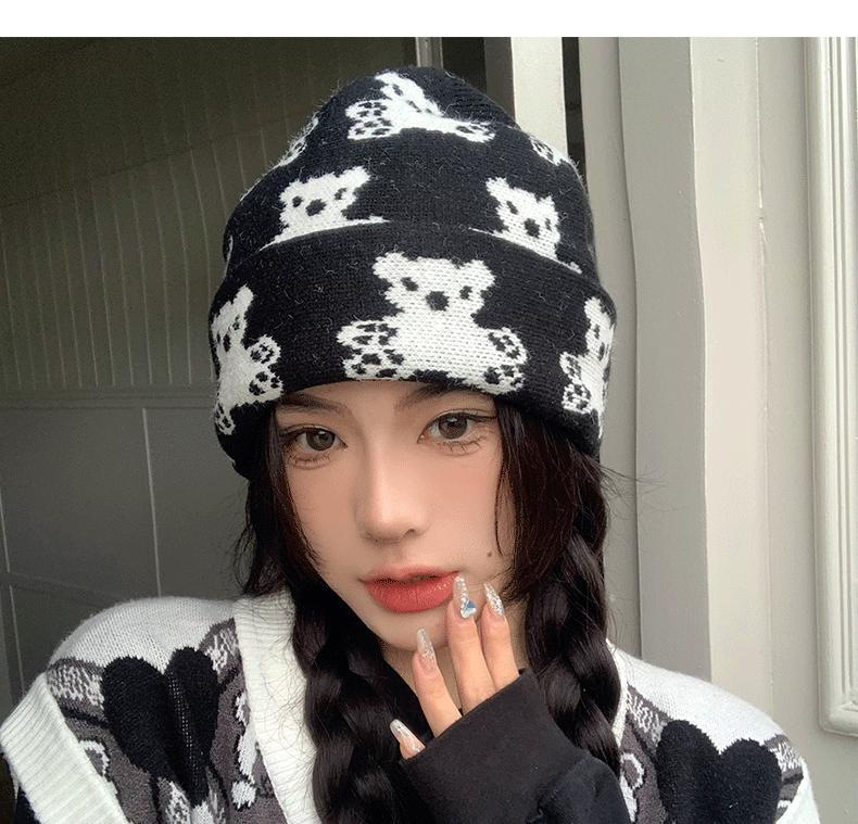 한국 베어 블랙 울 모자 여자의 가을과 겨울 두꺼운 따뜻한 니트 모자 모든 일치 캐주얼 귀 보호 발가락 콜드 모자