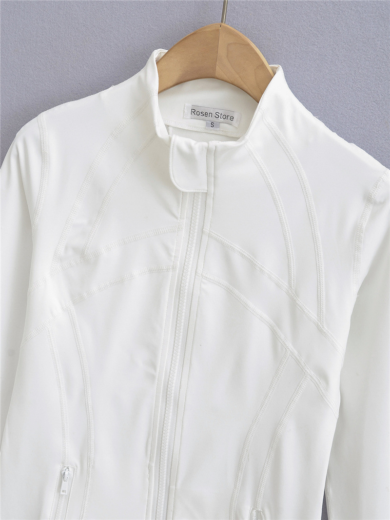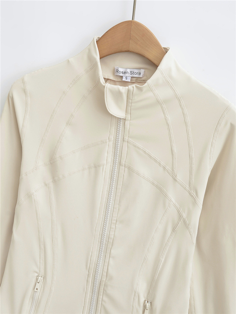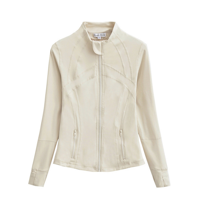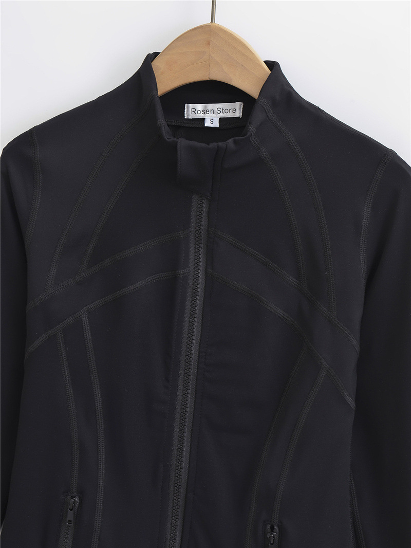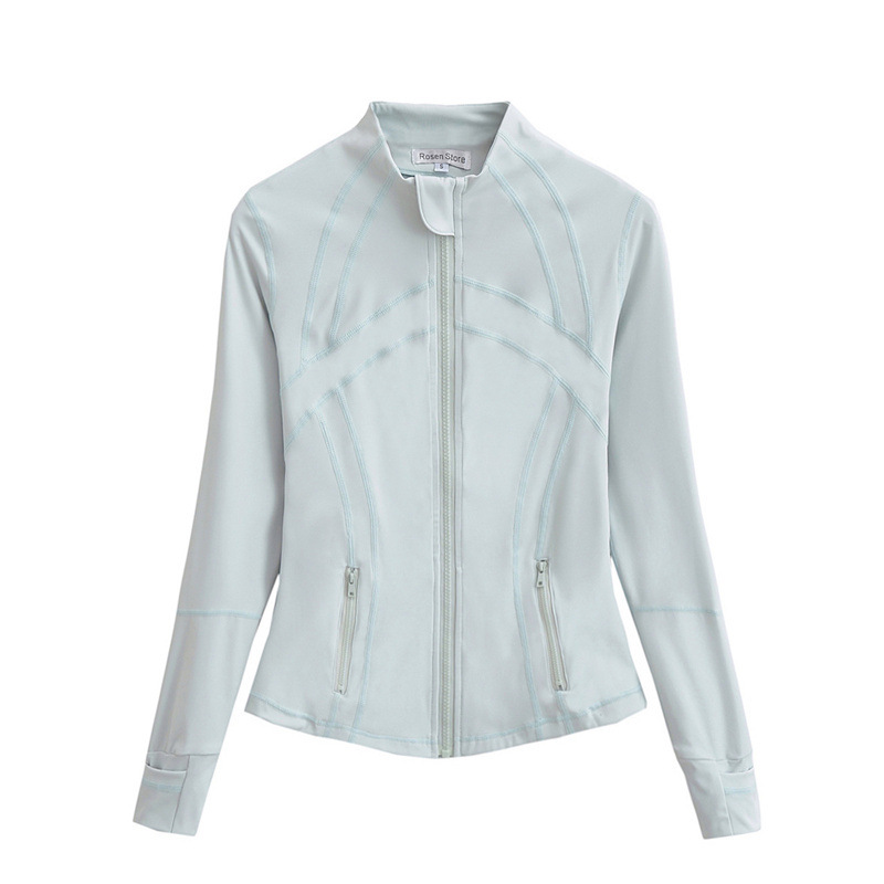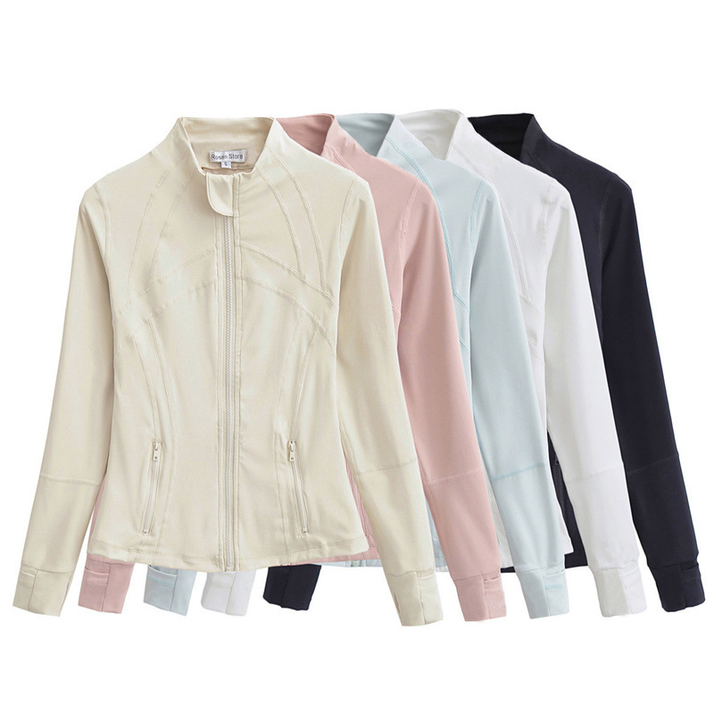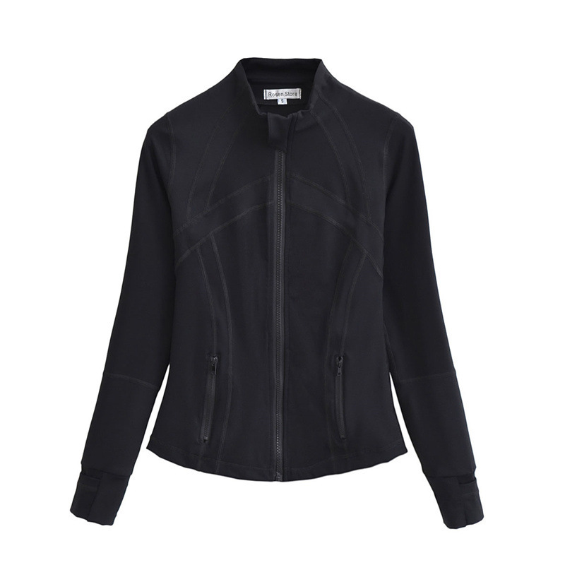 스포츠 재킷 유럽과 미국 스타일 가을 새로운 탄성 꽉 실행 요가 피트니스 칼라 바느질 여성을위한 긴 소매 재킷