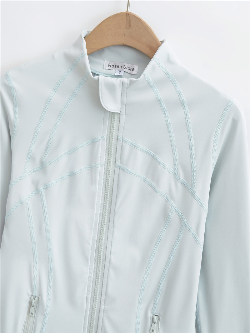 스포츠 재킷 유럽과 미국 스타일 가을 새로운 탄성 꽉 실행 요가 피트니스 칼라 바느질 여성을위한 긴 소매 재킷스토어 가기