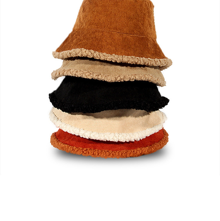 가을과 겨울 새 모자 여성용 한국식 코듀로이 어부 모자 따뜻한 두꺼운 배럴 모자 양면 Lambswood 분지 모자