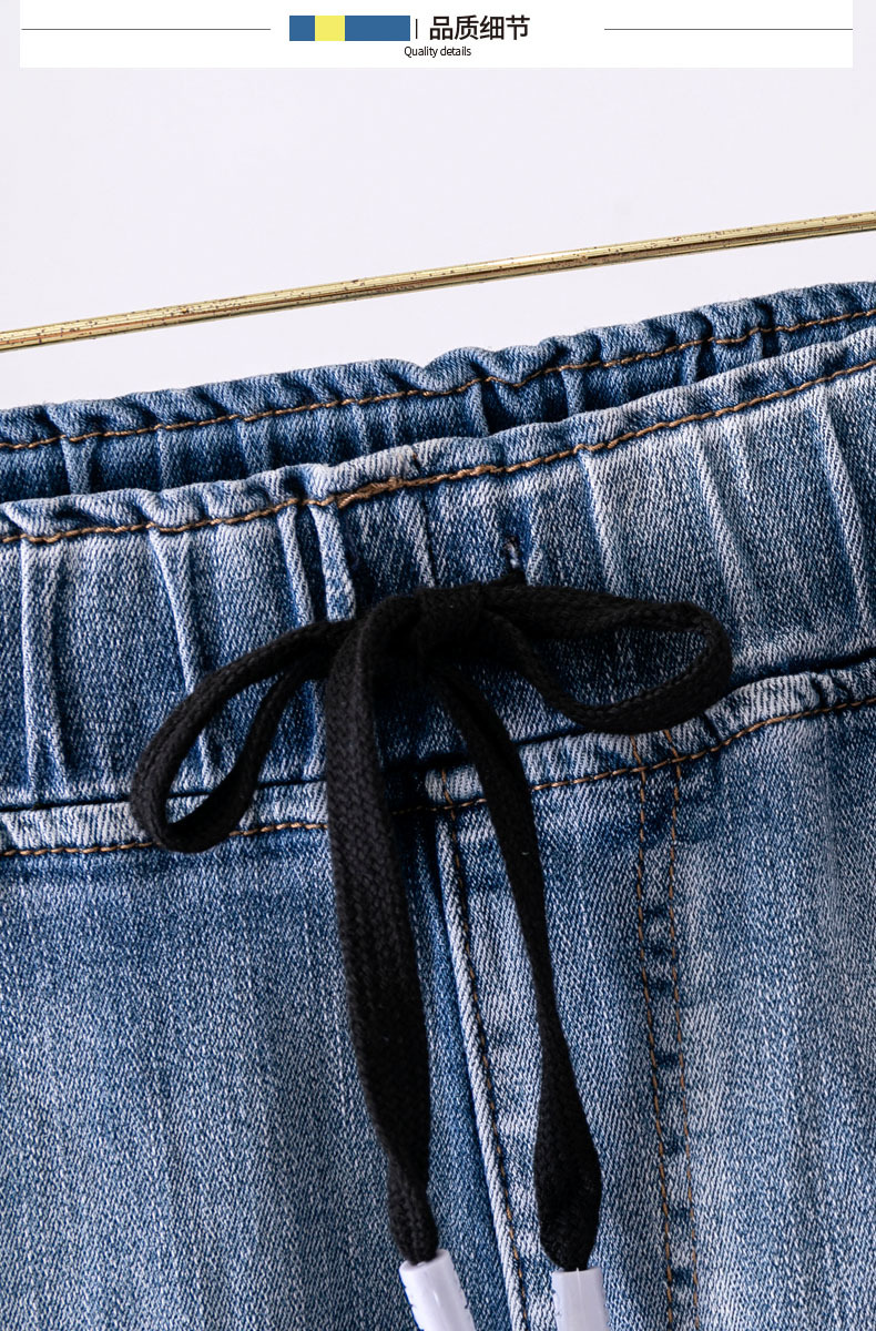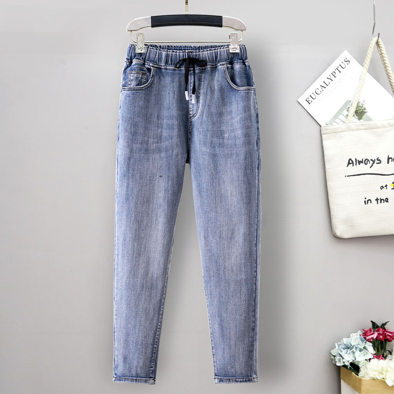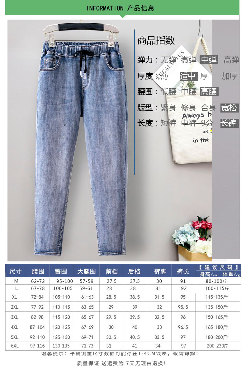 플러스 사이즈 여성의 찢어진 청바지 여성의 나이 감소 슬리밍 지방 자매 200kg 숨겨진 고기 슬리밍 느슨한 슬리밍 바지스토어 가기