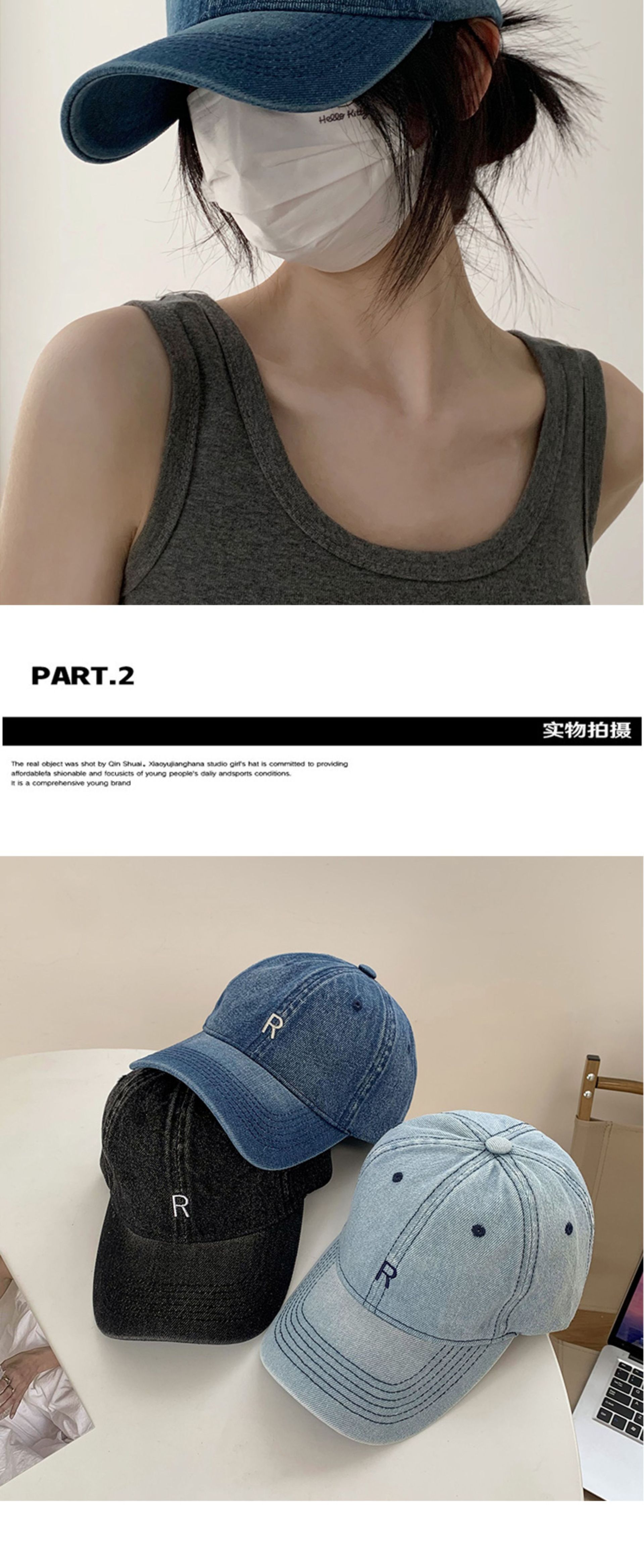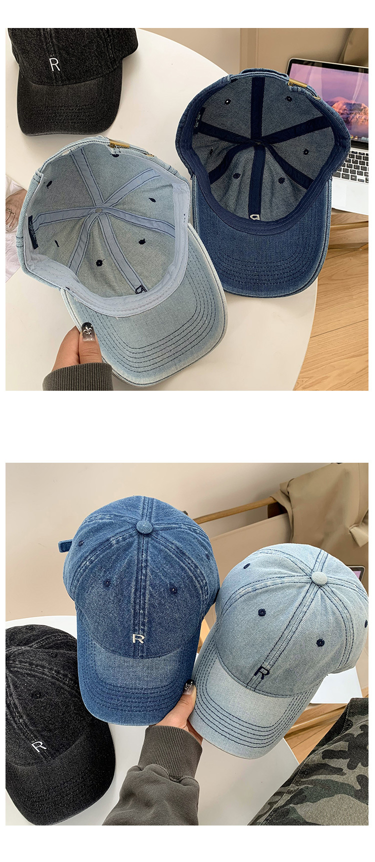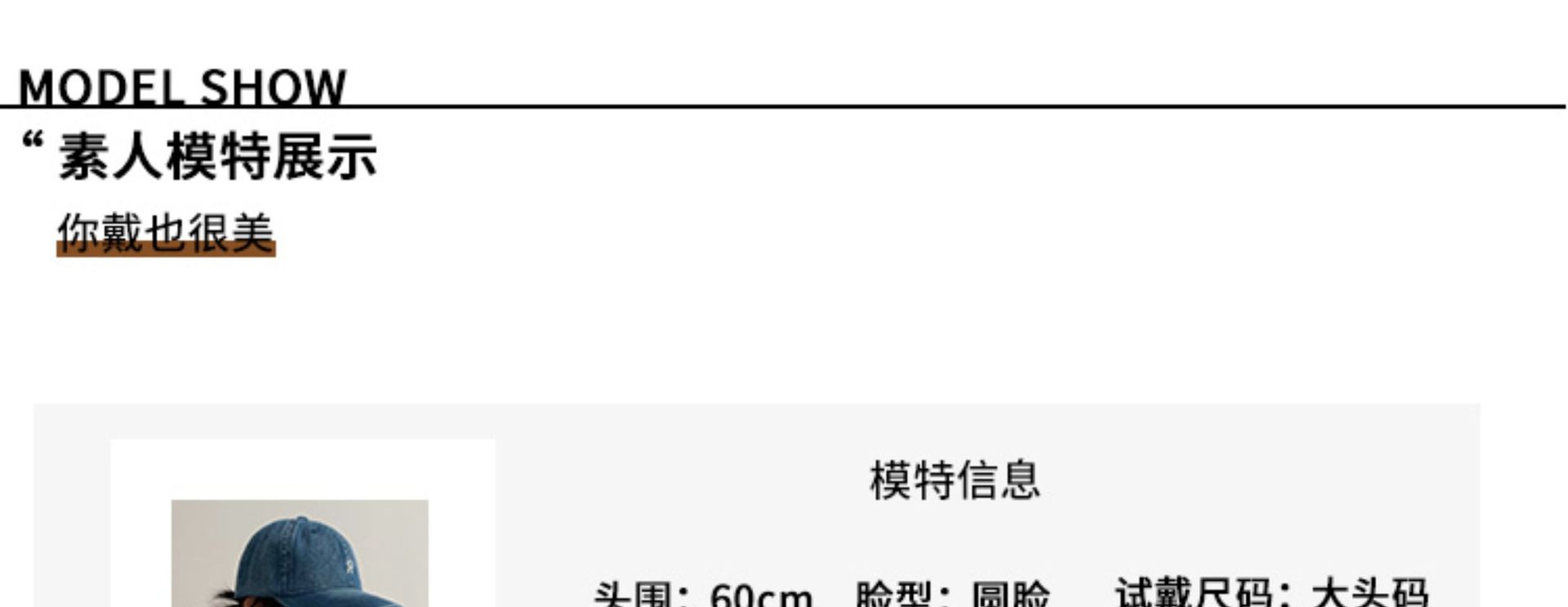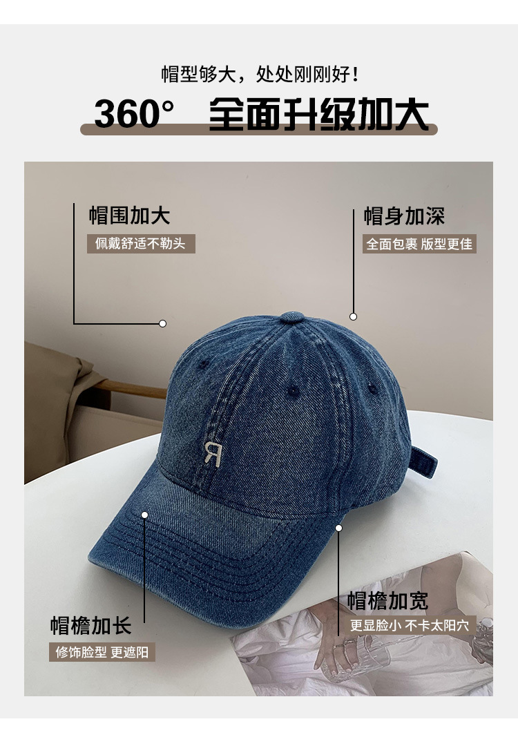 편지 데님 야구 모자 여자의 한국 스타일 간단한 깊은 탑 얼굴 표시 작은 모자 일본 스타일 큰 머리 와이 얼굴 표시 작은 모자스토어 가기
