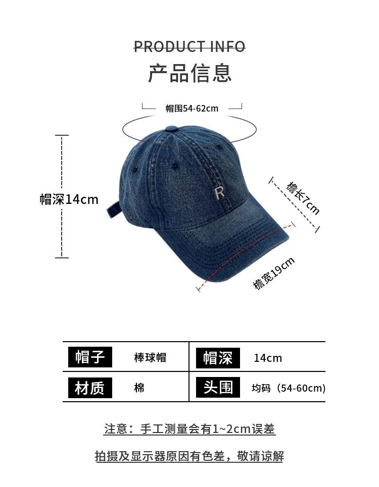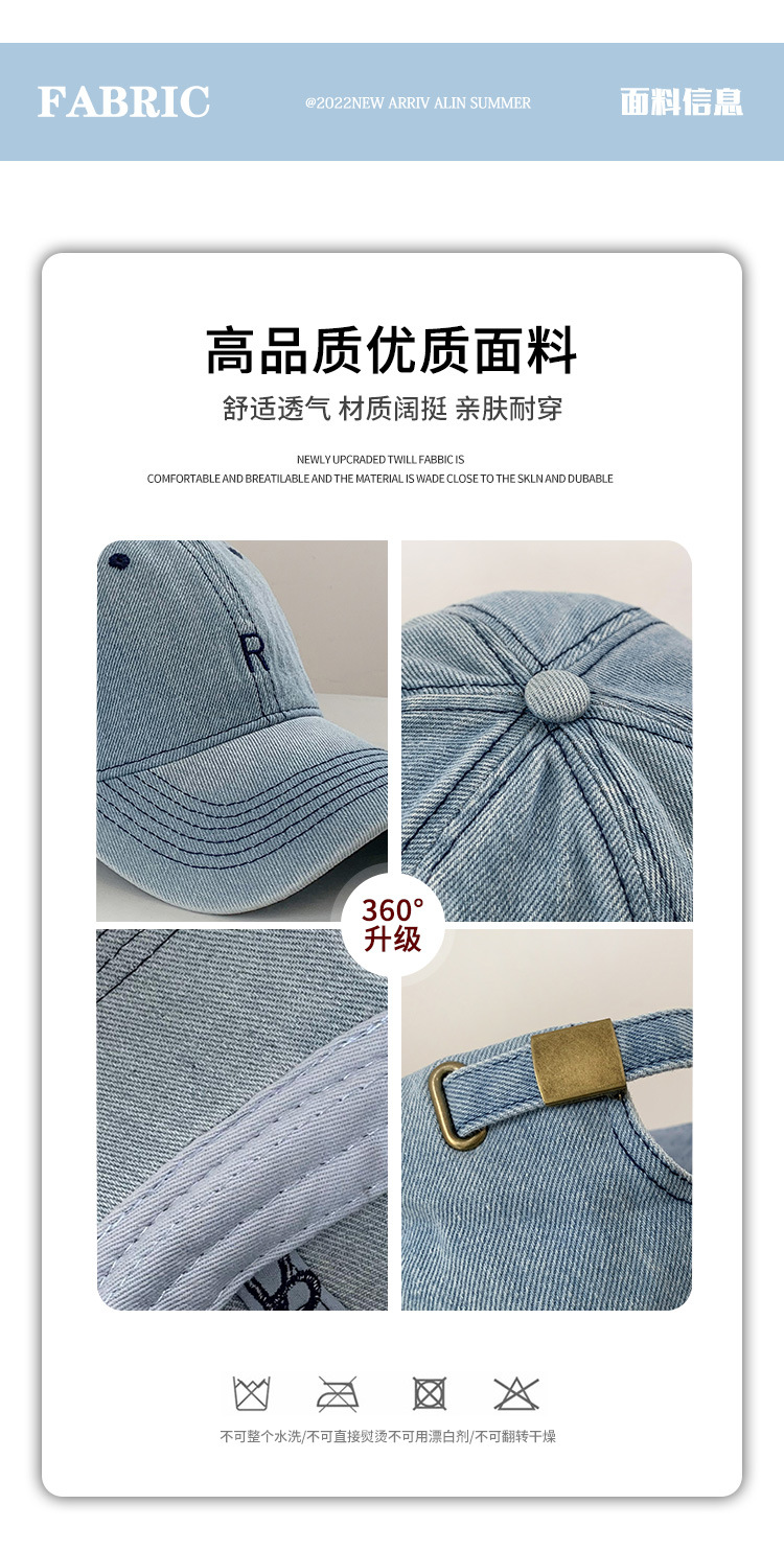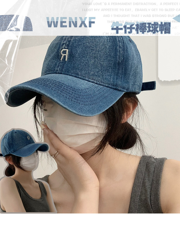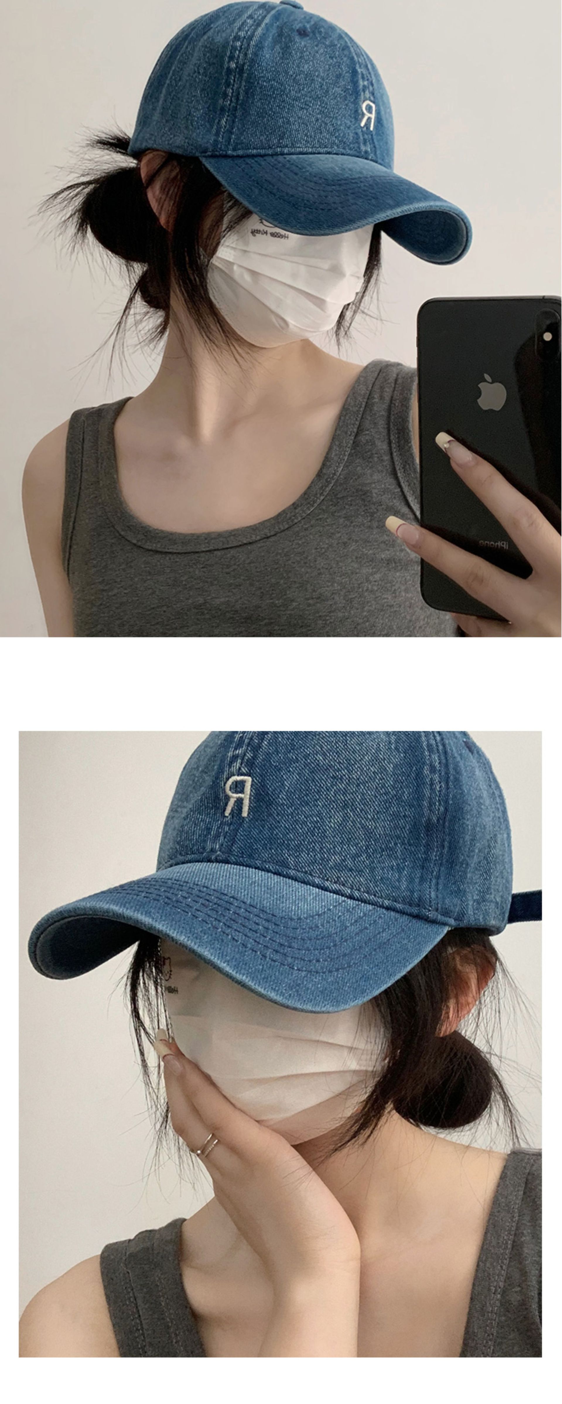편지 데님 야구 모자 여자의 한국 스타일 간단한 깊은 탑 얼굴 표시 작은 모자 일본 스타일 큰 머리 와이 얼굴 표시 작은 모자스토어 가기