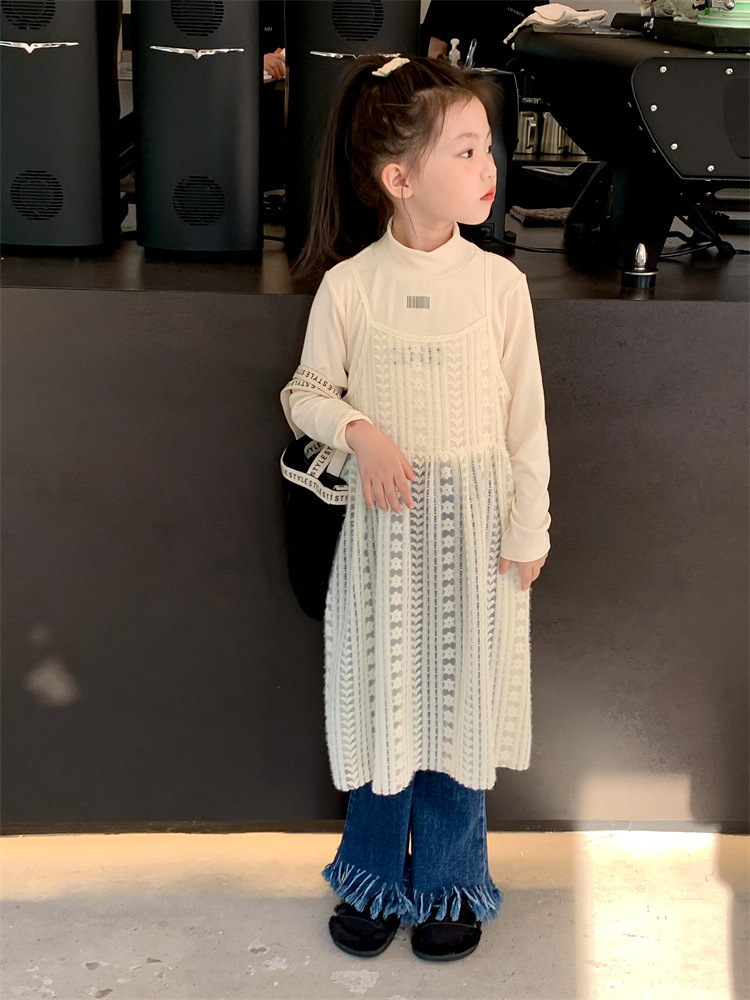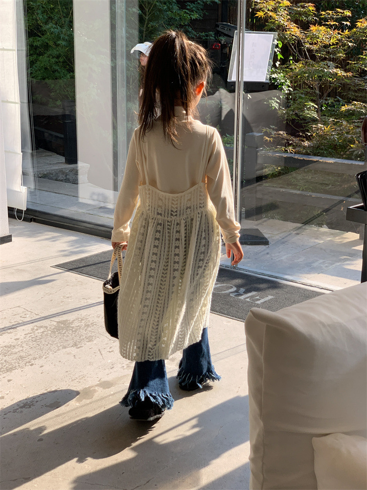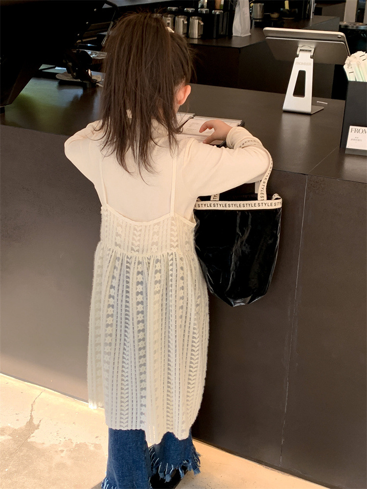 여아 스커트 2023 새로운 어린이 가을 슬링 스커트 어린이 가을 한국 스타일 단색 슬링 오프 웨어 스커트 트렌디스토어 가기