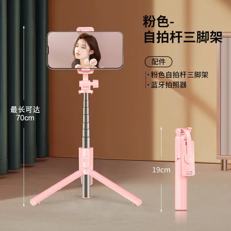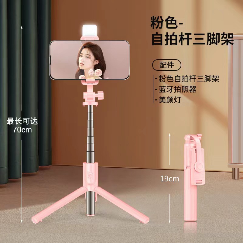 • [원피스 셀카봉 삼각대] 핑크 + 블루투스 카메라 + 뷰티 라이트