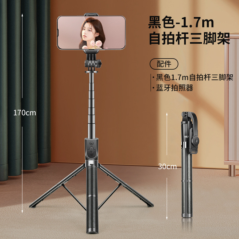 • [길어진 1.7 m] 셀카 스틱 삼각대 블랙