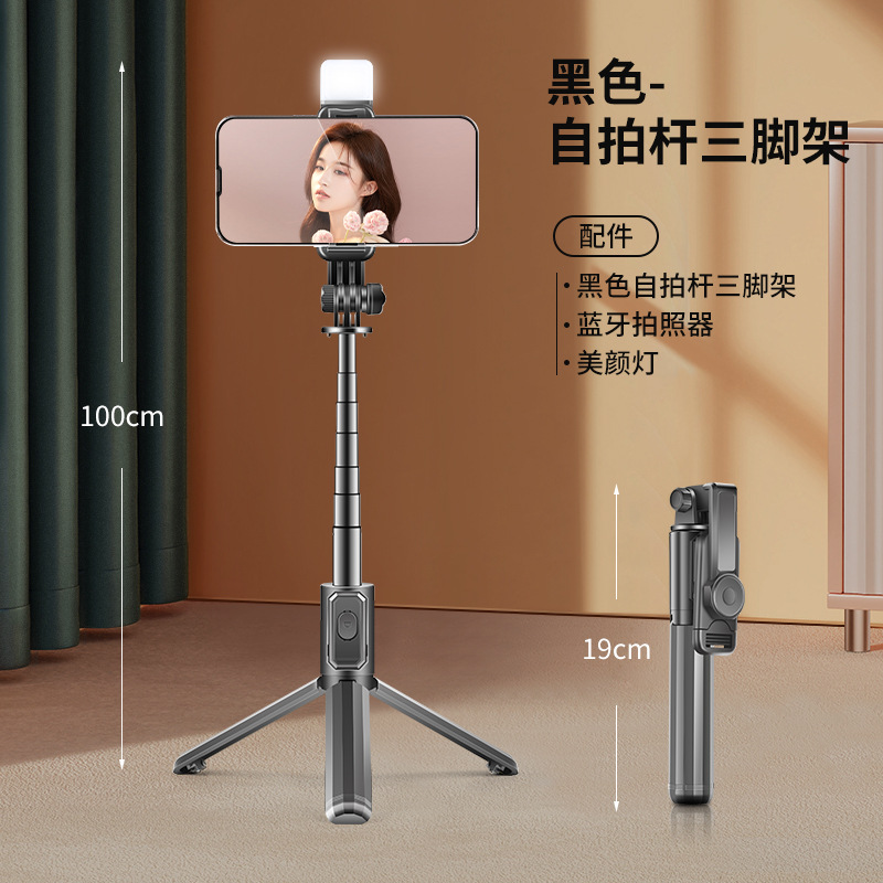 • [통합 셀카봉 삼각대] 블랙 + 블루투스 샷 + 뷰티 라이트