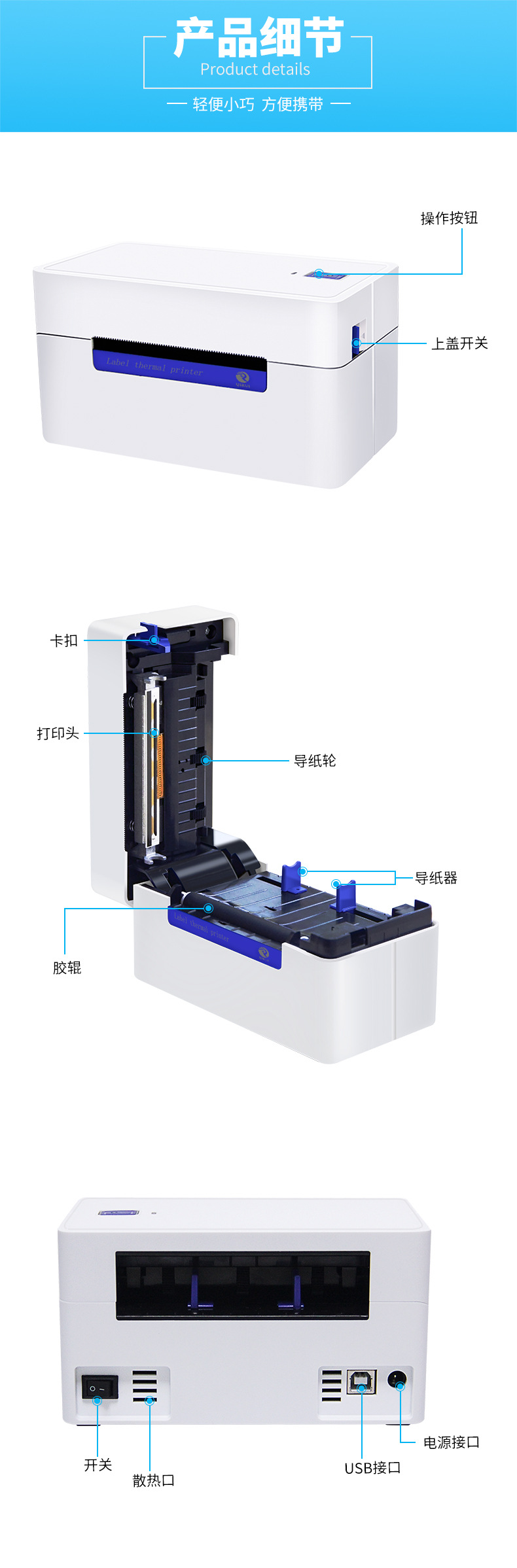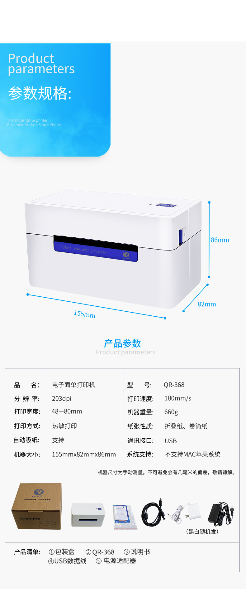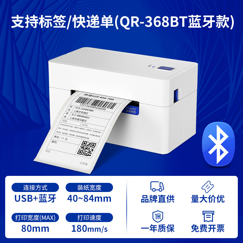Qirui QR368BT 열 라벨 프린터 단일 익스프레스 물류 전자 단일 라벨 바코드 인쇄
