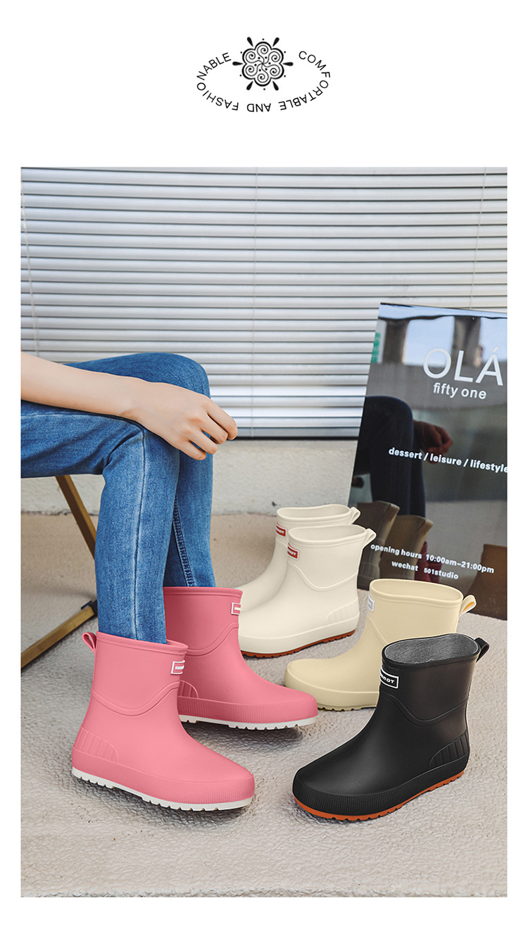 Daifa 일본의 새로운 미드 튜브 장화 여성 패션 워터 슈즈 겉옷 미끄럼 방지 미드 튜브 워터 슈즈 성인 짧은 튜브 장화스토어 가기