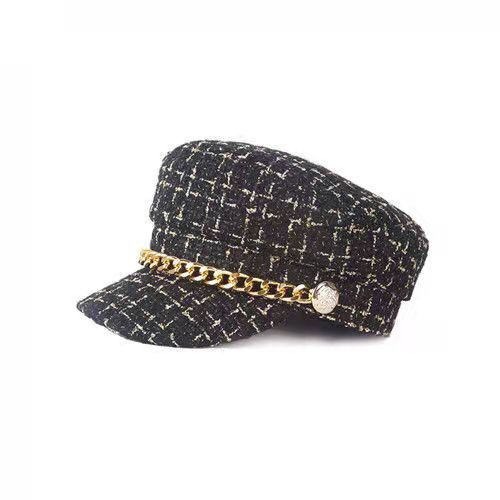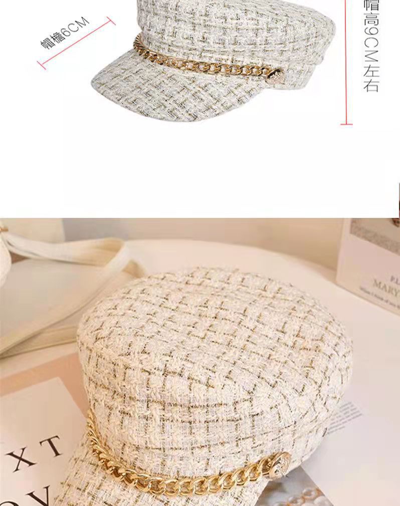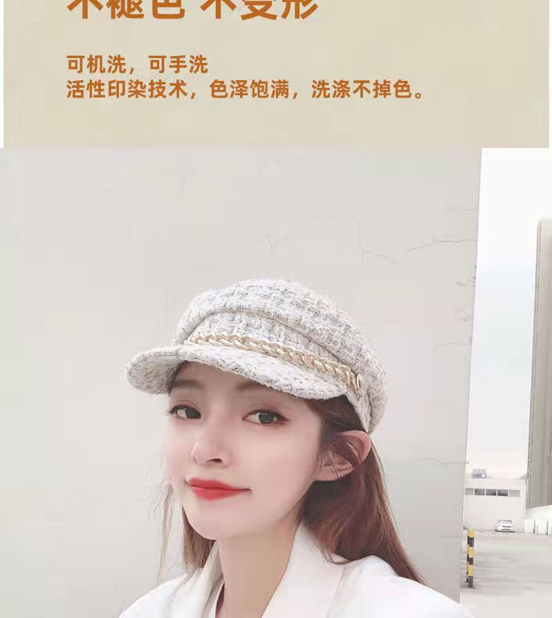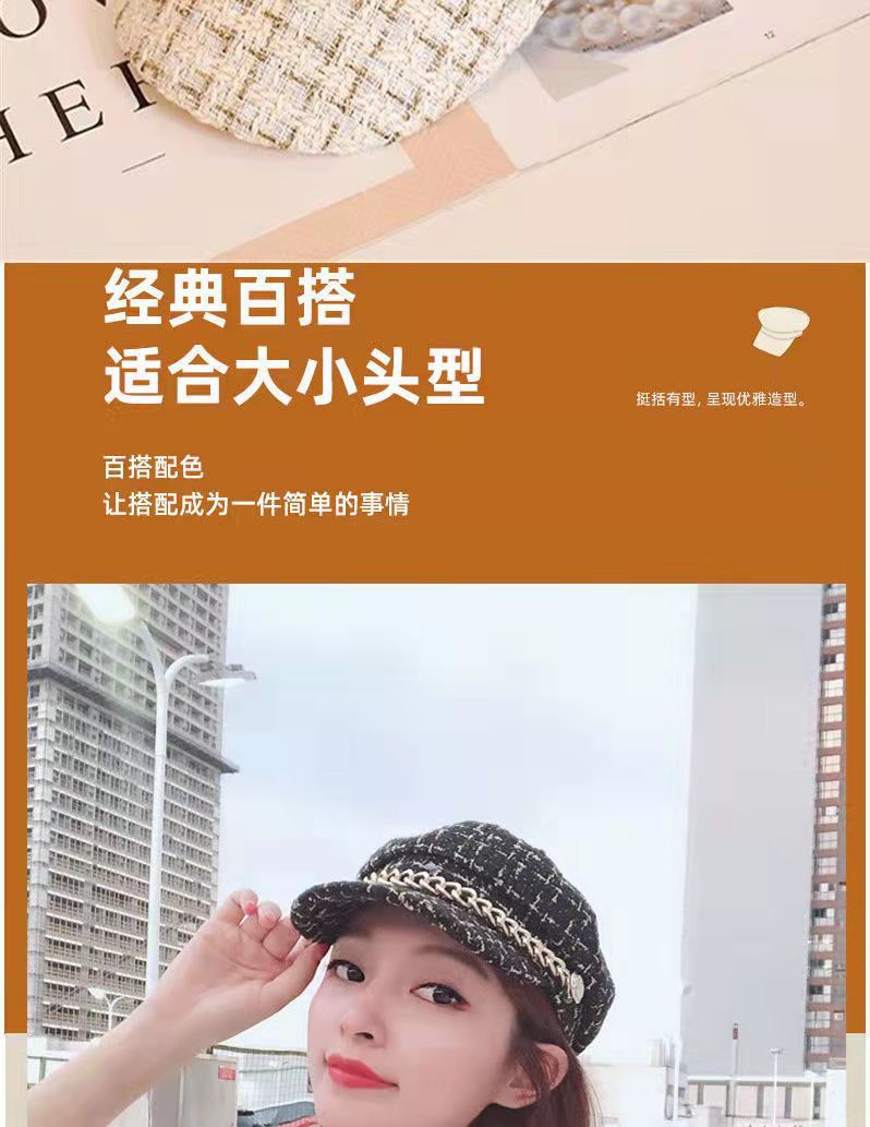 가을과 겨울 새 시즌 야구 모자 한국식 모든 경기 격자 무늬 팔각형 모자 체인 향기로운 스타일 플랫 탑 덕 혀 베레모