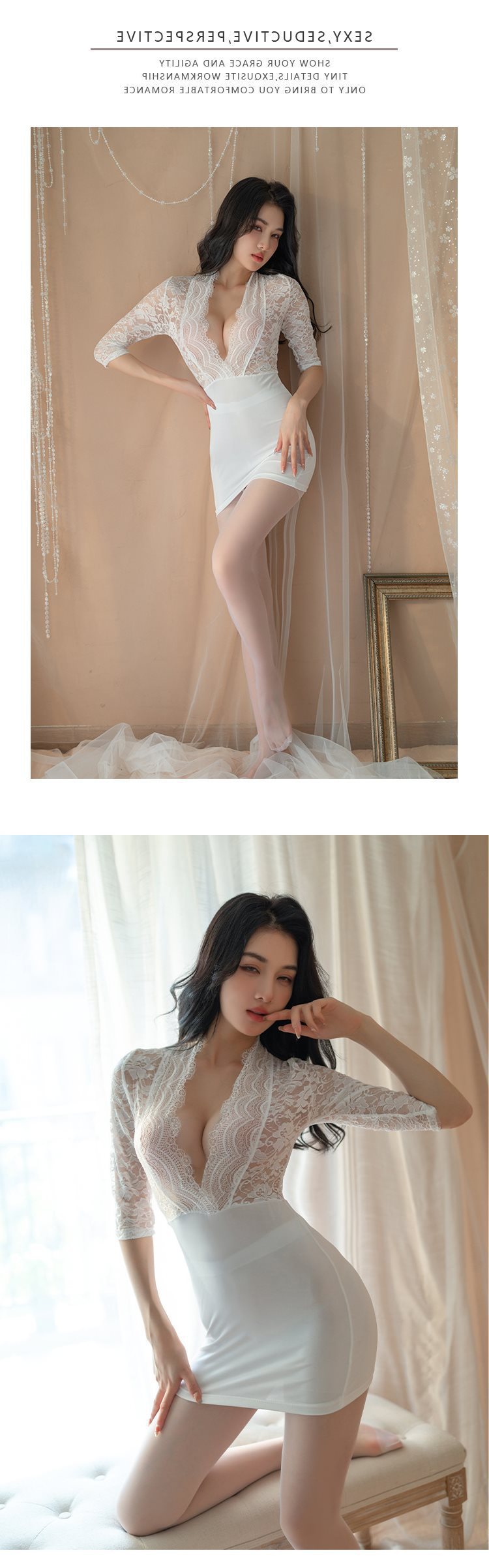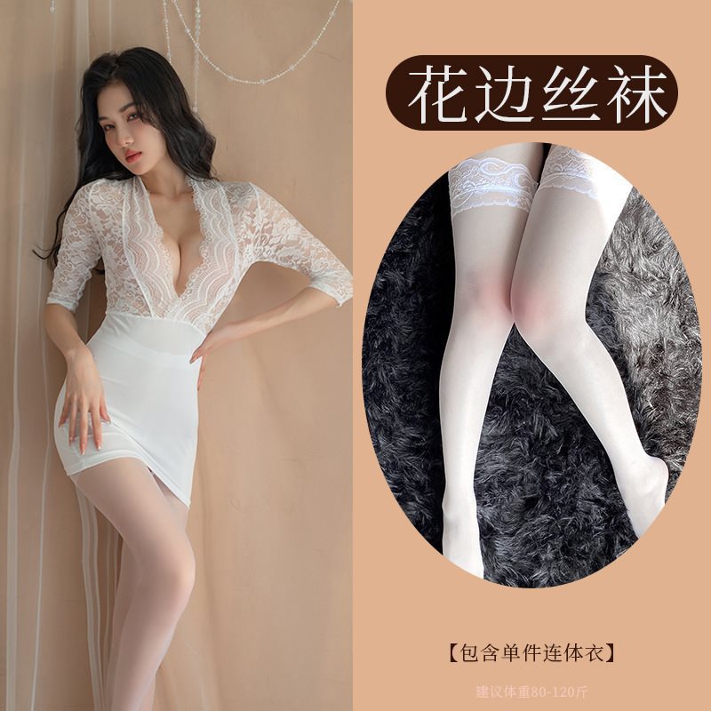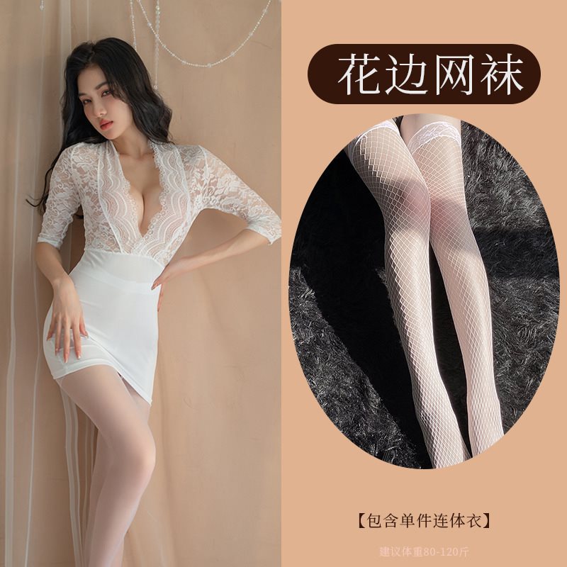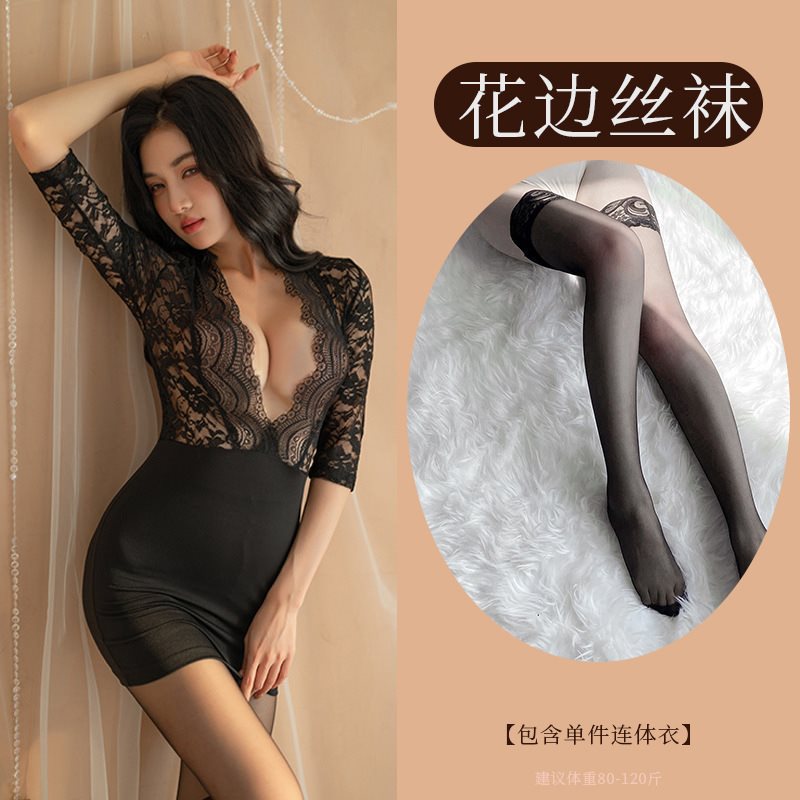 섹시한 비서 힙 스커트 점프 수트 여성용 꽉 끼는 깊은 속옷 유니폼 레이스 스커트 세트스토어 가기