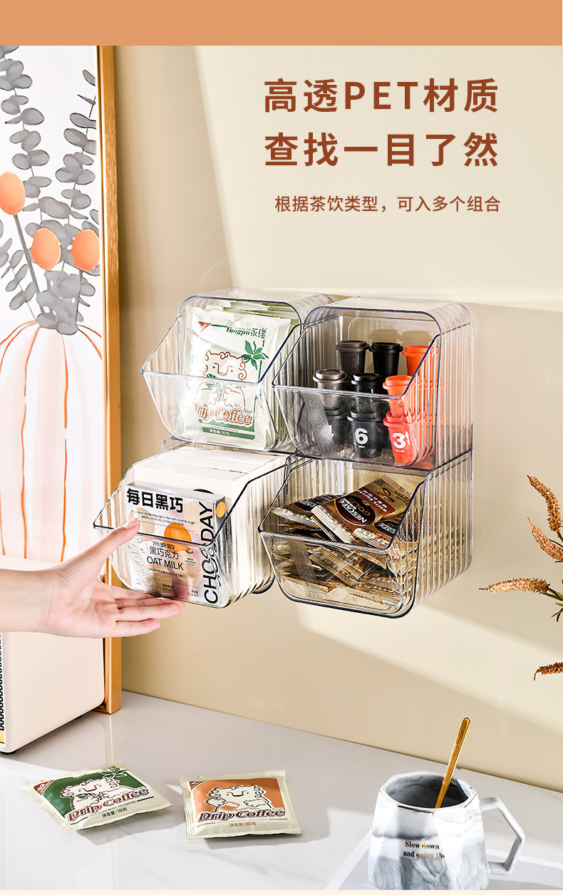 티 커피 티백 보관함 투명 벽걸이 데스크탑 보관함 도매 사무실 화장품 랙스토어 가기
