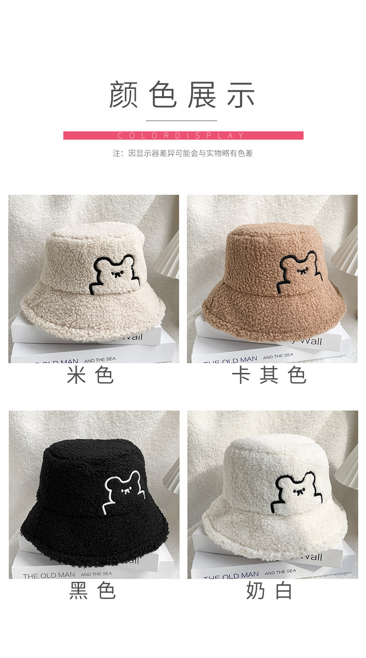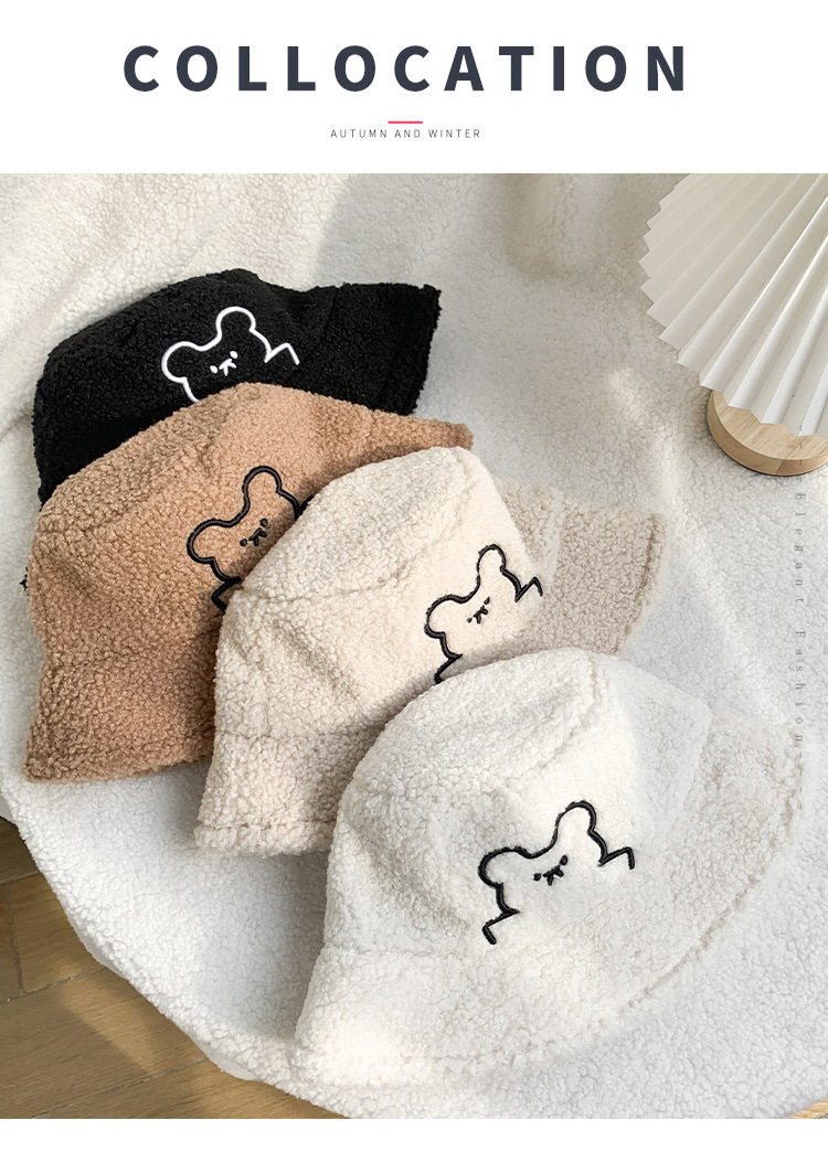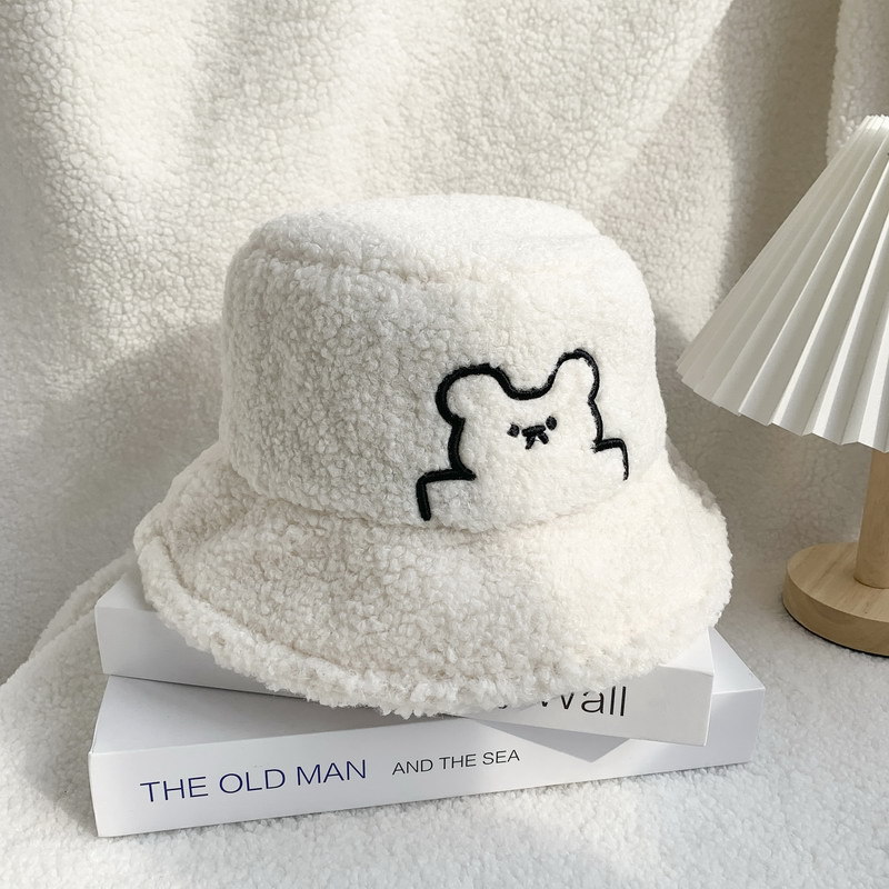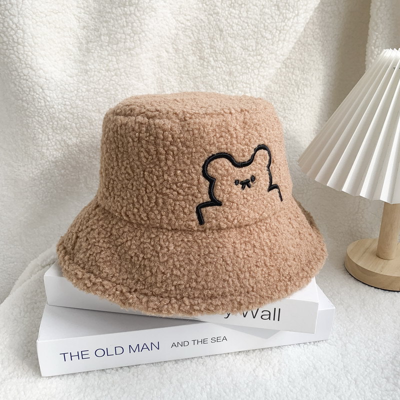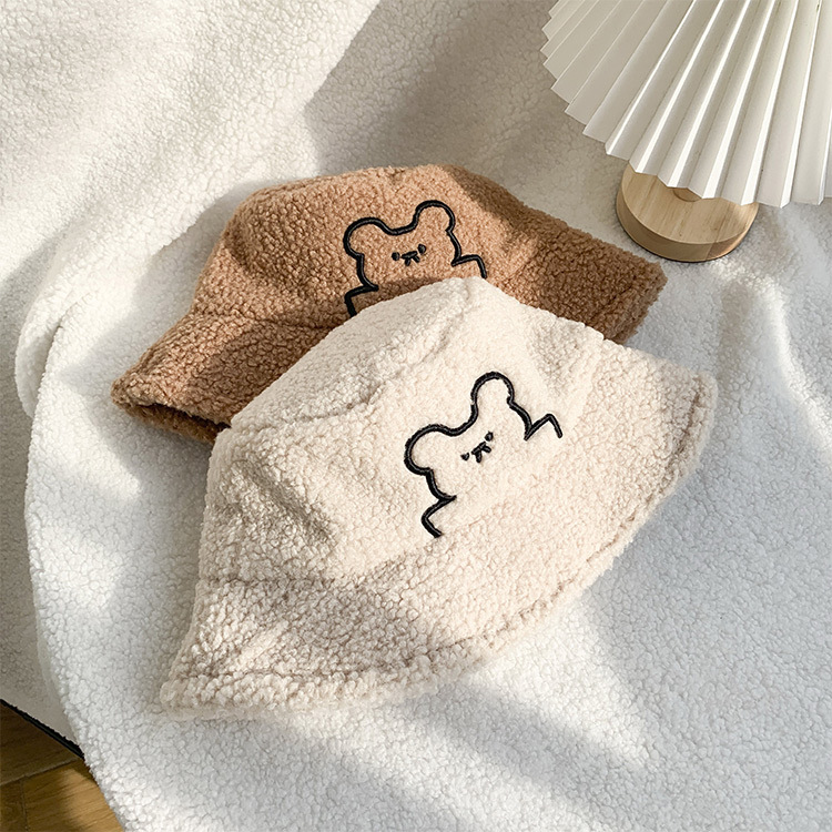 한국식 귀여운 곰 양고기 모피 어부 모자 겨울 따뜻한 귀 보호 봉제 모자 트렌디 한 모든 경기 얼굴 보여주는 작은 분지 모자스토어 가기
