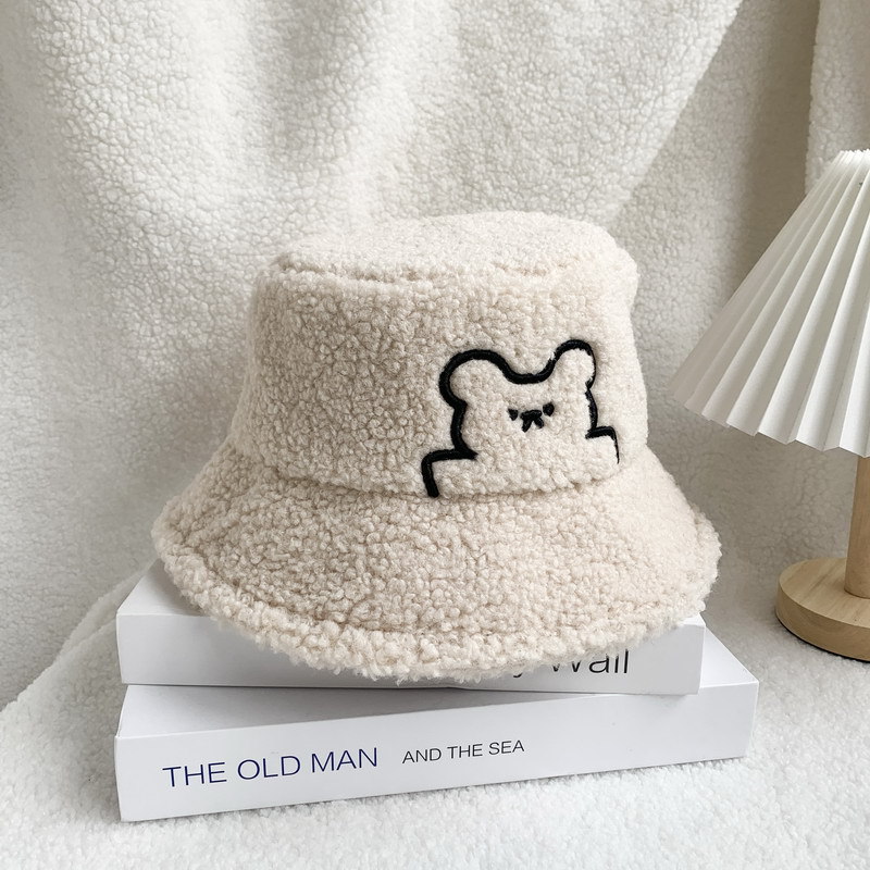 한국식 귀여운 곰 양고기 모피 어부 모자 겨울 따뜻한 귀 보호 봉제 모자 트렌디 한 모든 경기 얼굴 보여주는 작은 분지 모자