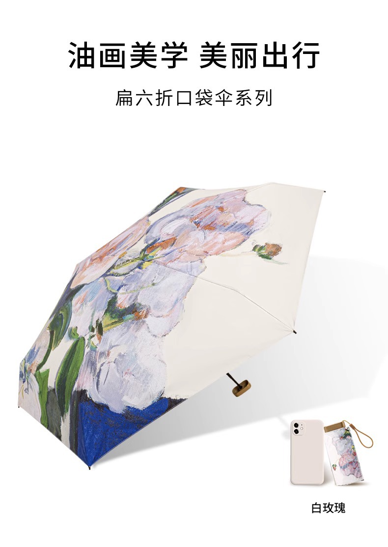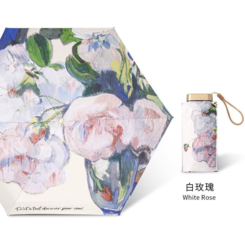 • [티타늄 6 중 플랫 우산] 화이트 로즈 (초경량 휴대용)